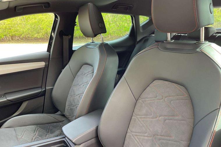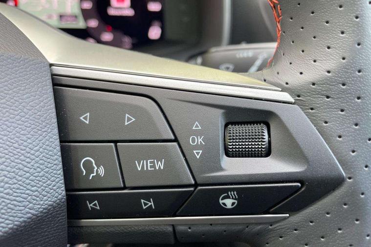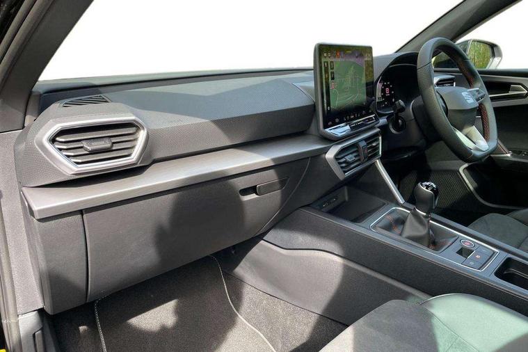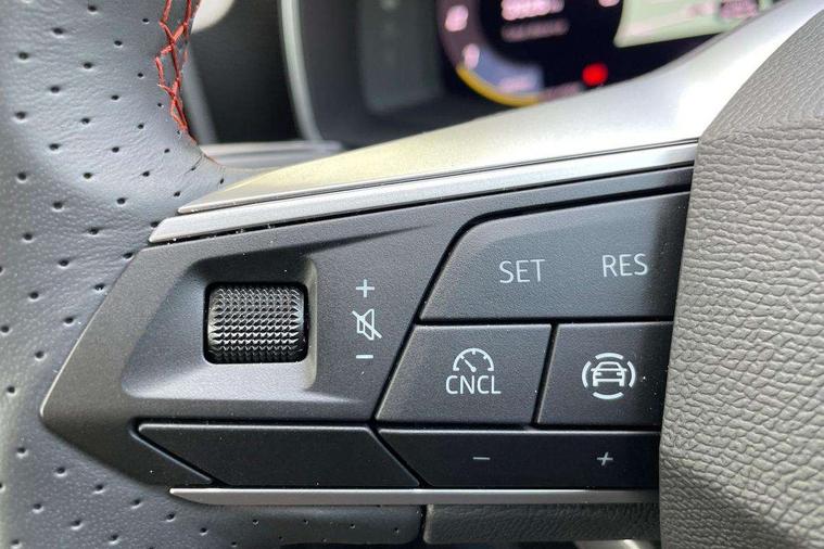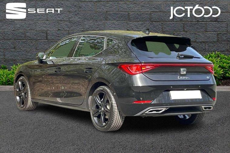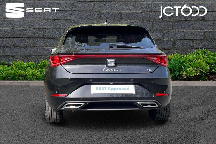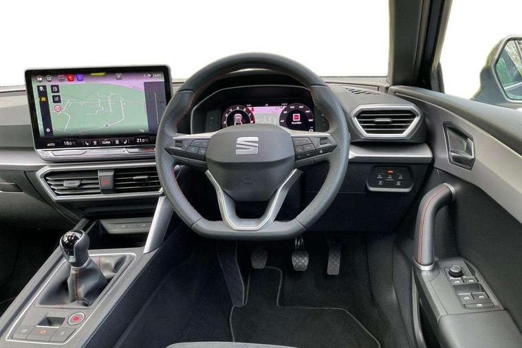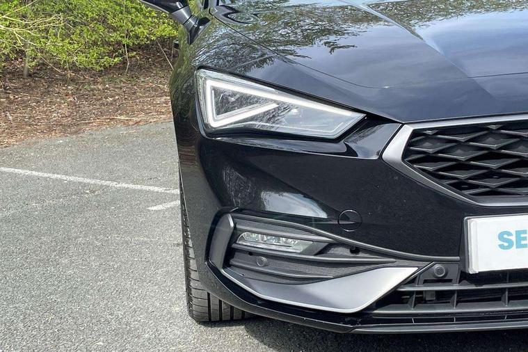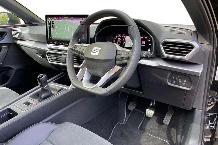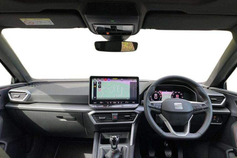 Digital cockpit with multifunction display, Driver attention alert with drowsiness warning, E-call, Front assist with forward collision warning braking reaction to vehicles, pedestrians and cyclists, Full link smartphone integration with Mirror Link, wireless Apple CarPlay and wired Google Android Auto, Intelligent speed assist, Lane assist, Lockable tailgate, Park assist (inc front/rear parking sensors), Power assisted speed sensitive electro-mechanical steering, Rear view camera, RPM, trip computer, outside temp gauge, instrument light brightness, low fuel warning light, lights on reminder, gearshift indicator, SEAT drive profile with 4 modes (Eco/Normal/Sport/Individual), throttle response, Service interval indicator, Start/stop system with regenerative braking, Wireless phone charging, Sports suspension, XDS electronic differential lock and dynamic traction support, 2 front and 2 rear USB-C ports, Auxiliary input socket, Auto dimming rear view mirror, Black door mirror housings, Black roof spoiler, Black side skirts, Body colour door handles, Body coloured bumpers, Dark tinted rear windows, Door mirror LED indicator lights, Dynamic headlight range control, Electric adjustable/heated/folding door mirrors with memory, Electric front/rear windows, FR sports bumper, Illuminated front door sill, LED front fog lamps, LED rear fog lamp with rear coast to coast light, Matrix LED headlights and beams with variable light distribution, LED rear light, Panoramic sunroof, Rear side wing doors, Rear wash/wipe, Separate daytime running light with automatic headlight control and coming home feature, Third brake light, Windshield wiper intermittent control with light/rain sensor, 12v power point in centre console, 3 seat bench in 2nd row, 60/40 split rear bench seat with armrest, Ambient lighting with glovebox, footwell and single monocolour, Black headlining, Dust/pollen filter, Electric driver lumbar support + passenger manual lumbar support, Folding boot cover, Front and rear height adjustable headrests, Front and rear reading lights X 4, Front centre armrest, Front seatback storage pockets, Heated front seats, Heated leather steering wheel with leather gearstick, Height/reach adjust steering wheel, Interior wraparound lighting (FR), ISOFIX points in outer rear seats with top tether anchorage points, Luggage tie-down hooks, Microsuede cloth upholstery, Power driver seat with memory and manual height adjustable passenger seat, Single front passenger seat, Sunvisors with covered illuminated mirror, Three zone climate control, Media system plus with navigation - Leon, 3 point seatbelts on all rear seats, ABS, Brake control system - ESC and brake booster, Child proof door locks, Driver and front passenger airbags with front passenger airbag de-activation, front side and curtain airbags, Electronic parking brake, Extended safety system - seat belt tensioner, window closure and hazard lights, Hill hold control, Rear disc brakes, Seat belt reminder for front and rear seats, Tyre pressure monitoring system, Anti theft alarm system with interior monitoring in cab, backup horn and towing protection, KESSY Advanced - Keyless start, keyless entry, Locking wheel bolts, Chrome interior detailing, 18" Black alloy wheels, Tool kit without jack,