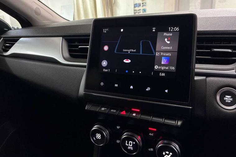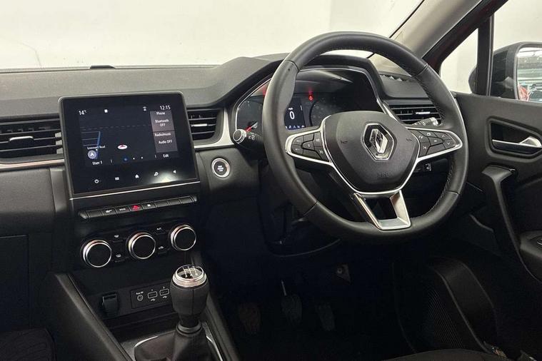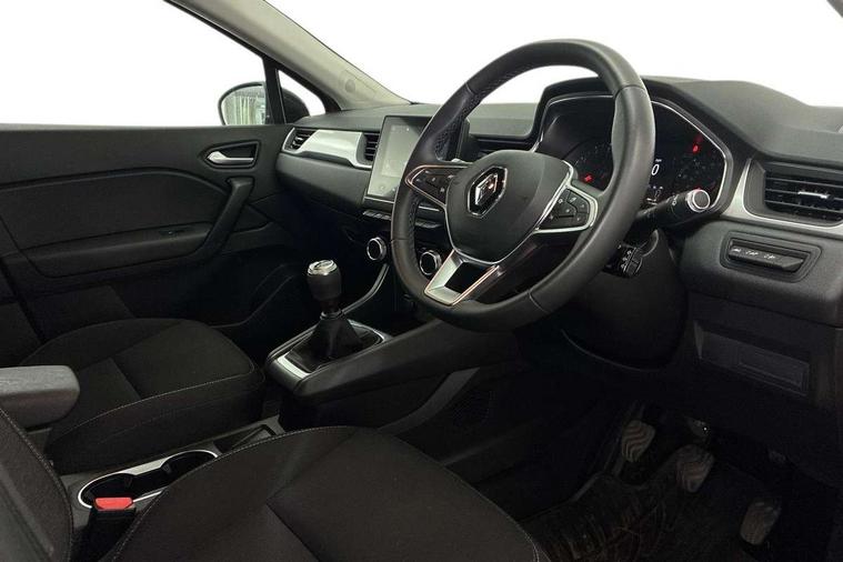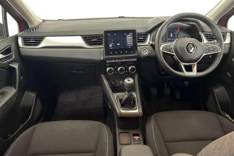 4.2" TFT Driver information display, Cruise control + speed limiter, eCall emergency call system, Eco mode, Gear change indicator, Lane departure warning system, Lane keep assist, Renault automatic emergency assist, Traffic sign recognition, Trip computer, Variable assistance power steering, EasyLink Nav 7" touchscreen, 4x20W amp, FM DAB, sound auditorium, 2xUSB, 1xJack, Bluetooth, smartphone integration plus, Apple carplay/Android auto, Automatic front wipers with rain sensors, Automatic headlights, Body colour door handles, Body coloured bumpers, Body coloured door mirrors, Electric adjustable/heated/folding door mirrors, Electric front windows + one touch + anti-pinch, Electric rear windows, Extra tinted glass in rear windows and tailgate, Full LED front and rear headlamps integrating daytime running lights at the front and rear, Gloss black side door protection with chrome effect, LED front fog lights, Rear fog lights, Rear wiper, Roof bars, Variable speed on front windscreen wipers, 12V Accessory socket, 3 rear headrests, 5.2L front glovebox, 60/40 split folding rear seat bench, Automatic climate control with one touch demist function, Centre console storage tray, Cloth upholstery, Front head restraints, Heating system with pollen filter, Height adjustable driver's seat, Height/reach adjust steering wheel, ISOFIX child seat fixing points on rear outermost seats, Middle console with armrest and storage, Rear air vents, Synthetic leather steering wheel, 3 rear seatbelts, ABS+EBA, AEBS, Distance warning alert, Driver and front passenger, side, head and curtain airbags, Driver height adjustable seat belt, Electric parking brake, Electronic stability control, Front and rear no seatbelt warning sound, Front dash warning indicator in case of heavy braking, Front driver and passenger side airbag deactivation, Hill start assist, Rear door and window child locking function for rear door, Tyre pressure warning light, Anti drill door locks and locking fuel cap, Deadlocking system, Hands free keycard with push button and start/stop function, RAID (Renault Anti-Intruder Device) automatic door locking, Remote central locking with thatcham approved immobiliser, Black soft touch dashboard with black gloss air vent surrounds,