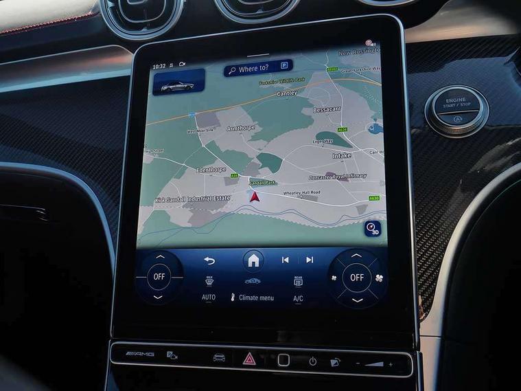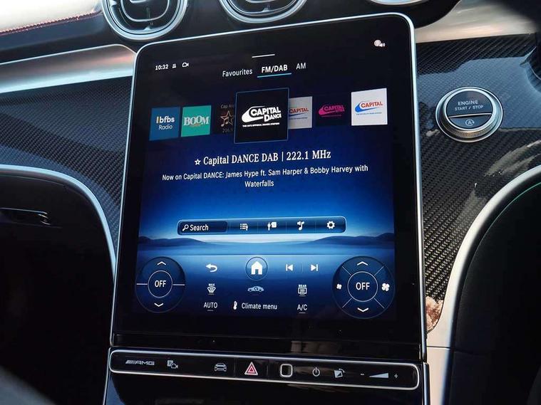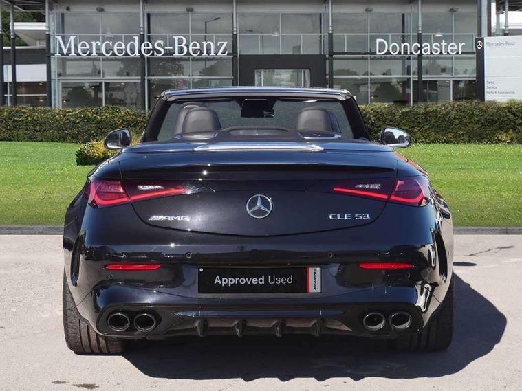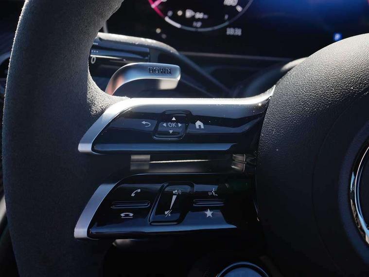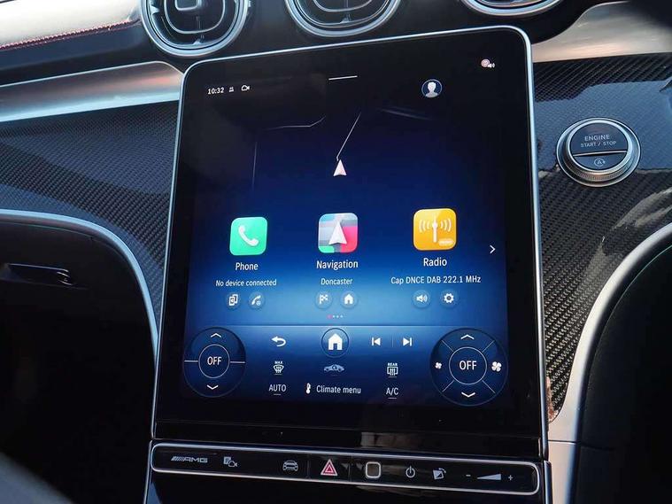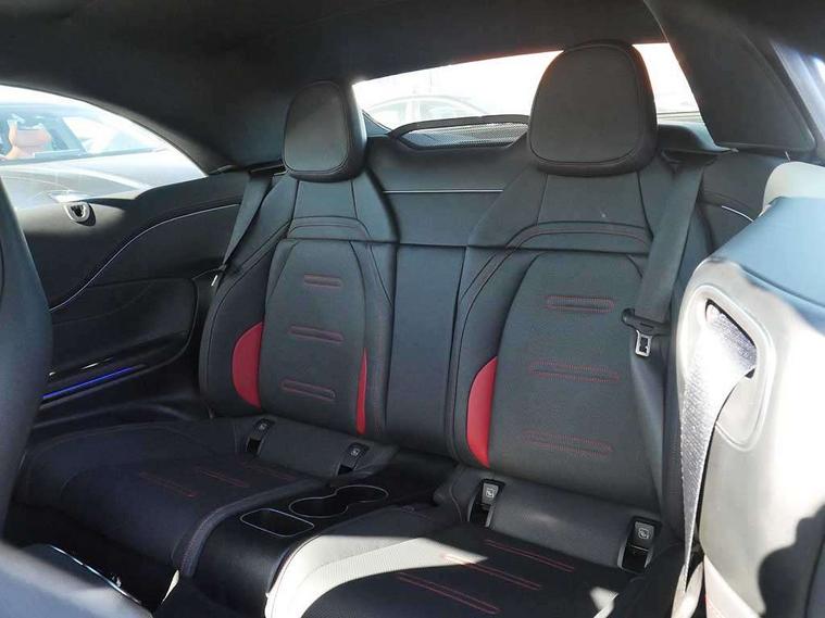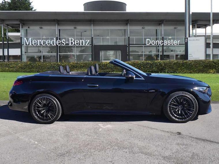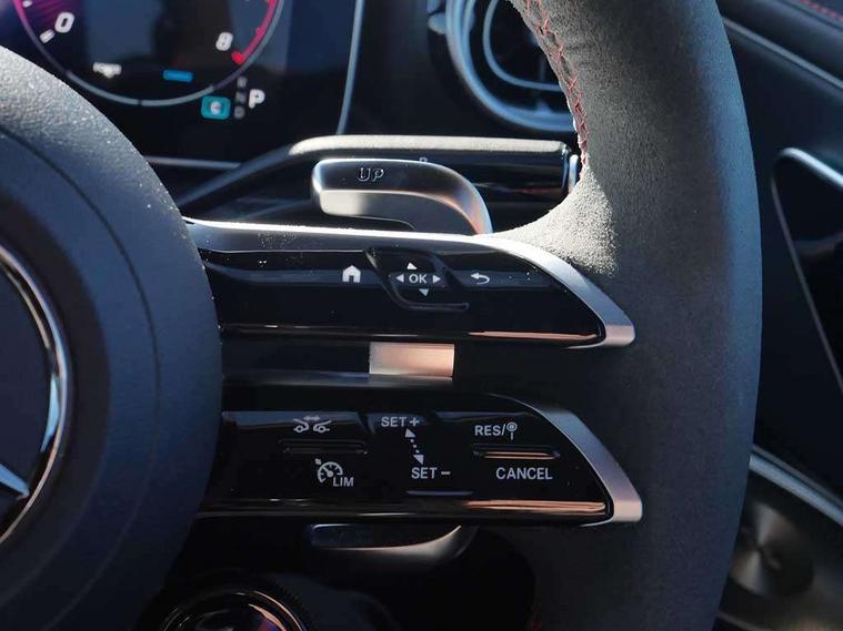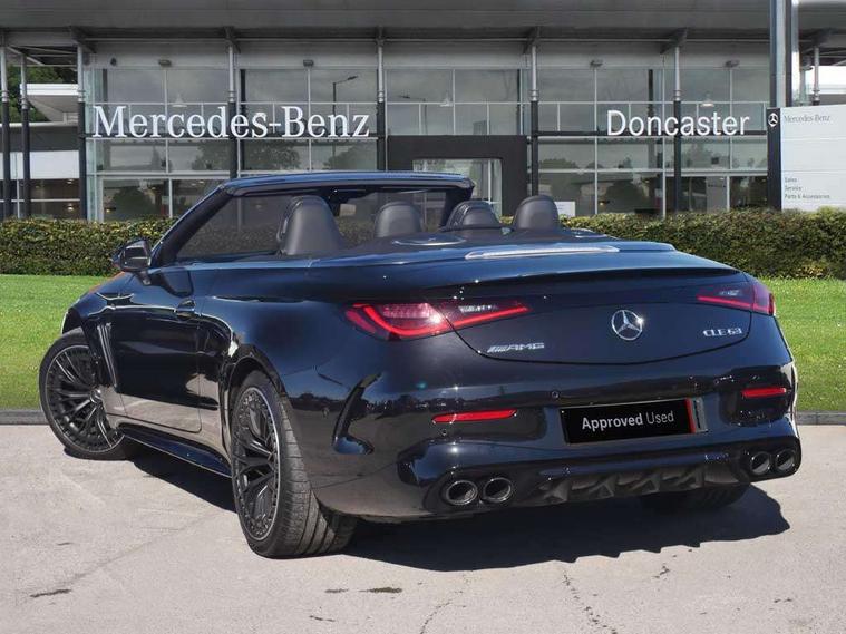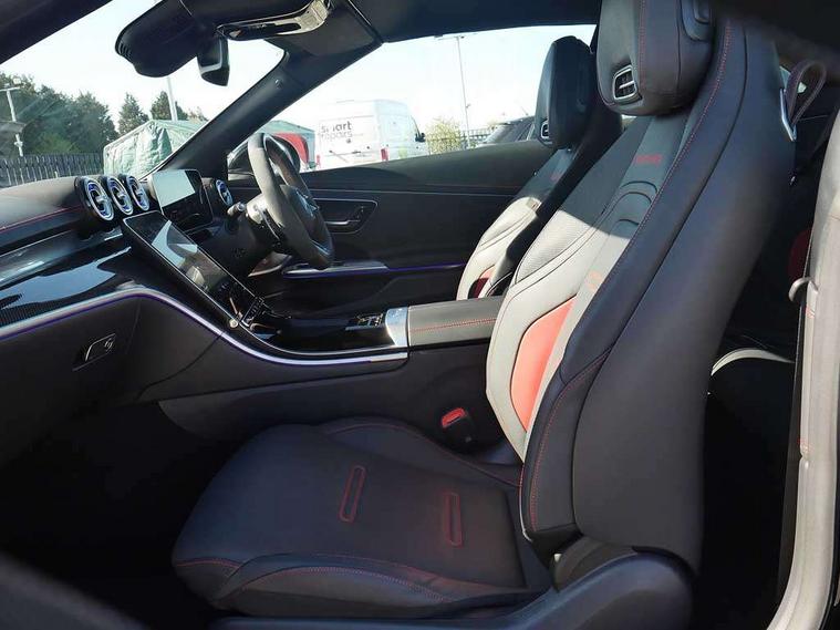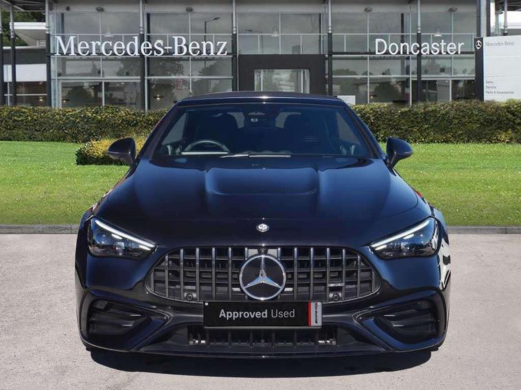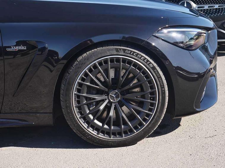 5G Communications module, Active lane keeping assist, Attention assist, Bluetooth connection, Boot lid convenience closing via button on boot lid, Car wash mode, eCall emergency call system, Fingerprint scanner, Fluorescent jacket for driver, Fully digital 12.3" driver display screen, Hard-disk navigation, Head up Display, Hey Mercedes Voice activation, High-resolution 11.9" multimedia colour display, MBUX augmented reality for navigation, MBUX navigation premium, PAS, Passive person presence reminder, Rear axle steering, Remote services, Service indicator assist, Smartphone integration with Apple CarPlay and Android auto, Traffic sign assist, Wireless charging system for mobile devices in the front, 66 litre fuel tank, 9G TRONIC plus automatic transmission, AMG Ride Control suspension with adjustable damping, Integrated starter generator Gen 2, Petrol Particulate Filter (PPF), Sporty engine sound system, Burmester 3D surround sound system with sound personalisation, Digital radio, MBUX extended functions, MBUX multimedia system, Adaptive brake lights, AMG bodystyling, AMG fuel cap, AMG specific radiator grille with vertical struts in high gloss chrome and AMG logo, AMG spoiler lip in high gloss black, Auto headlights, Electric windows, Flared wheel arches, LED 3rd brake light, LED Day time running light, LED digital light with adaptive highbeam assist plus, LED tail lights, Mercedes AMG exterior, Rain sensor windscreen wipers, Rear boot, Variable front intermittent wipers, 2 individual rear seats, 2 rear head restraints, 4 way lumbar support, Ambient lighting premium, Ambient lighting with projection of brand logo, AMG floor mats, AMG illuminated door sills with 'AMG' lettering and exchangeable cover, AMG Leather upholstery, Automatic child seat recognition sensor, Belt feeder, Folding rear seat backrests, Front headrests, Instrument panel and beltlines in ARTICO manmade leather in nappa look, Mercedes AMG interior, Single front passenger seat, Steering - Sport direct-steer system with speed sensitive steering, THERMATIC automatic climate control, AMG exterior night package - CLE, Comfort package - CLE, Energizing plus package with air balance pack - CLE, Interior light pack - CLE, Mirror pack - CLE, Parking package with 360 degree camera - CLE, Stowage space package - CLE, USB package plus - CLE, Active bonnet, Adaptive brake system with hold function and brake drying function, Anti-lock braking system (ABS), Automatic front passenger airbag deactivation, Braking system with larger brake discs on the front axle, Centre airbag, Driver knee airbag, Driver window airbag, Drivers pelvis airbag, Dual front airbags, Electric parking brake, Electronic Stability Programme (ESP), First aid kit and warning triangle, Front and rear seatbelt reminder, Front side airbags, Hill start assist, ISOFIX child seat attachment points with top tether in rear, Pedestrian protection, Seat occupancy sensor for rear seats, Tyre pressure monitoring system, Central locking with interior switch, automatic locking and crash sensor with emergency opening function, Dashcam, Guard 360 degree vehicle protection plus, Increased anti-theft protection, Interior monitoring system, Keyless Go, Keyless Go starting function, URBAN GUARD vehicle protection (Thatcham Category 1) consisting of break-in, anti-theft alarm system (ATA), interior monitoring and tow-away protection, AMG carbon fibre trim with high gloss black centre console, ARTICO leather in dashboard with contrast stitching, 20" AMG Y spoke light alloy wheels painted in matt black, Tirefit,