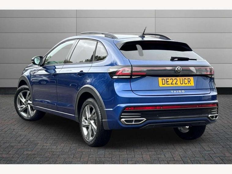 Adaptive cruise control, App-Connect including App-Connect Wireless, Digital cockpit pro - 10.25" high resolution TFT dash display screen with customizable menus and information, Driver alert system, Driving profile selection, e-Call (emergency call), Power Steering, Travel assist including emergency assist, Washer fluid level indicator, Wireless Charging including Bluetooth, Start-stop system with battery regeneration (recuperation - energy recovery during braking), XDS electronic differential lock for improved traction and handling, Digital radio reception (DAB+), Diversity antenna for FM reception, WeConnect plus, Ambient lighting with logo projection, Aspherical driver's exterior mirror, Auto headlights, Body coloured bumpers, Body coloured exterior mirror housings and door handles, Bumpers in R-Line style, Electric windows, External USB type C socket and charging sockets, Front fog lamps with cornering function, Front scuff plates with R-Line logo, Headlight range control, LED headlamps, LED rear combination lamp, LED third brake light, Left convex exterior mirror, Power folding adjustable/heated exterior mirrors and front passenger exterior mirror lowering function, Rear fog light on one side, reversing light on both sides, Rear side wing doors, Rear wash/wipe with intermittent wipe setting, 12V socket in centre console, 2 front reading lights, 3 rear head restraints, 3 seat bench in 2nd row, Air care climatronic air conditoning system with active combination filter and 2-zone temperature control, Black carpets, Black roof lining, Child seat anchor for child seat system i-Size, 2x top tether and child seat anchor in front on front passenger side, Chrome bezel for instrument cluster, vents, door handles + gear shift, Driver and front passenger seat height adjustment, Front + rear carpet mats, Front centre armrest, Front footwell illumination, Front sports comfort seats, Height and reach adjustable steering wheel, Interior ambient lighting and surround lighting, Karoso artvelours cloth upholstery, Leather trimmed gear knob, Leather wrapped multifunction steering wheel, Luggage compartment floor, Luggage compartment light, Lumbar support for driver's and front passengers seat, Seat covers in grey + titanium black, Single front passenger seat, Split folding backrest with centre armrest and unsplit rear seat bench, Stainless steel pedals, Storage compartment under front seats, Sun visors with illuminated vanity mirrors, Chrome Package - Taigo, Drivers assistance pack - Taigo, Light and Sight pack including High beam assist - Taigo, 2 x 3-point seatbelts/outer rear seats with ECE label, 3-point seat belts in front with pretensioner and height adjustment, 3-point seatbelt for centre rear seat, Driver and front passenger airbags with front passenger airbag de-activation, front side and curtain airbags, Driver and front passenger safety-optimised head restraints, Electronic stability control, Extended and predictive pedestrian/ cyclist protection, Front and rear disc brakes, Front curtain and side airbags with center airbag, Hill start assist, Manual rear child locks, Single tone horn, Tyre pressure loss indicator, Anti-theft alarm system with interior monitoring, backup horn, and towing protection, Anti-theft wheel bolts, Grey anodised matte decorative inserts in dash and front door panels, Low rolling resistance tyres,