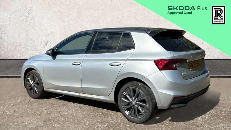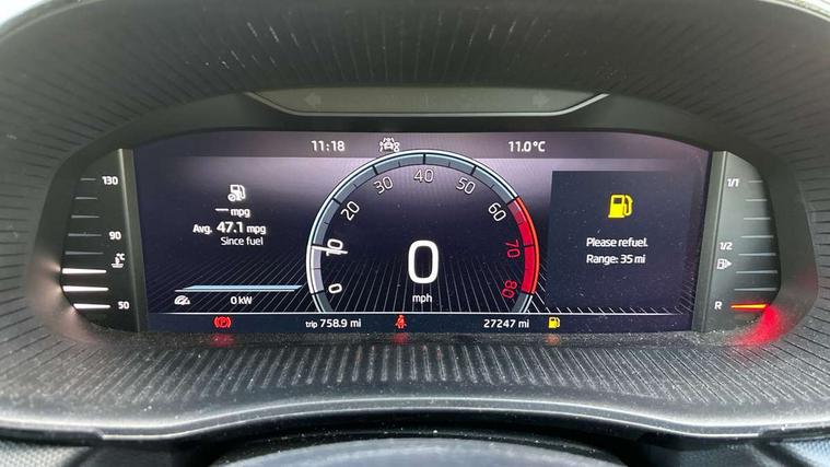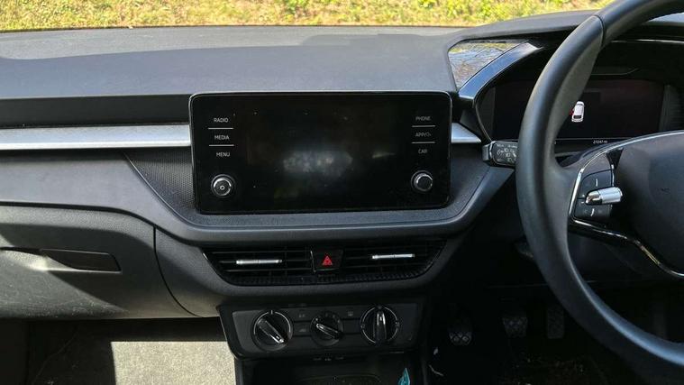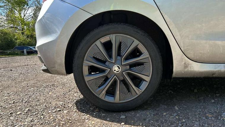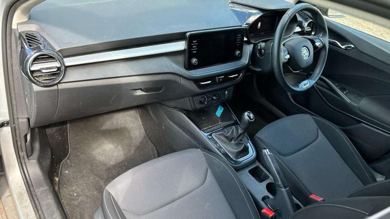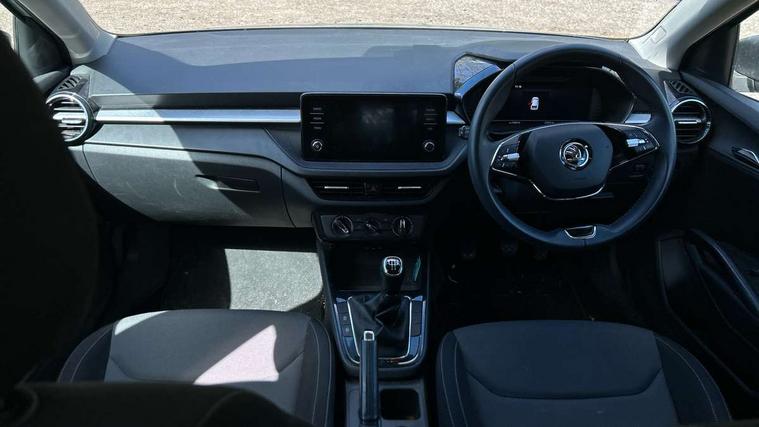 Bluetooth connection, Driver alert system - DAS, Electromechanical power steering, Exterior temperature gauge, Lane assist including road edge detection, Service interval indicator, Virtual cockpit with 10.25" colour display, 2x USB-C in the front (for data transmission and charging), 6 Speakers (4 in front and 2 in rear), Auxiliary socket for external MP3 player, Bolero radio with 8" colour display, DAB digital radio reception, Basic rear lights, Body coloured bumpers, Dimming rear view mirror with black frame, Door mirror integrated indicators, Electrically adjustable and heated door mirrors, Electrically adjustable front windows with function auto up/down, Front window wiper intermittent control, Headlight range control - Automatic, Ice scraper in fuel cap, LED daytime running lights with coming and leaving home feature, Mechanical adjustable rear windows, Privacy glass, Rear LED fog light, Rear side wing doors, Rear window wiper with washing nozzles, Roof colour door mirrors, Roof mounted spoiler, SKODA tailgate lettering in chrome, Third brake light, 3 rear headrests, Backrest split and folding, Central console with fixed cup holder and storage box, Chrome handbrake release button, Fabric upholstery, Gearshift knob/handle in leather, Grain satin black interior door handles, Hand brake lever handle in leather, Height adjustable front headrests, Height adjustable steering wheel, ISOFIX and TopTether anchorage points to the outer rear seats, ISOFIX and TopTether on the front passenger seat, Luggage compartment lighting, Pollen filter, Rear seat bench unsplit, Single front passenger seat, Storm grey headlining, Sun visors with mirror and airbag label on passenger side, Ticket holder, Umbrella in drivers door, 3-point height adjustable front seats belts with pretensioner and force limiter, Automatic warning lights in case of crash, Driver and passengers airbag with switch off function, e-Call+, ESC including ABS, MSR, ASR, EDS, HBA and XDS, Front and rear seat belt warning, FRONT ASSIST (AEB City and AEB Inter Urban), Front side airbags, Head airbags, One tone horn, Pedestrian protection, Three rear 3-points safety seat belts with pretensioner and force limiter including stop function for outer rear seat belts, Tyre pressure monitoring system, Anti-theft alarm system including immobiliser, interior monitoring, backup horn, and towing protection, Anodized cross line upper decorative trim, Colour Edition air vents, Grain satin black central console cover, Grain satin black lower decorative trim, Satin black door and side trim panel in front, Anti-theft wheel bolts protection, Super-low rolling resistance tyres,