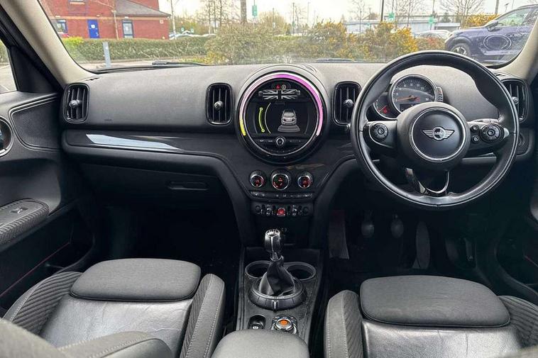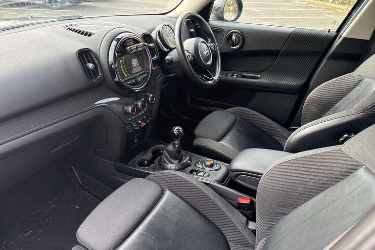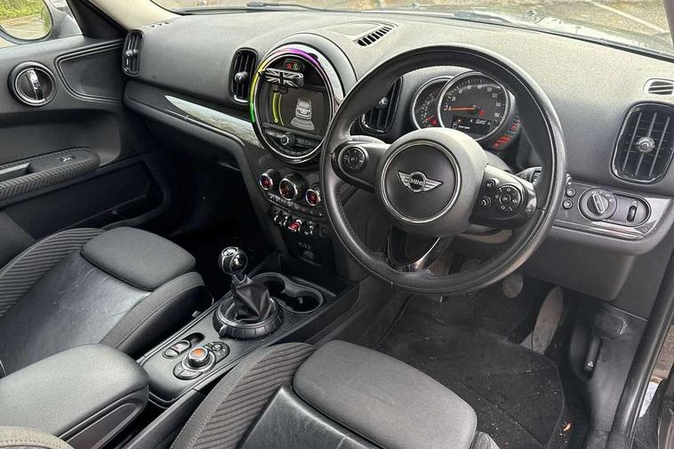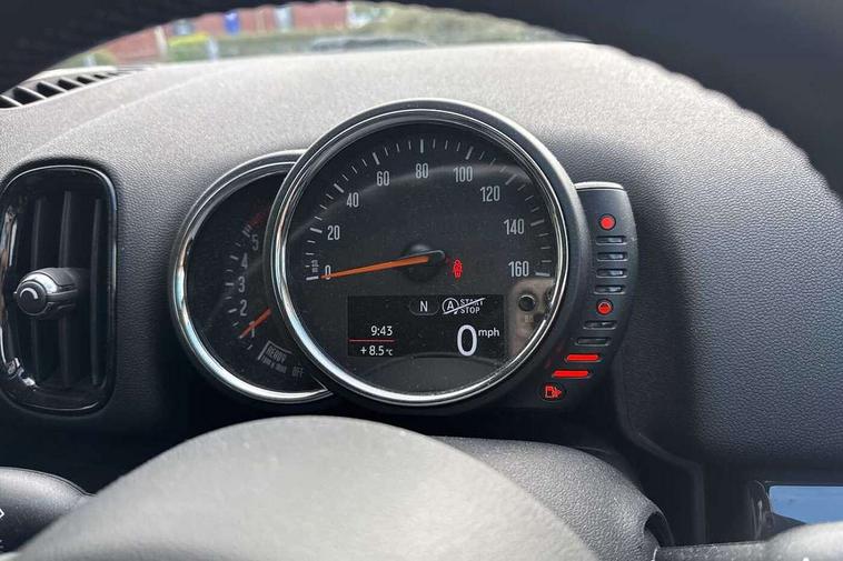 Brake pad wear indicator warning light, DTC - Dynamic traction control, Exterior temperature gauge, Intelligent emergency call, MINI TeleServices, Navigation system, On board computer, Personal Profile, Service interval indicator, Servotronic speed sensitive power steering, Diesel particulate filter, Electronic differential lock, Auxiliary input socket, DAB digital radio module, MINI Connected, MP3 compatible radio/single CD player, Radio visual boost, Anti dazzle rear view mirror, Chrome door handles, Chrome exhaust tailpipe, Chrome headlight surround, Chrome plated radiator grille, Chrome window surround, Electric front windows + one touch + anti-pinch, Electrically adjustable door mirrors, Follow me home headlights, Heated door mirrors/heated windscreen washers, Heated rear window with automatic switch off, Metal look door sill finishers, Rain sensor including auto headlights activation, Rear wiper, Roof spoiler, White indicator lights, 12V power point front, 2 cupholders in front centre console, 4 lashing points to secure luggage, 40:20:40 split folding rear seats, Centre console storage box, Chrome interior door handles, Driver/passenger sunvisors, Front and rear headrests, Front and rear Isofix child seat preparation, Front and rear velour floor mats, Front centre armrest with storage compartment, Front interior light, Front passenger grab handle, Front seat backrest storage nets, Heater with recirculation function, Height/reach adjust steering wheel, Luggage compartment lighting, Multifunction steering wheel, Rear grab handles, Sensatec gearshift and handbrake, Storage compartments in doors, Toolkit in luggage compartment, Interior lights pack - Countryman, MINI Excitement Pack - Countryman, 3 point automatic seatbelts, 3 point seatbelts on all rear seats, ABS, Cornering brake control (CBC), Crash Sensor - activates hazard/interior lighting + unlocks doors, Driver and passenger airbags, Driver and passenger side airbags, DSC - Dynamic Stability Control, Electronic brake force distribution, Electronic parking brake, Front curtain airbags, Front passenger airbag deactivation, Fuel cut off safety device, Hill start assist, Pyrotechnically pre-tensioned front seatbelts, Tyre pressure warning, Automatic door locking, Keyless Start, Locking wheel bolts, RF remote control central locking, Second remote key, Thatcham category 1 alarm + immobiliser,
