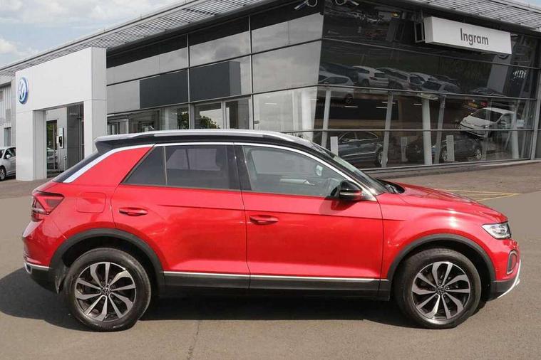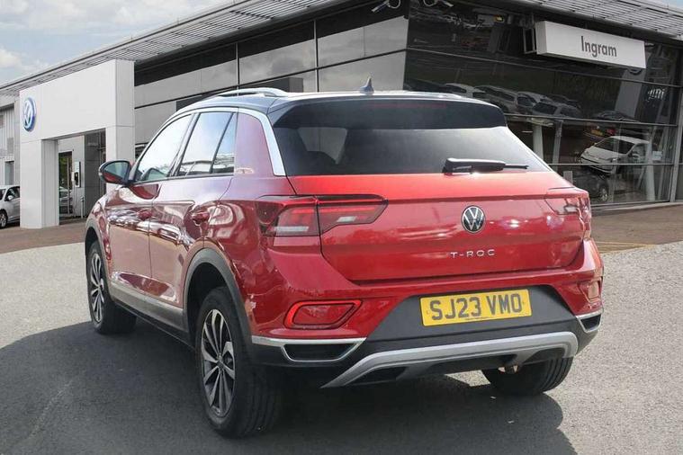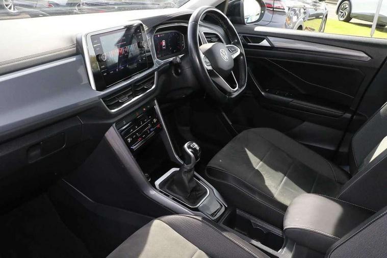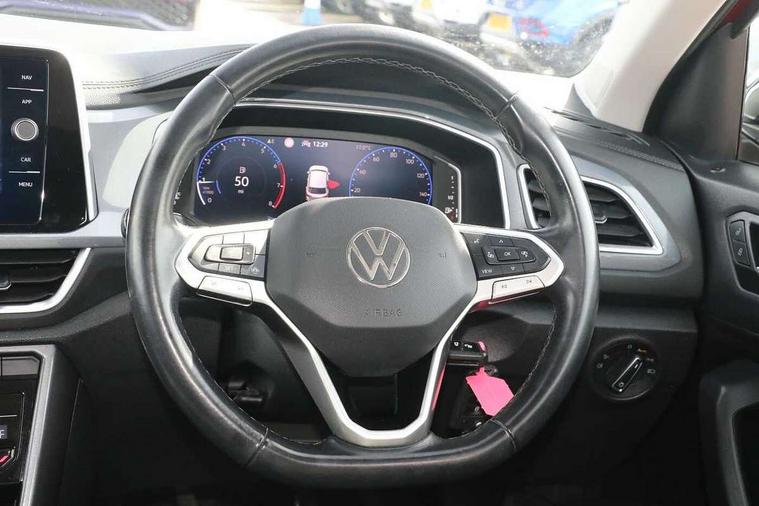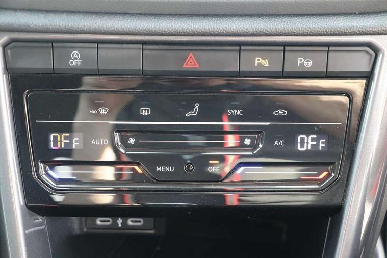 10.25" Digital cockpit pro, Bluetooth mobile phone interface, Driver alert system with fatigue detection, Driver tips and journey analysis, Dynamic road sign display, Emergency call service, Lane keeping system Lane Assist, Modified key software - reduce switch off time for key status change to Long no motion, Online services, Park assist including front and rear parking sensors, Power assisted speed sensitive steering, Service interval indicator, Tailgate/trunk lid release from outside, Think blue trainer driver tips and journey analysis, Warning sound and light for front seatbelts unfastened, Wireless app connect, Battery regeneration during braking, Front shock absorption, Rear shock absorption chassis with increased ride height, Start/stop function with battery regeneration, Diversity antenna for FM reception, Front and rear 6 speakers, Music playback - MP3, WMA and AAC files, Premium USB cable in choice of either Apple or Android smartphone compatibility, SD card slot, Simultaneous pairing of 2 compatible mobile devices, Title and cover art display, We Connect and We Connect Plus functionality, 3rd brake light, Auto dimming interior rear view mirror, Automatic hazard lights activation under emergency braking, Automatic headlight control with LED separate daytime running lights with coming/leaving home function, Body colour sports bumpers with silver metallic underbody fascia, Dynamic headlight range control with self adjusting whilst driving, Extended roof spoiler, Exterior mirrors aspherical on driver side, convex on front passenger side, External USB type C socket and charging sockets, Front windscreen wiper with intermittent wipe and 4 position delay, Heated rear window, LED Plus headlamps, LED rear combination lamps, LED rear number plate lights, LED tail lamp rear comination lamps, Light mode for poor weather, rain, fog or snow, Power windows with comfort operation and circuit breaker, Rain sensor, Rear exhaust tailpipe, Rear fog light on one side and reversing lights on both sides, Rear side wing doors, Rear wash/wipe with intermittent wipe setting, Remote electrically foldable door mirrors, puddle lights and reverse activated passenger's door mirror, 12V power socket in centre console, 3 rear head restraints, 3 seat bench in 2nd row, 4 load lashing points in luggage compartment, Air care climatronic air conditoning system with active combination filter and 2-zone temperature control, Chrome plated radiator grille inserts, air vent surrounds and light switch surrounds, Door and side trim panel with leatherette insert, Drawer under drivers seat, Front + rear carpet mats, Front centre armrest, Front comfort sports seats, Front cupholders x 2, Front footwell illumination, Instrument lighting, white adjustable panel illumination, Interior ambient lighting and surround lighting, Interior light delay, Isofix child seat preparation, Leather gearshift handle, LED interior light with switch off delay/dimmer and 2 front/rear LED reading lights, Load-through provision with cup holder when folded down ('Unsplit rear seat bench, split folding backrest, with centre armrest), Luggage compartment lighting, Non-folding front passenger seat backrest, Single front passenger seat, Storage compartment in left and right luggage area, Storage compartment in rear doors, Storage compartments in driver and front passenger doors, Sunvisors with illuminated vanity mirrors, Variable boot floor, height adjustable and removable, Driver assistance pack without proactive passenger protection - T-Roc, 3 point height adj front seatbelts + pretensioners, 3 point seatbelts in outer rear with ECE label, ABS, Child locks on rear doors, Driver and front passenger airbag with front passenger airbag deactivation, Driver and front passenger safety-optimised head restraints, Drivers seatbelt reminder, Electronic parking brake, Electronic Stability Control (ESC) inc EDL (Electronic Differential Lock) and ASR (Traction Control), Front and rear passengers curtain airbag system including front side airbags, Front assist with city emergency braking and pedestrian monitoring, Front disc brakes, Front seat side impact airbags, Predictive pedestrian protection, Rear disc brakes, Single tone horn, Tyre pressure loss indicator, Volkswagen roadside assistance, Alarm with interior protection, Anti-theft alarm system with interior monitoring, backup horn, and towing protection, Remote central locking with SAFELOCK, radio remote control with 2 remote control folding keys, Trims for alloy wheels,