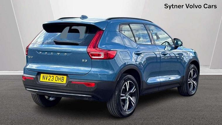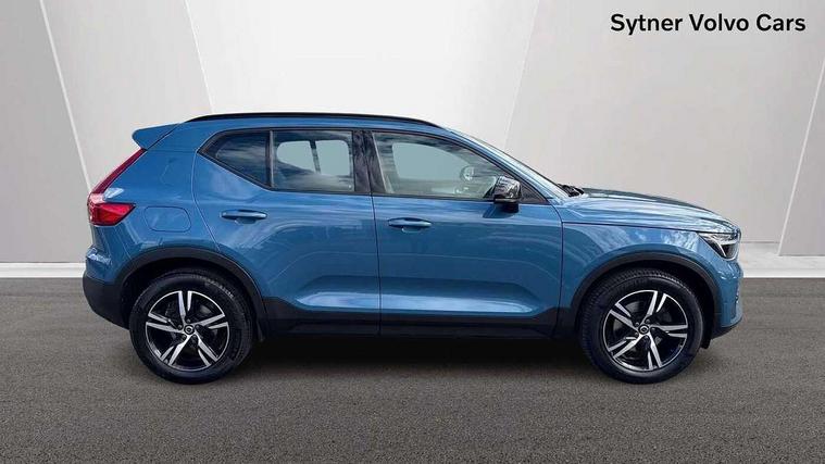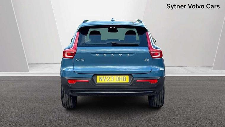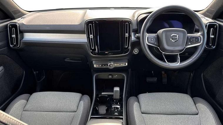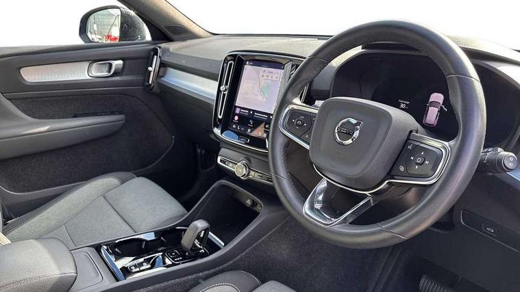 12.3" Progressive Driver Display, 360 degree surround view parking camera with side proximity sensors, 9" centre console portrait touch screen, Adjustable steering wheel force, Bluetooth hands free telephone kit, Cruise control, E-call, Front park assist, Google automatic services - Nav with google maps, apple carplay/android auto, voice recognition with google assistant, Hands free power tailgate, Lane keep assist with driver alert control, Oncoming Lane Mitigation, Rear park assist, Speed limiter, Speed sensitive steering, Wireless/Inductive Mobile Phone Charging, Dynamic chassis, DAB Digital radio, High performance sound, 8 speakers/250W, front USB and 2 rear type C USB, Steering wheel mounted remote controls, Adaptive brake lights with high level LED brake lights, Auto dimming feature for exterior door mirrors, Auto dimming interior mirror, Automatic headlamp levelling, Automatic LED Headlights + Active high beam incorporating daytime running lights, Front aluminium tread plates, Front and rear electric windows, High gloss black front and rear skid plate, High gloss black mesh front grille with high gloss black surround, High gloss black window trim, Home safe and approach lighting, Integrated roof rails in high gloss black, LED front fog lights, Puddle lights, Rain sensor with automatic windscreen wiper activation, Rear side wing doors, Rear wiper, Roof antenna, Roof spoiler, Visible VIN plate, 12V socket in front tunnel console and luggage compartment, 2-Zone electronic climate control with CleanZone air quality system and pollen filter, 3 seat bench in 2nd row, 3 Spoke tailored steering wheel with chrome trim, 60/40 versatile split folding rear seat, A-pillar parking ticket holder, Centre console cupholders and storage, Flexible load floor and grocery bag holder, Floor mats, Front door pocket, front cupholder, ambient front door, rear reading, rear courtesy, instrument panel and tailgate lighting, Front footwell illumination, Front headrests, Front reading light and theatre lighting, Front seat cushion extensions, Front tunnel pocket, Glovebox bag hook, Heated front seats, Height adjustable passenger seat, Height/reach adjustable steering column, High gloss centre tunnel deco, Illuminated glovebox, Illuminated luggage compartment, Illuminated vanity mirrors, Integrated waste bin, Isofix attachments on outer rear seats, Load protection net, Multi directional lumbar support, Power driver seat with memory + exterior mirrors memory, Rear armrest / integral cup holders / storage tray, Rear headrests, Single front passenger seat, Underfloor cargo storage, Climate pack without heated front seats - XC40, 3x3 point rear seatbelts, City safety with steering support with Pedestrian + cyclist + front collision warning with full auto brake and rear auto brake, Drivers knee airbag, Dual stage driver/passenger airbags, Electronic parking brake with auto hold, First aid kit, Front and outer rear seatbelt reminder and pretensioners, Front seats SIPS airbags, Hill descent control, Hill start assist, Inflatable curtain, Passenger airbag cut-off device, Power child locks on rear doors, Road sign information display, Run off Road Mitigation, Run off Road Protection, SIPS (Side Impact Protection System), Slippery road and hazard light alert, Stability and Traction Control with Spin control, Engine Drag Control and Corner Traction Control, Tyre pressure monitoring system, Vehicle deceleration control with Anti-lock Brake System, Electronic Brake Distribution and Emergency Brake Assist, Warning triangle, WHIPS whiplash protection system - front, Anti-theft alarm including immobiliser/volume sensor + level sensor, Key integrated remote control central locking + fuel flap with deadlocking system and auto open/close power windows, Keyless drive includes keyless entry and keyless start, Locking wheel nuts,