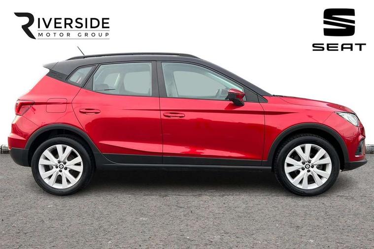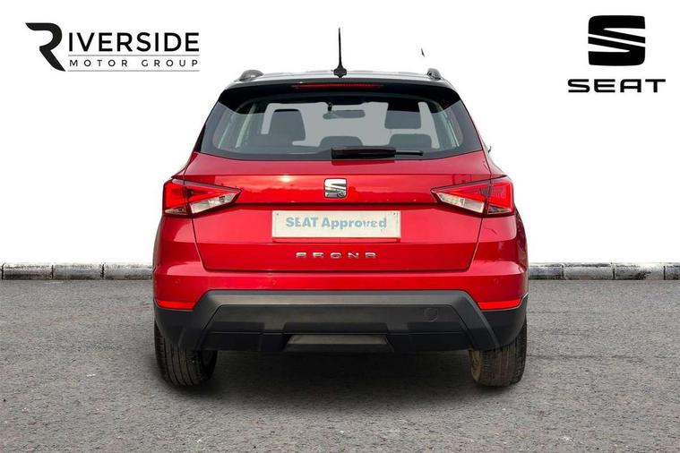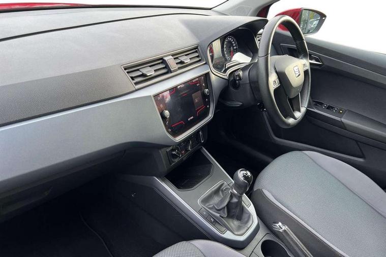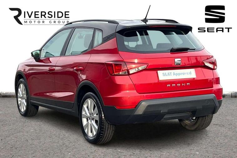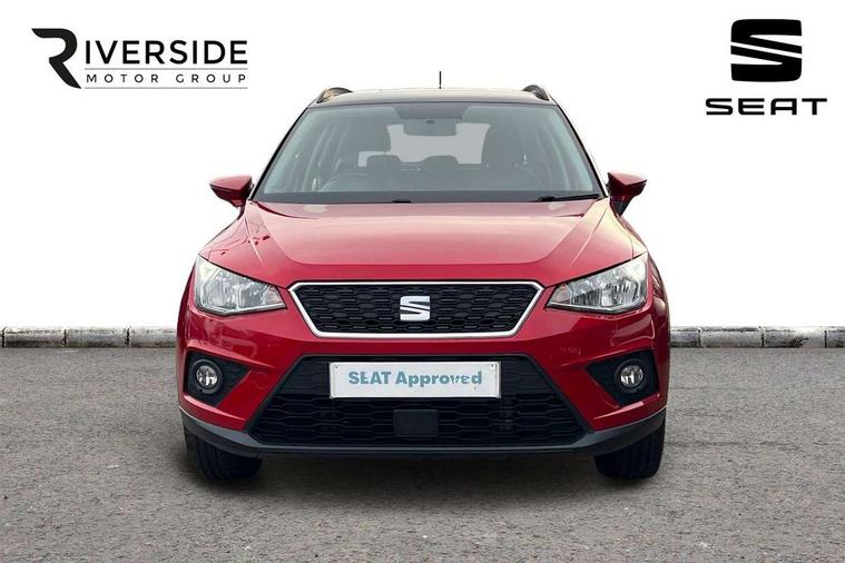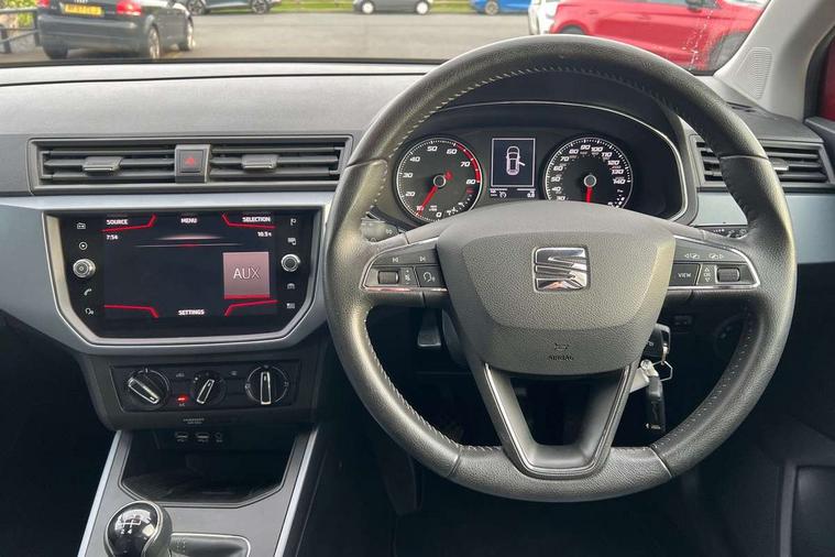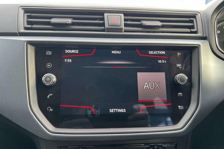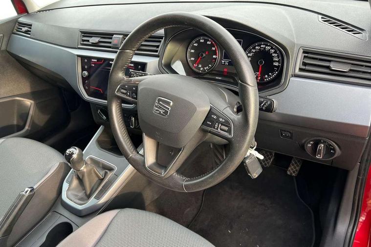 'Lights On' Reminder warning buzzer, Cruise control, Electric speed sensitive power steering, Front assistant collision mitigation, Outside temperature display, Rear parking sensor, Trip computer, Comfort suspension, 6 speakers, Bluetooth interface for hands free and audio streaming, DAB Digital radio, Steering wheel mounted audio controls, Automatic activation of hazard warning lights, Automatic headlights, Black roof rails, Black window surrounds, Body coloured bumpers, Body coloured door handle inserts, Chrome grille surround, Electric adjustable door mirrors, Electric front/rear windows with one touch/auto up/down, Electric headlight adjustment, Front fog lights with static cornering function, LED daytime running lights, LED tail lights, Rear window wash/wipe, 2 cupholders, 3 rear height adjustable headrests, 60/40 split folding rear seat, Air conditioning, Ambient interior lighting, Cloth upholstery, Double boot floor, Driver and passenger sunvisors, Driver/front passenger seat height adjustment, Dust/pollen filter, Footwell ambient lighting, Front courtesy lights, Front reading light, Height/reach adjustable steering column, Illuminated boot, Isofix attachments on outer rear seats, Leather handbrake, Leather steering wheel and gear knob, Connectivity pack plus - Arona, 3 point seatbelts on all rear seats, ABS+EBA, Child locks on rear doors, Driver/Front Passenger airbags, Electronic stability control, Front and rear seatbelt reminder, Front side/curtain airbags, Height adjustable active front headrests, Hill hold control + Tyre Pressure monitor, Multi-Collision braking, Passenger airbag deactivate switch, Tiredness recognition system, Traction control, 2 folding remote keys with window open/close function, Immobiliser, Locking wheel bolts, Remote central locking + deadlocks, Interior chrome line trim, 17" Dynamic alloy wheels,