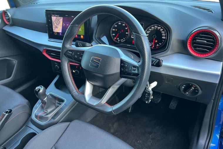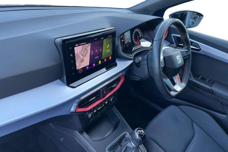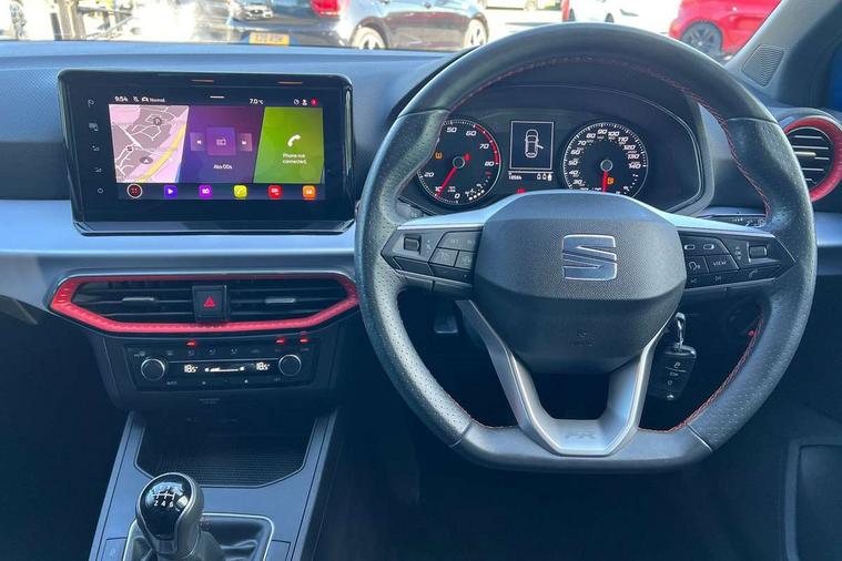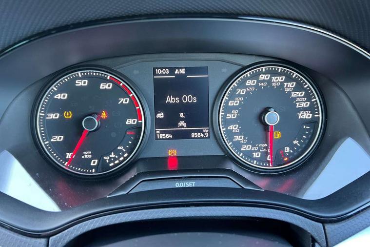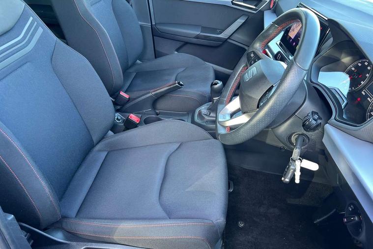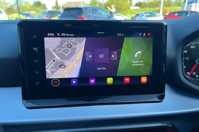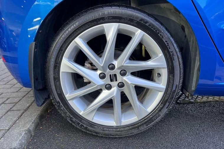 'Lights On' Reminder warning buzzer, 9.2" touchscreen navigation system with type C USB socket, Voice control and DAB/AM/FM radio, Auto start and stop system, Bluetooth audio streaming with handsfree system, Digital clock, E-call, Full link smartphone integration with mirror link, wireless apple carplay, Google android auto + USB Type C cable for apple and android devices, Lane assist, Low fuel warning light, Outside temperature gauge, Power Steering, Seat connect with safety, service, remote and online, SEAT drive profiles and ECO function, SEAT logo boot release, Speed limiter, Trip computer, Sports suspension, Auxiliary input socket, Radio/MP3 player, SD card slot, Steering wheel mounted controls, Anti theft roof antenna, Auto dimming rear view mirror, Automatic rain sensing wipers, Black door mirrors, Body colour bumpers, Body colour door handles, Brilliant black window surrounds, Dark tinted rear windows, Electric adjustable/heated/folding door mirrors, Electric front windows, Electric headlight adjustment, Electric rear windows, Front/rear fog lights, FULL LED automatic headlights with dynamic headlight range control, coming and leaving home, LED daytime running lights, LED tail lights, Rear roof spoiler with FR twin exhausts, Rear side wing doors, Rear wiper, Third brake light, 3 seat bench in 2nd row, 60/40 split folding rear seat, Ambient interior lighting, Chrome detailing and black headlining, Cloth upholstery, Dual zone climate control with combination filter, Front courtesy lights, Front cupholders x 2, Front reading lights, Gear shift indicator, Glovebox, Height adjustable front and rear headrests (five), Height adjustable front seats, Height/reach adjust steering wheel, Illuminated air vent surrounds, Illuminated boot, Instrument lighting with brightness control, Isofix, Leather multifunction flat bottomed sports steering wheel, Passenger sunvisor, Single front passenger seat, Sports seats, Sunvisors with mirror and driver side card holder, 3 point seatbelts on all 3 rear seats, ABS, Active front headrests, Child locks on rear doors, Electronic stability control, Energy recovery system, Front assist forward collision warning and autonomous emergency braking, Front driver and passenger side airbags with curtain airbag and front passenger airbag deactivation, Hill hold control, Multi-Collision braking, Seat belt reminder for front and rear seats, Tiredness recognition system, Tyre pressure monitoring system, Electronic engine immobiliser, Locking wheel bolts, Perimeter alarm and interior monitoring with backup horn and tow away protection, Remote central locking + deadlocks, 17" Alloy wheels in Brilliant silver,