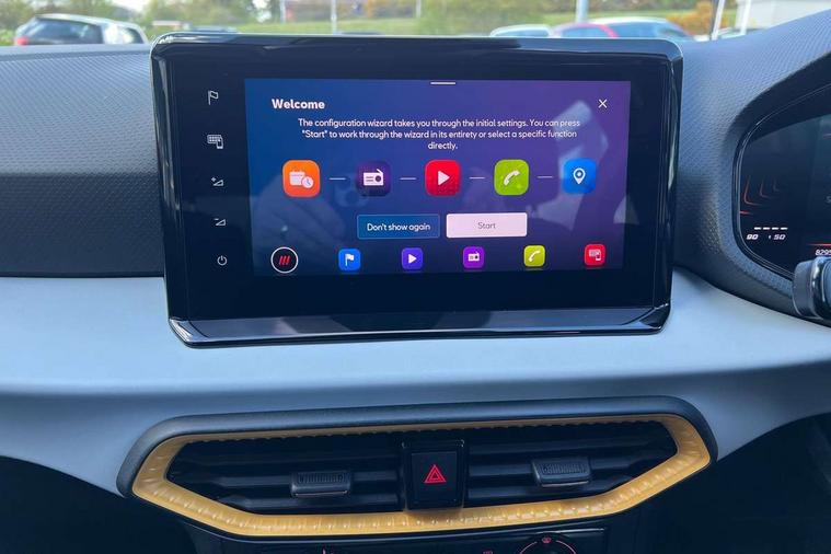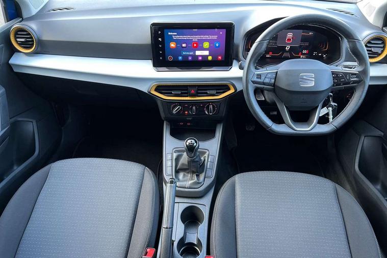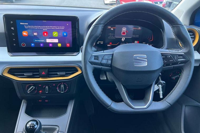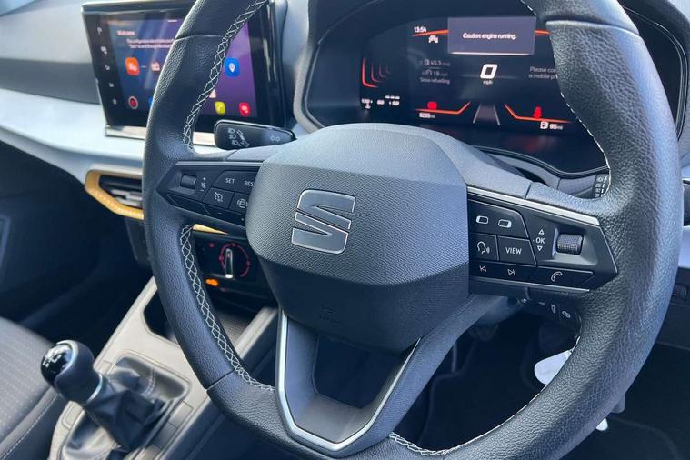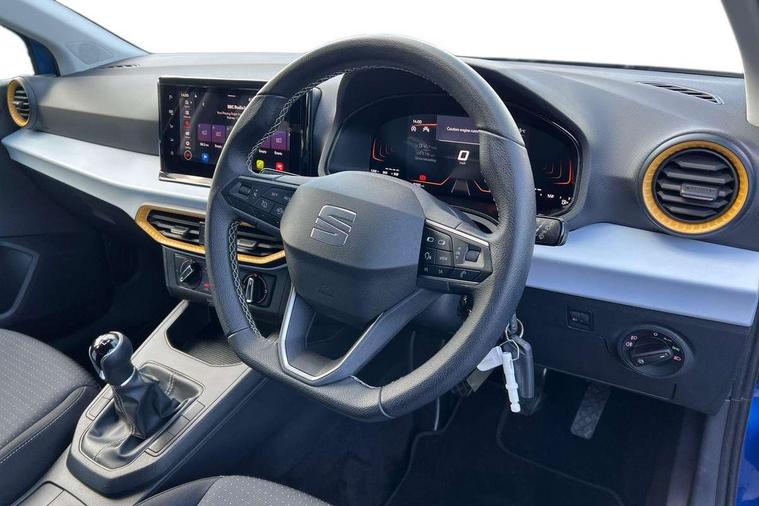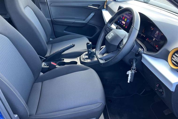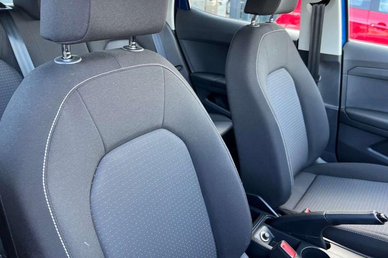 'Lights On' Reminder warning buzzer, 8" Digital cockpit, 9.2" touchscreen navigation system with type C USB socket, Voice control and DAB/AM/FM radio, Auto start and stop system, Bluetooth audio streaming with handsfree system, Cruise control, Digital clock, E-call, Full link smartphone integration with mirror link, wireless apple carplay, Google android auto + USB Type C cable for apple and android devices, Lane assist, Low fuel warning light, Outside temperature gauge, Power Steering, Rear parking sensor, Seat connect plus with safety, service, remote and online, SEAT logo boot release, Speed limiter, Traffic sign recognition, Trip computer, Comfort suspension, Auxiliary input socket, Radio/MP3 player, SD card slot, Steering wheel mounted controls, Anti theft roof antenna, Body colour bumpers, Body colour door handles, Body colour door mirror caps, Dimming interior rear view mirror, ECO LED automatic headlights and LED daytime running lights, Electric front windows, Electric headlight adjustment, Electrically adjustable door mirrors, Front/rear fog lights, Halogen tailights, Rain sensor, Rear side wing doors, Rear wiper, Third brake light, 3 seat bench in 2nd row, 60/40 split folding rear seat, Air conditioning with dust and pollen filter, Chrome interior detailing and grey headlining, Cloth upholstery, Comfort seats, Front courtesy lights, Front cupholders x 2, Front reading lights, Gear shift indicator, Glovebox, Height adjustable front and rear headrests (five), Height adjustable front seats, Height/reach adjust steering wheel, Illuminated boot, Instrument lighting with brightness control, Isofix, Leather multifunction flat bottomed sports steering wheel, Passenger sunvisor, Single front passenger seat, Sunvisors with mirror and driver side card holder, Safety and driving pack (S) - Ibiza, 3 point seatbelts on all 3 rear seats, ABS, Active front headrests, Child locks on rear doors, Electronic stability control, Energy recovery system, Front assist forward collision warning and autonomous emergency braking, Front driver and passenger side airbags with curtain airbag and front passenger airbag deactivation, Hill hold control, Multi-Collision braking, Seat belt reminder for front and rear seats, Tiredness recognition system, Tyre pressure monitoring system, Locking wheel bolts, Remote central locking + deadlocks, 16" Design machined alloy wheels in Nuclear grey,