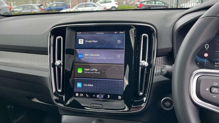 12.3" Progressive Driver Display, 360 degree surround view parking camera with side proximity sensors, 9" centre console portrait touch screen, Adjustable steering wheel force, Android auto (Wired), Apple carplay (wired), Bluetooth handsfree system, Driver alert control, Driver assistance (pilot assist and adaptive cruise control), Driver awareness - Blind spot information system with steer assist, cross traffic alert with autobrake and rear collision warning and mitigation, E-call, Front park assist, Google automotive services - Enabled entertainment apps, navigation with google maps, voice recognition with google assistant, Hands free power tailgate, Intelligent speed assistance, Lane keeping aid, Oncoming Lane Mitigation, Rear park assist, Speed sensitive steering, Volvo cars services with app - Driving journal, engine remote start, remote door locking/unlocking and vehicle dashboard, Wireless/Inductive Mobile Phone Charging, Automatic transmission with start/stop and manual change functions, Dynamic chassis, DAB Digital radio, Premium Sound by Harman Kardon, Dolby Pro Logic II Surround Sound, Dirac Unison, 12 speakers/600W and subwoofer, Steering wheel mounted remote controls, Active bending pixel LED headlights with adaptive shadow technology, Active high beam incorporating daytime running lights, Adaptive brake lights with high level LED brake lights, Auto dimming feature for exterior door mirrors, Auto dimming interior mirror, Automatic headlamp levelling, Colour coordinated auto folding and heated power door mirrors, Dark tinted windows - rear side windows and rear screen, Front aluminium tread plates, Front and rear electric windows, Headlight cleaning system, High gloss black front and rear skid plate, High gloss black front bumper deco, High gloss black front grille strikethrough and ironmark, High gloss black rear model, engine and volvo logo badges, High gloss black window trim, Home safe and approach lighting, Integrated roof rails in high gloss black, LED front fog lights with cornering function, Power glass tilt and slide panoramic sunroof with sun curtain, Puddle lights, Rain sensor with automatic windscreen wiper activation, Rear side wing doors, Rear wiper, Roof antenna, Roof spoiler, Visible VIN plate, 12V socket in front tunnel console and luggage compartment, 2-Zone electronic climate control with CleanZone air quality system and pollen filter, 3 seat bench in 2nd row, 3 Spoke tailored steering wheel with chrome trim, 60/40 versatile split folding rear seat, Centre console cupholders and storage, Charcoal headlining, Connect textile/microtech upholstery, Flexible load floor and grocery bag holder, Floor mats, Front cabin courtesy lights, Front door pocket, front cupholder, ambient front door, rear reading, rear courtesy, instrument panel and tailgate lighting, Front footwell illumination, Front headrests, Front reading lights, Front seat cushion extensions, Front side step illumination (under door), Glovebox bag hook, Heated front seats, Height/reach adjustable steering column, High gloss centre tunnel deco, Illuminated glovebox, Illuminated luggage compartment, Illuminated vanity mirrors + ticket holder, Integrated waste bin, Isofix attachments on outer rear seats, Load cover, Load protection net, Multi directional lumbar support for driver and passenger seat, Power driver seat with memory + exterior mirrors memory, Power folding rear headrests, Power passenger seat, Rear armrest with cupholders, Single front passenger seat, Underfloor cargo storage, Climate pack without heated front seats - XC40, 3x3 point rear seatbelts, City safety with steering support with Pedestrian + cyclist + front collision warning with full auto brake and rear auto brake, Driver and passenger airbags, Drivers knee airbag, Electronic parking brake with auto hold, First aid kit, Front and outer rear seatbelt reminder and pretensioners, Front seats SIPS airbags, Hill descent control, Hill start assist, Inflatable curtain, Passenger airbag cut-off device, Power child locks on rear doors, Road sign information display, Run off Road Protection, SIPS (Side Impact Protection System), Slippery road and hazard light alert, Stability and Traction Control with Spin control, Engine Drag Control and Corner Traction Control, Tyre pressure monitoring system, Vehicle deceleration control with Anti-lock Brake System, Electronic Brake Distribution and Emergency Brake Assist, Warning triangle, WHIPS whiplash protection system - front, 2 x Key integrated remote control central locking including with deadlocking system and auto open/close windows and sunroof, Anti-theft alarm including immobiliser/volume sensor + level sensor, Keyless drive includes keyless entry and keyless start, Locking wheel nuts,