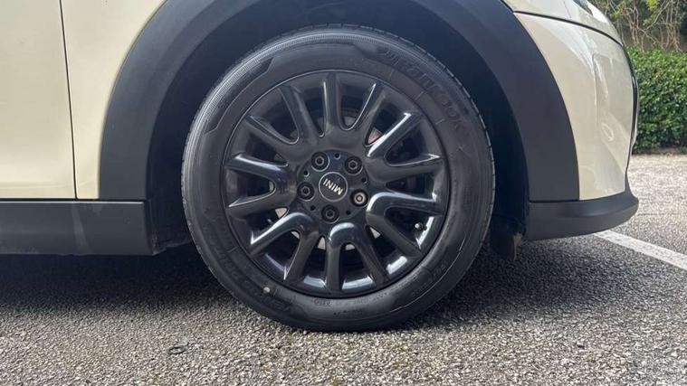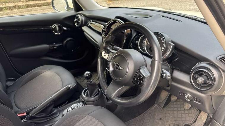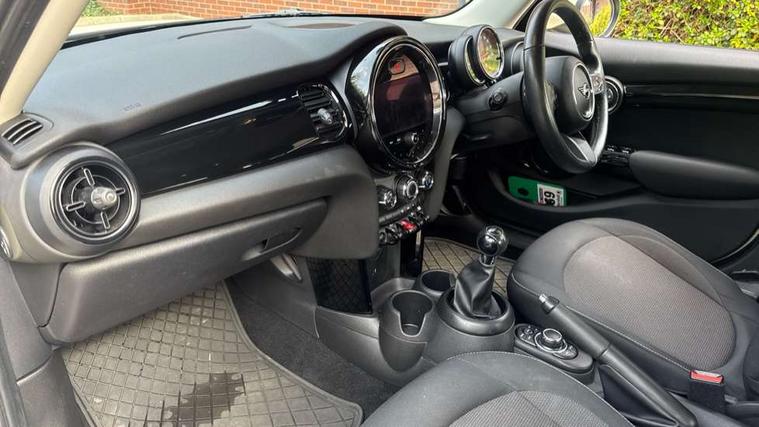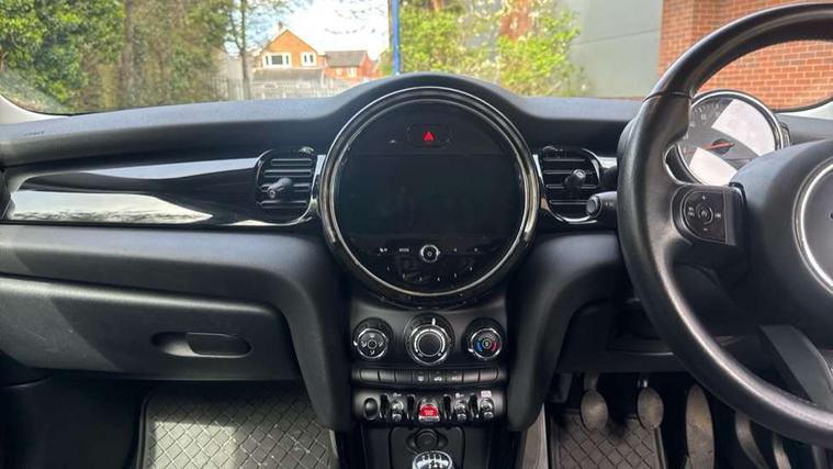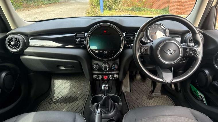 Automatic start/stop function with brake energy recuperation, Compatible mobile phone bluetooth with audio streaming, Cruise control with brake assist, Electro-mechanical speed dependant steering assistance, Flexible car sharing preparation, Instrument cluster, Mini E-call, MINI TeleServices, On board computer, Service interval indicator, 6 Speed manual transmission including gear change indicator display, Double Vanos system, Fully variable valve control, High precision injection, Performance Control, 6 speakers in front door trims and underneath front seats, 8.8" touchscreen with LED ring, FM tuner and DAB digital radio, Automatic headlight activation switch, Body colour fuel filler cap, Chrome border high gloss black slats radiator grille, Dynamic brake lights, Electric front+rear windows, Exhaust tailpipe on left with chrome finisher, Heated rear window, Heated windscreen washer jets, LED headlight with closed ring and daytime driving lights, Metal door sill strips with MINI imprint, Model logo Cooper on right of tailgate, Rain sensor window wipers, Rear fog lights, Rear LED lights with union jack design, Rear window wiper, Side scuttle panel with integrated indicator, Sun/heat protection glass, White indicator lenses, 12V Accessory socket in centre console, 4 lashing eyes in luggage compartment, 60/40 split folding rear seat, Ambient lighting, Carbon black colour line - Knee roll and door armrest, Chrome interior highlights, Cupholders, Front and rear head restraints, Front and rear isofix with front passenger airbag deactivation, Glove compartment, Height and length steering column adjustment, Interior lighting with 12 different colours across the dashboard, underneath door bezel with illuminated laser-engraved design on central display, Leatherette gearshift lever and handbrake gaiters, LED reading lights, vanity mirror lights, front foot well light and spotlight on front seats, Manual air conditioning, Mechanical seat adjustment - forward/back & backrest for front seats and driver seat height adjust, Multifunction steering wheel, Satellite grey headlining including grab handles and clothes hooks, Sport leather steering wheel with speed limiter and audio/communication controls, Storage compartments in doors, Sunvisors with vanity mirrors, Tool kit, Velour floor mats, 3 point seatbelts on all five seats, 6 Airbags - front, side, head and seat belt tensioners, Anti-lock braking system (ABS), DSC - Dynamic Stability Control, Front and rear disc brakes, Hill start assist, Single tone fanfare horn, Tyre pressure monitoring system, Alarm system with tilt sensor, monitoring doors, bonnet interior and tailgate, Electronic vehicle immobiliser, Start/stop toggle with keyless go, Piano black interior trim, Tyre repair kit,