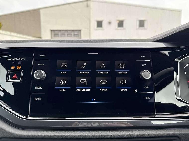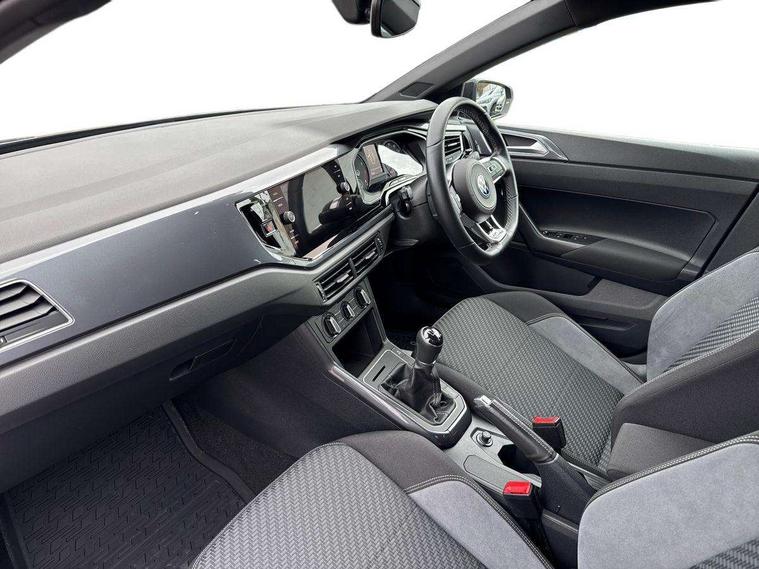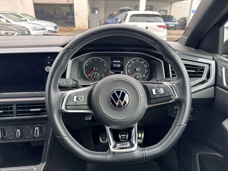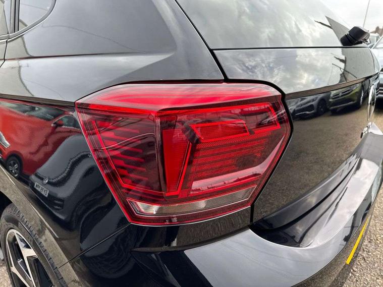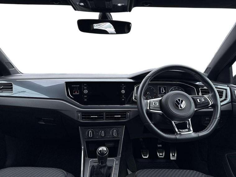 Digital clock, Driver alert system, Emergency call service, Lights on warning, Multifunction computer plus, Power assisted speed sensitive steering, Speedo and rev counter, electronic odometer, trip, service interval display and fuel gauge, Start/stop system, Volkswagen connect, Warning buzzer and light for front seatbelts unfastened, Wireless app connect, Battery regeneration during braking, Galvanished body, Diversity antenna for FM reception, Front and rear 6 speakers, Black grille with chrome surround, Body colour door handles, Body coloured side sills, Chrome trimmed strip on lower bumper, Electric front windows, Electrically adjustable and heated door mirrors with reverse activated kerb view adjustment on passenger's side, Front windscreen washers and wipers with 4 speed intermittent delay, Heated rear window with auto timer, High level 3rd brake light, LED darkened rear light clusters, LED daytime running lights, LED rear number plate lights, Left and right chrome effect trapezoid fascia exhaust tailpipe surrounds, Rear diffuser, Rear electric windows, Rear windscreen washer and wiper with interval delay, reverse activated, Unique R Line badging, 2 bag hooks in luggage compartment, 2 front cupholders and 12 V socket with cover, 3 rear head restraints, 60/40 split folding rear seat, Ambient lighting in front foorwell, front/rear door and dashboard light strips, Carbon flag cloth upholstery, Centre console storage with open storage compartment, Chrome-plated electric mirror adjustment switch surround, Chrome-plated electric window button surround, Driver and front passenger seat height adjustment, Driver and front passenger sunvisors with illuminated vanity mirrors, Dust/pollen filter, Folding rear seat backrest, Front + rear carpet mats, Front head restraints, Front seat backrest storage pockets, Front sport seats with lumbar adjustment and R line logo on seat backrest, Gear lever gaiter in black trim surround, Glovebox, Handbrake grip button in chrome effect, Height/reach adjustable steering column, Instrument lighting, adjustable panel illumination, Interior light with delay, Isofix Preparation 2 Rear child seats, Leather gear knob and handbrake grip, LED interior lighting - 2 reading lights front and rear with interior delay and dimming function, Luggage compartment cover, removable, Luggage compartment lighting, Luggage compartment with variable load floor, Stainless steel pedals, Storage compartment in front doors, Storage compartment in rear doors, Storage compartment under front seats, Three spoke leather trimmed multifunction steering wheel with aluminium inserts and R Line Logo, Titanium black roof lining and sun visors, Unique R Line door sill protectors, Light and sight pack - Polo, R Line styling pack - Polo, 3 point height adj front seatbelts + pretensioners, 3x3 point rear seatbelts, ABS, Automatic post collision braking, Driver/front passenger airbag, Drivers and front passengers safety optimised head restraints, ESP with EDL + ASR, Front and rear passenger curtain airbags, Front passenger airbag deactivation, Front seat side impact airbags, Front/rear disc brakes, Hill hold control, Hydraulic Brake Assist (HBA), Single tone horn, Tyre pressure monitoring system, Alarm with interior protection and deactivation via infotainment system, Electronic engine immobiliser, Remote central locking with 2 remote folding keys, Chrome plated air vent surround, Chrome plated instrument surrounds, Shadow steel decorative inserts,