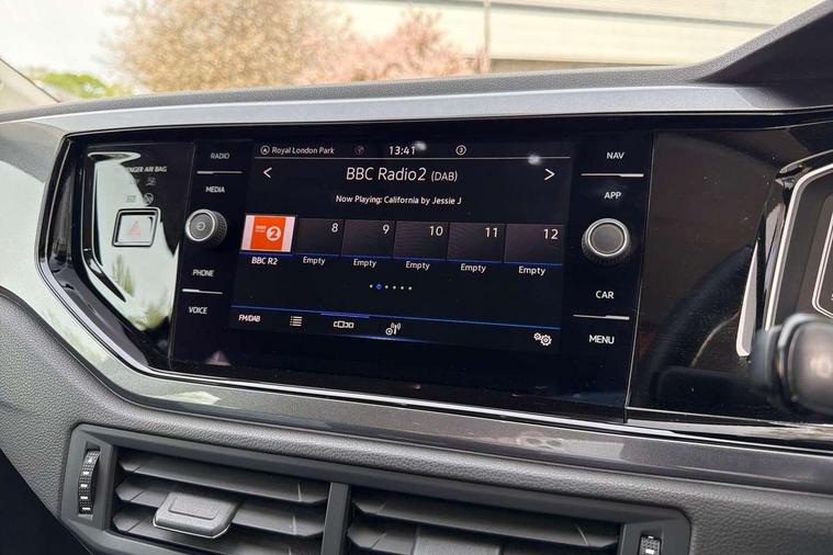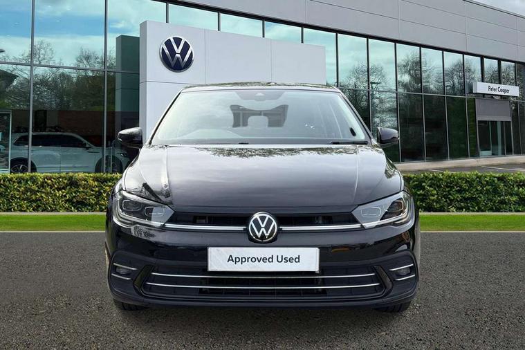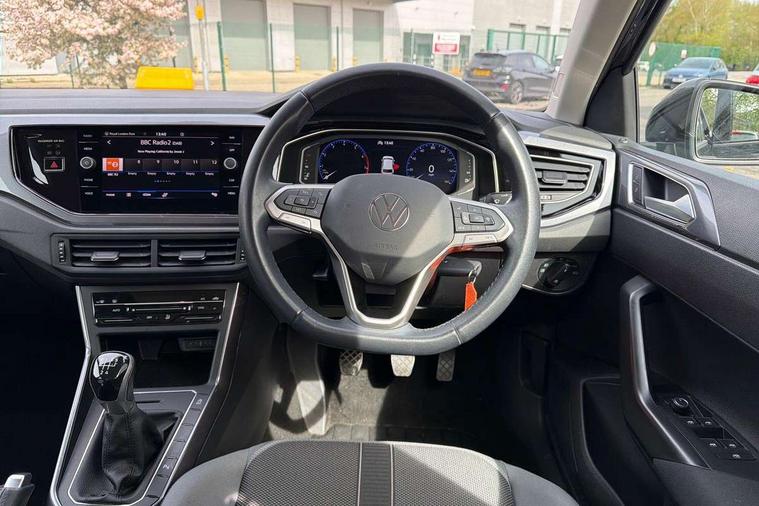 Adaptive cruise control without follow-to-stop and speed limiter, Bluetooth mobile phone interface, Digital Cockpit Pro with 10.25" Display, Driver alert system, Dynamic road sign display, Emergency call service, Power assisted speed sensitive steering, Preparation for We connect and We connect plus, Speedo and rev counter, electronic odometer, trip, service interval display and fuel gauge, Standard rear axle, Travel Assist - Lane keeping system and traffic jam assist, Travel assist including emergency assist, Trip computer, Warning signal and warning light for front and rear seatbelts not fastened, Washer fluid level indicator, Wireless app connect, Front wheel drive, Rear shock absorpion, Start-stop system with battery regeneration (recuperation - energy recovery during braking), DAB Digital radio, Diversity antenna for FM reception, Front and rear 6 speakers, Automatic dimming interior rear view mirror, Automatic headlights, Body colour door handles, Body coloured bumpers and radiator grille with chrome trims, Electric front windows, Heat insulating darkened glass in side and rear windows, Heat insulating glass windscreen, LED separate daytime running lights with coming/leaving home function, Power folding adjustable/heated exterior mirrors and front passenger exterior mirror lowering function, Rain sensor, Rear electric windows, Rear fog light, Rear side wing doors, Rear windscreen washer and wiper with interval delay, Third brake light, 12V power socket in centre console, 2 USB-C ports in the front, 2 USB-C charging sockets on the center console in the rear, 3 rear head restraints, 60/40 split folding rear seat and rear seat bench not split, Air care climatronic air conditoning system with active combination filter and 2-zone temperature control, Ambient lighting, Ceramique headliner, Chrome plated radiator grille inserts, air vent surrounds and light switch surrounds, Door and side trim panel, Driver and front passenger seat height adjustment, Driver/passenger sunvisors with illuminated vanity mirrors, Front + rear carpet mats, Front centre armrest, Front footwell illumination, Front seat backrest storage pockets, Front sports comfort seats, Handbrake lever handle in leather, Isofix child seat preparation easy-fit (for two outer rear seats, and front passenger seat) compatible with I-size, Leather trimmed gear knob, LED interior light with switch off delay and dimmer, 2 reading lights front and rear, Luggage compartment cover, Luggage compartment floor, Luggage compartment lighting, Lumbar adjustment for front seats, Multifunction steering wheel, Single front passenger seat, Standard pedal cluster, IQ LED matrix headlights pack - Polo, Light and vision pack - Polo, 3 point height adj front seatbelts + pretensioners, 3x3 point rear seatbelts, ABS, Driver and front passenger airbag with front passenger airbag deactivation, Drivers and front passengers safety optimised head restraints, ESC (Electronic stability control) + EDL (Electronic Differntial lock) and ASR (Traction control), Extended and predictive pedestrian/ cyclist protection, Front curtain and side airbags with center airbag, Front disc brakes, Hill hold control, Manual child lock in rear doors, Rear drum brakes, Single tone horn, Tyre pressure loss indicator, Alarm with interior protection, Anti-theft alarm system with interior monitoring, backup horn, and towing protection, Anti-theft wheel bolts, Electronic engine immobiliser, Chrome applications on rotary light, mirror adjustment, window regulator switches, outlet with frame in black, Deep iron gloss decorative inserts in dash and front door panels, Low rolling resistance tyres,