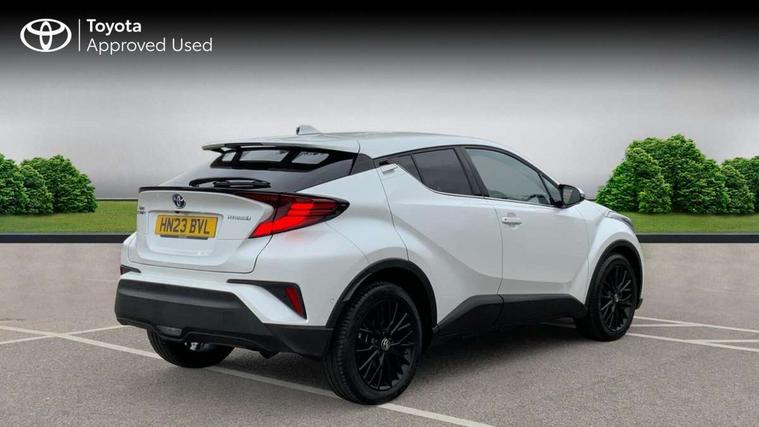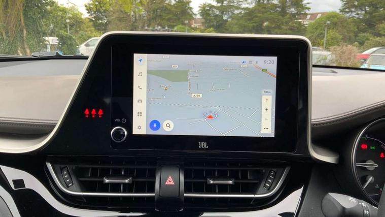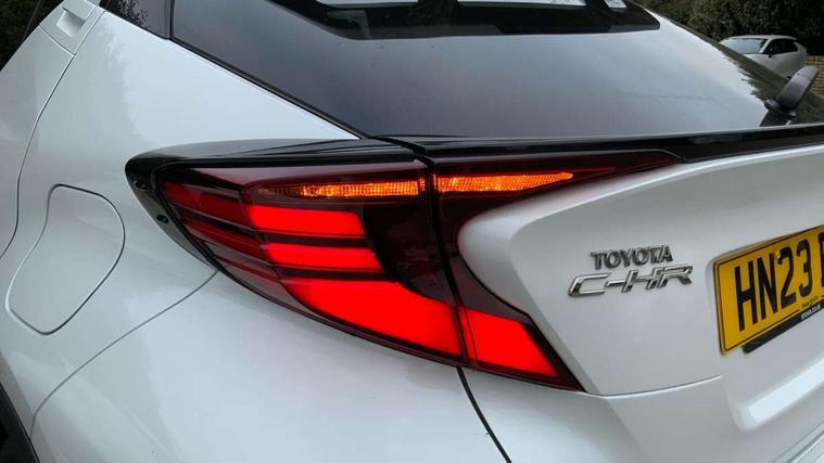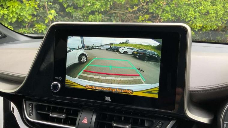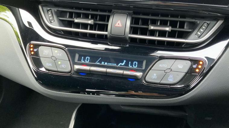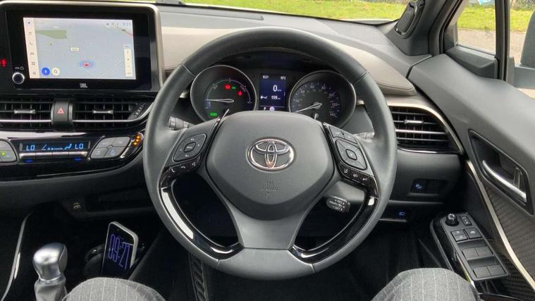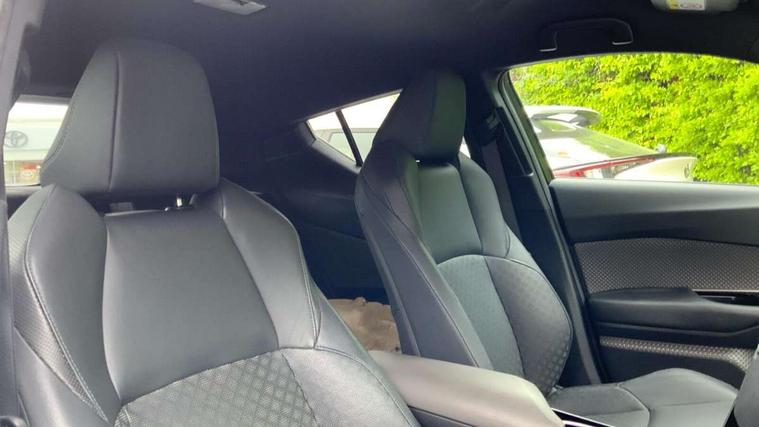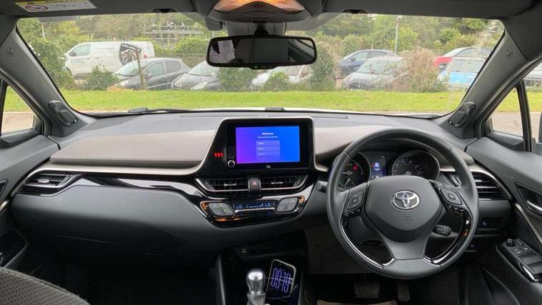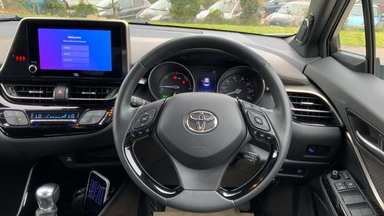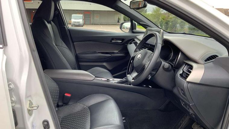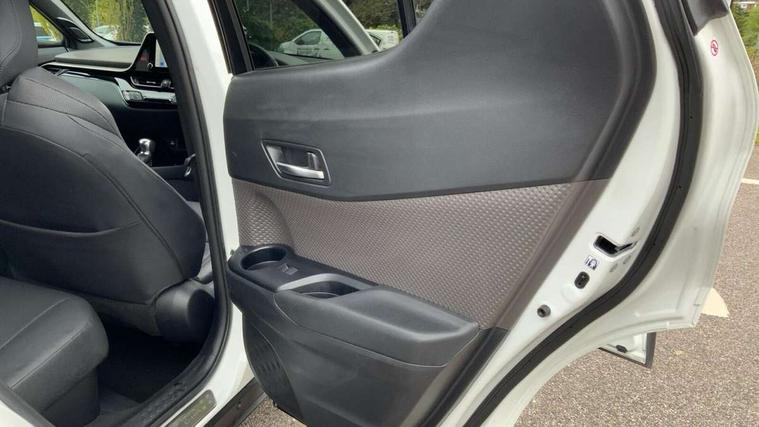 4.2" coloured TFT screen for multi-information display, Adaptive cruise control, Apple car play and Android auto, Bluetooth connectivity, E-call, Electric power steering, Hybrid system indicator, Lane departure alert with steering control, Lane trace assist, Push button tailgate release, Remote boot door release in cabin, Remote boot door release in key, Reversing camera, Road sign assist - RSA, Simple Intelligent parking assist, Smart voice assist, Touch 2 Go navigation system, Trip computer, Voice recognition, Wireless smartphone integration, Vehicle Stability Control (VSC), 6 speakers, AM/FM radio, DAB Radio (Digital Audio Broadcasting), Toyota touch 2 multimedia system with 8" display, USB connector, Wi-fi connectivity, Adaptive front light system, Adaptive LED Headlights, Anti-jam protection on power windows, Auto high beam, Auto up and down function on all power windows, Automatic headlight levelling, Automatic headlights, Automatic headlights cut-off, Black and body coloured rear bumper, Black lower front grille, Black upper front grille, Body colour door handles, Body colour door mirrors, Body colour front spoiler lip, Body coloured front bumper, Boot door release with push button, Electric heated door mirrors, Follow me home headlights, Front and rear power windows, Headlight cut off reminder, Honeycomb lower front grille, LED daytime running lights, LED fog lights, LED front light guide, LED High mounted stop light, LED rear brake lights, LED rear combination lights, Noise reduction layer on front windows and windscreen, Power adjustable door mirrors, Privacy glass, Rain sensor, Rear sequential indicators, Rear side wing doors, Rear spoiler, Rear tailgate, Rear window defogger, Rear window wiper, Shark fin antenna, UV-filter on driver and passenger windows, UV-filter on rear windows, Variable front intermittent wipers, 12v power outlet - front, 3 rear headrests, 3 seat bench in 2nd row, 3 spoke leather steering wheel, 60/40 split folding 2nd row rear seats, Adjustable rear headrests, Adjustable speed limiter switch on steering wheel, Assist grips front and centre pillar, Audio and telephone switches on steering wheel, Black front door assist grips, Blue ambient lighting on front cup holders, Blue ambient lighting on front doors, Boot light, Chrome interior door handles, Driver and front passenger personal light, Driver and front passenger Whiplash Injury Lessening seats, Driver and passenger seatback pockets, Dual zone automatic air conditioning, Floor mats, Front cupholders, Front head restraints, Front sports seats, Glovebox with internal light, Hard tonneau cover, Heated driver and front passenger seats, Heated steering wheel, Hooks for luggage holding net, Humidifying Nanoe air purifier, Illuminated entry system, Isofix attachments on outer rear seats, Leather gearshift, Light on driver sun visor, Light on passenger sun visor, Manual telescopic steering wheel, Manual tilt steering wheel, Microphone on front personal light, Mirror on driver sun visor, Mirror on passenger sun visor, Multimedia switches on steering wheel, Pollen filter, Power adjustable lumbar support on driver seat, Power tilting cushion on driver seat, Shopping bag hooks, Single front passenger seat, Slow opening on lower glovebox, Voice recognition switch on steering wheel, Leather pack - C-HR, Tech with parking sensor pack - C-HR, 16 Disk front wheel brake, 3x3 point rear seatbelts, ABS+EBD+Brake assist, Electronic parking brake, Front and rear seatbelt reminder, Front passenger airbag on/off switch, Hill start assist control (HAC), Pre collision system with pedestrian detection, Pre-tensioners and force limiters, Rear door child safety locks, SRS Airbags - Driver + Front passenger, front side, front and rear curtain and driver's knee airbags, Toyota safety sense, Tyre pressure monitoring system, Tyre pressure warning system, Acoustic vehicle alert system (AVAS), Glass-breaking alarm sensors, Immobiliser, Intrusion alarm, Intrusion sensor, Motion sensor alarm, Power door locks, Power passenger window lock, Remote central locking, Black lower dashboard, Dark brown upper dashboard, Piano black console, Silver deco line on upper dashboard, Tyre repair kit,