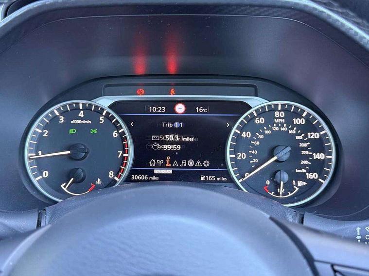 Alarm, Immobiliser, Intelligent Key with push button starter, Remote central locking, 6 speakers, Bluetooth system, USB, Aux-in and 12V socket, DAB Digital radio, Rear console USB port, ABS with EBD and brake assist, Active ride control, Active Trace Control, Driver and passenger airbags, Driver and passenger side airbags, Electric handbrake with auto hold function, Electronic Stability Programme (ESP), Front and rear curtain airbags, Height adjustable seatbelts, Hill start assist, Intelligent emergency braking with pedestrian and cyclist recognition, Seatbelt reminder for driver/front passenger and rear seats, Single tone horn, Three 3 point rear seatbelts, Traction control, Tyre pressure monitoring system, VDC Dynamic Vehicle Control, Ventilated rear brake discs, Auto dimming interior rear view mirror, Automatic hazard signal with emergency stop signal, Body colour bumpers, Body colour door handles, Electrically adjustable door mirrors with integrated indicators, Follow me home headlights, Front and rear electric window with one touch driver window, Heated and auto folding door mirrors, High beam assist, LED daytime running lights, LED headlamps, LED rear fog lamp, LED rear lamps, Rain sensor windscreen wipers, Rear privacy glass, Rear spoiler, Rear wiper, Three blink turn signal, 3 height adjustable rear headrests, 60/40 split folding rear seat, Automatic climate control, Card holder on driver sunvisor, Cloth upholstery, Driver and passenger sliding and reclining seats, Driver side rear coat hanger, Driver/passenger sunvisors and vanity mirrors, Front and rear cabin lighting, Front armrest, Front door pockets with bottle holders, Front head restraints, Front/rear passenger grab handles, Grey synthetic leather kneepad, Height adjustable driver's seat, Internal chrome door handles, Leather gearshift knob, Leather steering wheel, Luggage board, Luggage space lighting, Monoform sporty seats, Multifunction steering wheel, Rear door bottle holders, Telescopic steering wheel adjustment, Two cupholders in front centre console, Two rear isofix child seat anchorage points with top tether, Voice recognition switch on steering wheel, Welcome light and console tray ambient lighting, 7" full colour TFT screen combimeter, 8" infotainment colour display with touch screen, Apple CarPlay and Google Android auto, Drive modes select (Eco, normal and sport), Emergency and breakdown call, Front parking sensor, Idle start/stop system, Intelligent lane intervention, Lane departure warning system, Nissan connect nav with TomTom traffic, Nissan connect services and Wifi connection, Outside temperature sensor, Power Steering, Rear parking sensor, Traffic sign recognition, Trip computer, Gasoline particulate filter,