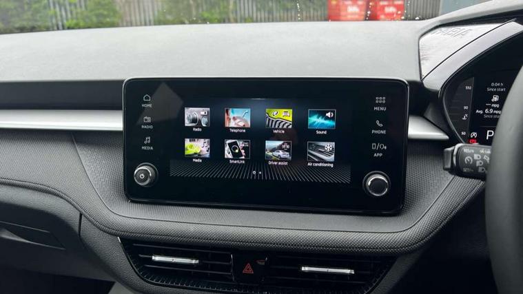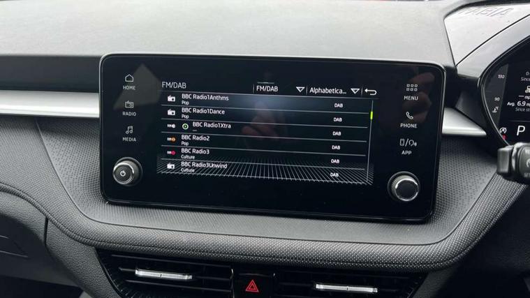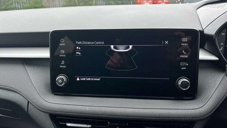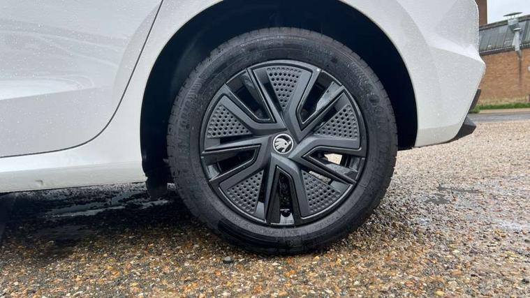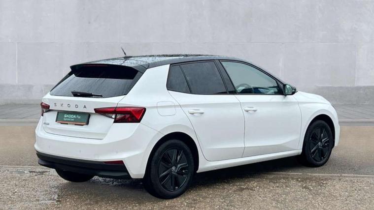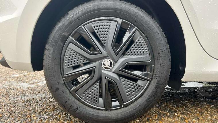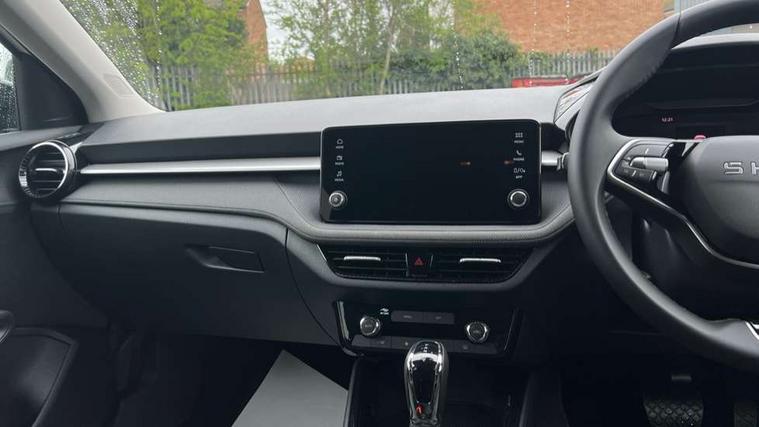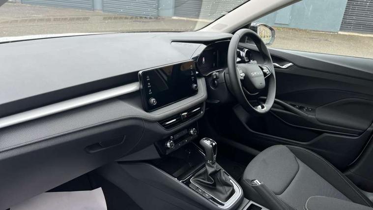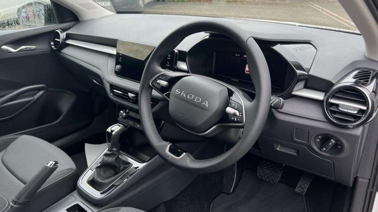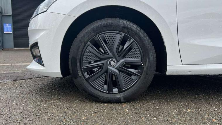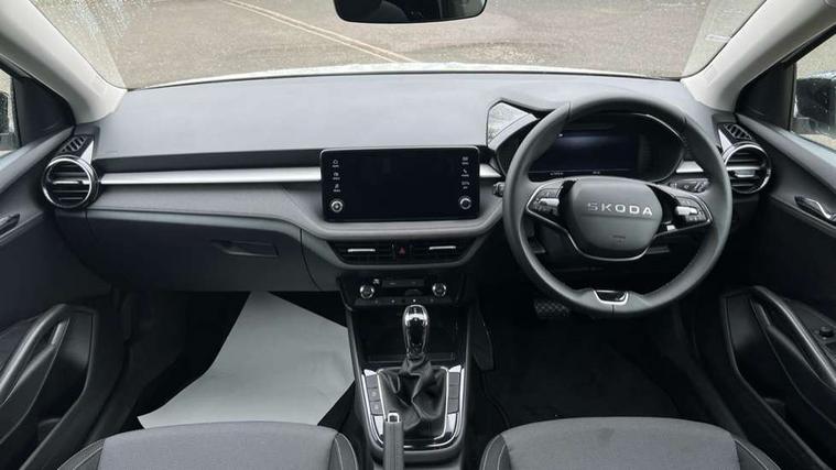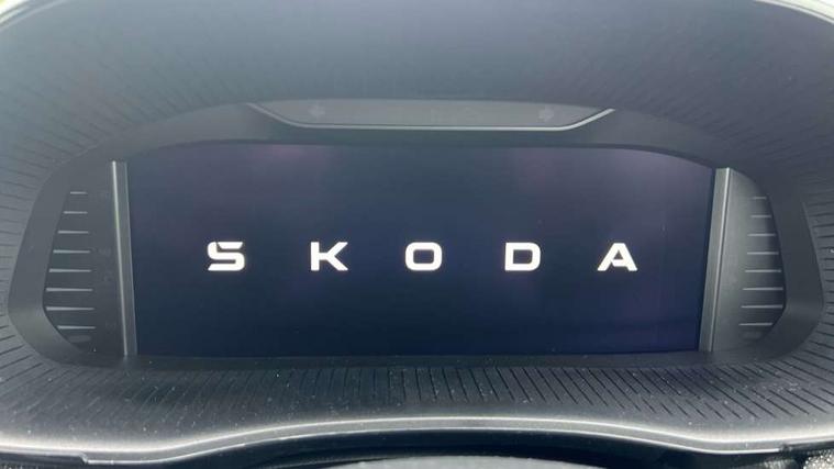 Advanced driver attention and drowsiness monitor, Bluetooth connection, Driver alert system, Electromechanical power steering, Exterior temperature gauge, Service interval indicator, Traffic sign recognition, Virtual cockpit with 10.25" colour display, Wireless SmartLink for Apple CarPlay and Android Auto, 6 Speakers (4 in front and 2 in rear), Auxiliary socket for external MP3 player, DAB digital radio reception, Auto dimming rear view mirror, Body coloured bumpers, Door mirror integrated indicators, Front and rear electric windows, Front window wiper intermittent control, Headlight range control - Automatic, Ice scraper in fuel cap, LED 3rd brake light, LED daytime running lights with coming and leaving home feature, LED rear lights, Privacy glass, Rear LED fog light, Rear side wing doors, Rear window wiper with washing nozzles, Roof mounted spoiler, SKODA tailgate lettering in chrome, Unique dark chrome design logo on alloy wheels, 2 reading lights in front and 2 reading lights in rear, 3 rear headrests, Backrest split and folding, Central console with removable cup holder and storage box, Chrome handbrake release button, Dual zone air conditioning with climatronic electronic control, Fabric upholstery, Front centre armrest, Gearshift knob/handle in leather, Grain satin black interior door handles, Hand brake lever handle in leather, Height adjustable front headrests, Height adjustable front seats, Height adjustable steering wheel, ISOFIX and TopTether anchorage points to the outer rear seats, ISOFIX and TopTether on the front passenger seat, Luggage compartment lighting, Manually adjustable lumbar support in front seats, Pollen filter, Rear seat bench unsplit, Single front passenger seat, Skoda lettering on steering wheel, Storm grey headlining, Sun visors with mirror and airbag label on passenger side, Textile floor mats, Ticket holder, Ambient lighting pack - Fabia Hatchback, 3-point height adjustable front seats belts with pretensioner and force limiter, Automatic warning lights in case of crash, Driver and passengers airbag with switch off function, e-Call+, ESC including ABS, MSR, ASR, EDS, HBA and XDS, Front and rear seat belt warning, FRONT ASSIST (AEB City and AEB Inter Urban), Front side airbags, Head airbags, Hill hold control, One tone horn, Pedestrian protection, Three rear 3-points safety seat belts with pretensioner and force limiter including stop function for outer rear seat belts, Tyre pressure monitoring system, Anti-theft alarm system including immobiliser, interior monitoring, backup horn, and towing protection, Central locking with radio remote control, interior controls, SAFE function and 2 foldable keys, Colour Edition air vents, Grain satin black central console cover, Metallic grey upper decorative trim, Satin black door and side trim panel in front, Textile Kota grey lower decorative inserts, Anti-theft wheel bolts protection, Super-low rolling resistance tyres,