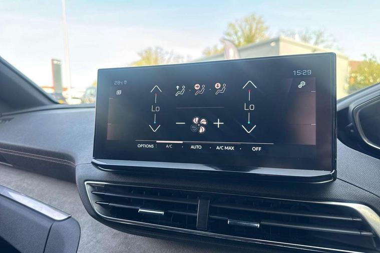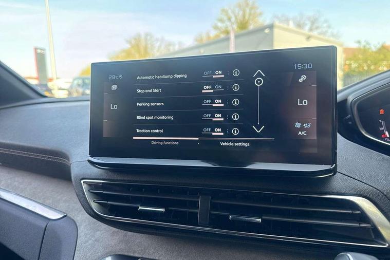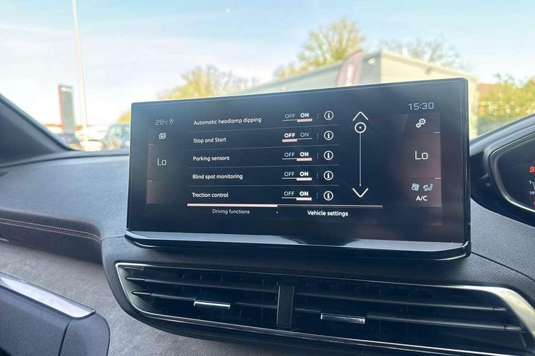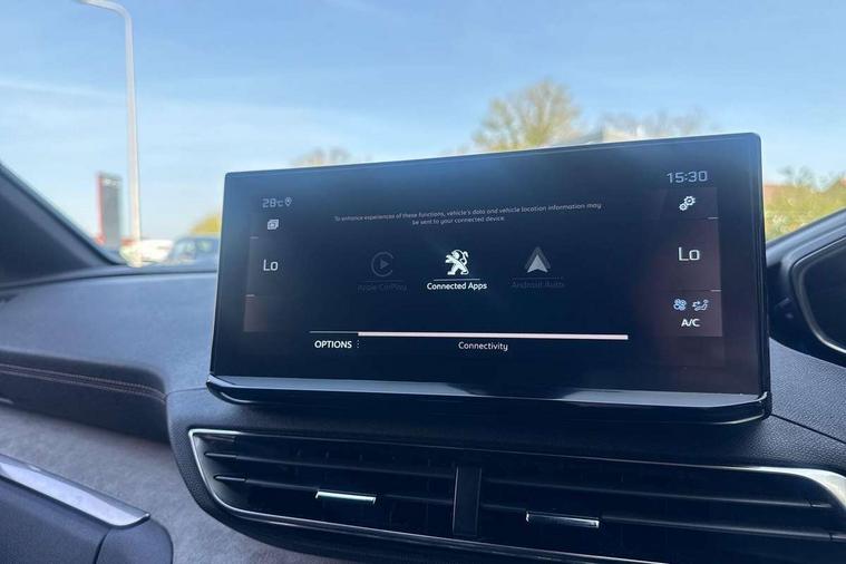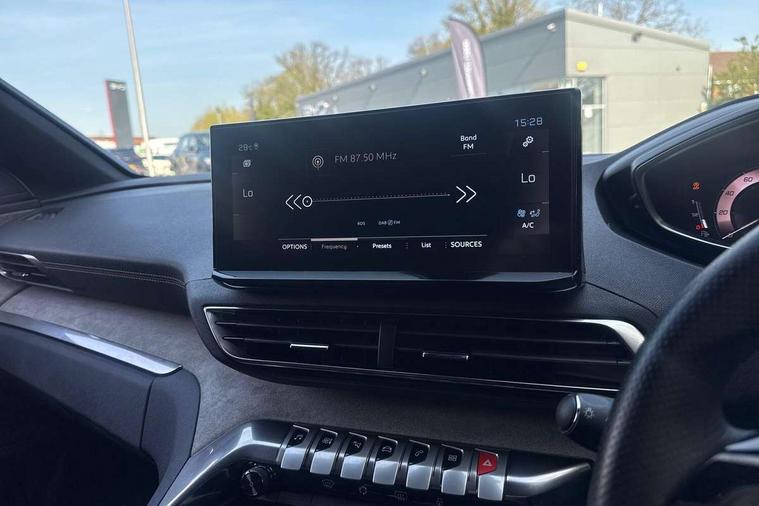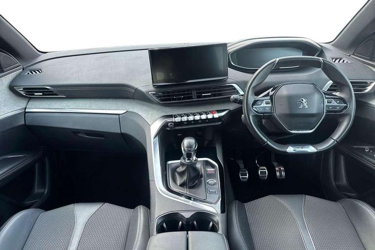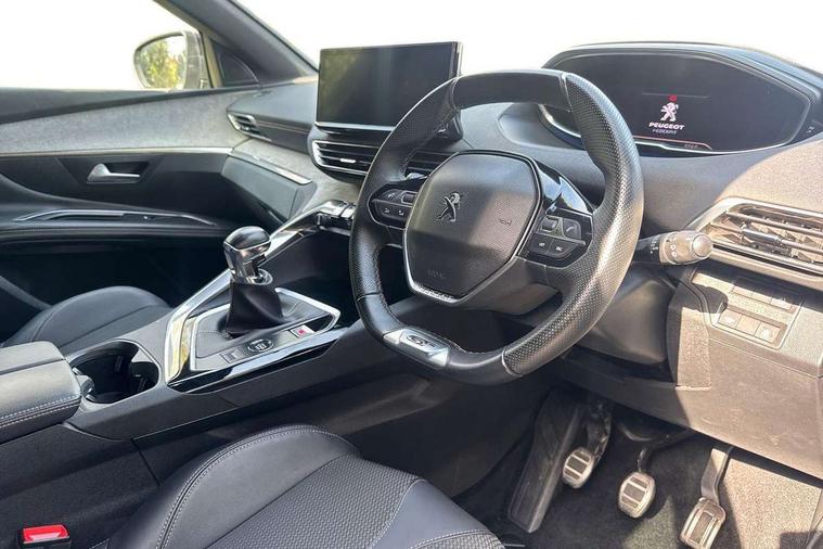 180 degree colour reversing camera, 3D connected navigation with 10" HD touchscreen, Bluetooth telephone facility, Drive modes select (Eco, normal and sport), Driving Time Warning (DAA1), Emergency services call system, Extended traffic sign recognition, Exterior temperature indicator with ice warning, Mirror screen with mirror link, apple carplay and android auto, Multi function trip computer, PEUGEOT i-Cockpit with 10" high definition capacitive touchscreen, Peugeot i-cockpit with compact multi-function sports steering wheel, PEUGEOT i-Cockpit with configurable 12.3" Head-up digital instrument panel, PEUGEOT SOS and assistance, Rear passenger USB charging sockets (x2) (type A), Speed limit recognition and recommendation, Voice recognition, Dynamic stability control and electronic anti-skid system, Stop/start function, DAB Digital radio, USB socket, Auto self levelling headlights, Automatic hazard light activation upon heavy brake application, Automatic triggered rear windscreen wiper in reverse gear, Black with chrome detailed front wing trim, Body colour door handles, Body colour rear roof spoiler with stainless steel edging trim, Body protectors (bottom of front and rear bumpers + wheel arches + protection at bottom of doors) in black, Dark tinted rear side windows + tailgate window, Diamond Black door mirror shells, Door mirror mounted LED courtesy floor lighting, Electric folding door mirrors with exterior courtesy LED lighting, Electric operated/heated door mirrors, Fog Mode, Front windscreen wiper with magic wash cleaning system, Full LED headlights with LED fog lights with static cornering function, Gloss black B and C pillar and aerodynamic deflector trim, Gloss black front bumper air scoops, Gloss black rear cluster connecting strip, Gloss black windscreen trim, GT emblem in satin copper (front wings and tailgate), Headlights left on audible warning, Heated rear windscreen with integrated antenna, LED daytime running lights, LED front indicator, LED rear number plate lighting, LED side indicator lights integrated into door mirrors, LED third brake light, One touch electric front/rear windows with pinch protection, Rear LED Peugeot signature 'Claw Effect' lights, Rear side wing doors, Stainless steel roof arches, Twin exhaust tailpipe, 1/3 to 2/3 split folding rear seats, 12V Sockets in dashboard, rear cabin and load area, 2 cupholders in front centre console, 2 cupholders in rear armrest, 2 x Rear reading spotlights, 2x Rear coat hooks, 3x Isofix child seat fittings in the front passenger and outer rear seats, 4 Grab handles retractable and damped, Aikinite stitching in armrest, gear lever and dashboard facia, Aluminium pedals, Blue ambient lighting for connecting zone, Blue ambient lighting to front door panels, central storage and cupholders, Blue ambient lighting to headup instrument panel, Centre front armrest with butterfly wing opening and illuminated storage compartment, Driver seat manual adjustment (longitudinal and back rest angle), Dual zone automatic climate control, Electric power steering with reach and rake adjustable steering column, Flocked front door pocket interior with blue ambient lighting, Flocked glovebox interior, Foldable front passenger seat with picnic table, Footwell illumination, Front interior light with 2 reading spotlights and rear interior light with timer, Front passenger seat manual adjustment (longitudinal and back rest angle), Front seat back map pockets, Gear shift indicator, Illuminated glovebox, Individual left and right controls in boot for seat folding, LED interior lighting in storage spaces and load area, LED roof interior lighting, Mistral floor mats with Aikinite contrast stitching, Mistral full grain perforated leather steering wheel with aikinite stitch detail and satin chrome 'GT' emblem, Rear bench seat with central armrest and ski hatch, Rear centre console ventilation system, Roof lining - Mistral black, Satin chrome dashboard trim, Satin chrome digital instrument panel and touchscreen trim, Satin chrome front door panel recess trim, Satin chrome interior door handles, Satin chrome scorpion's tail and toggle switch trim, Seatbelt not fastened audible and visual alert for front seats, Seatbelt unfastened on the move audible and visual alert for front and rear seats, Sunvisors with illuminated vanity mirrors, Two position boot floor, Drive assist pack - 3008, Driver sport pack - 3008, Safety plus pack with high beam assist - 3008, Visibility pack - 3008, 3x Rear three-point retractable seatbelts with force limiters in the outer rear seats, ABS (Anti-lock Braking System) with EBD (Electronic Brakeforce Distribution) and EBA (Emergency Braking Assistance), Adaptive driver and front passenger airbags with passenger airbag deactivation function, Driver and front passenger side airbags, Electric child locking functionality on rear windows and doors, Electric parking brake, Front and rear curtain airbags, Front optimised safety headrests and 3 x rear retractable headrests with height adjustable, Front three point retractable seatbelts with pre tensioners and force limiters, Front ventilated disc brakes and rear disc brakes, Hill start assist, Two tone horn, Automatic door locking when moving off, Electronic immobiliser, key operated exterior door lock from the left hand door, Perimetric and volumetric alarm with lift and tilt sensor, Peugeot Open and Go System, Remote control central locking with two plip keys, Puncture repair kit including compressor, sealant cartridge and towing eye,