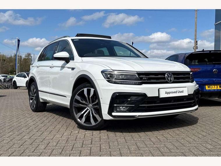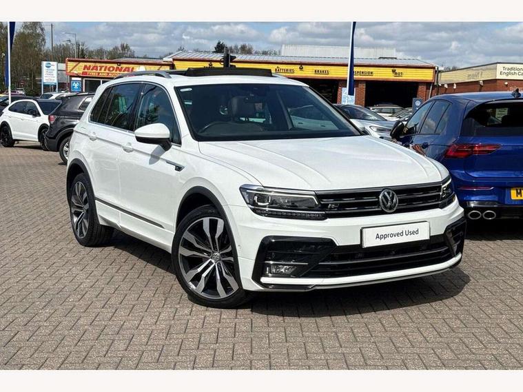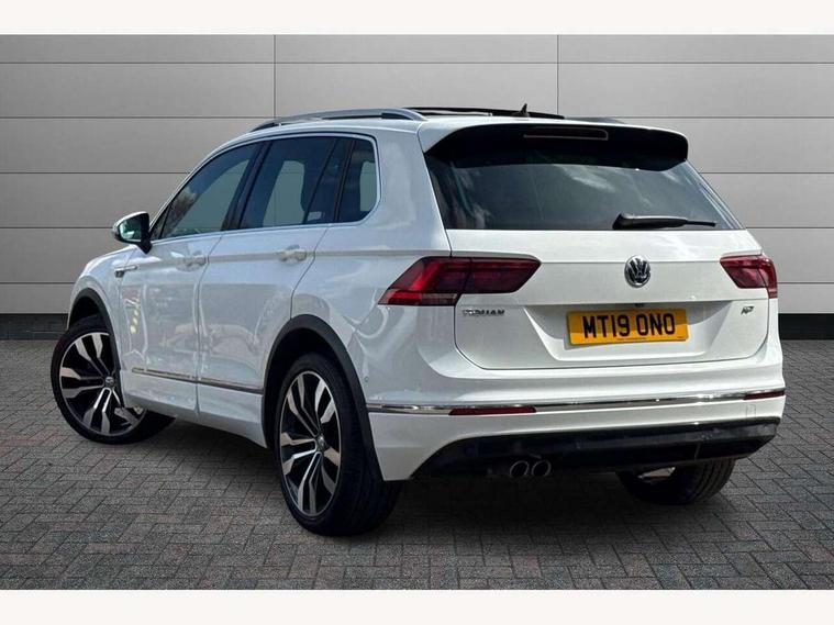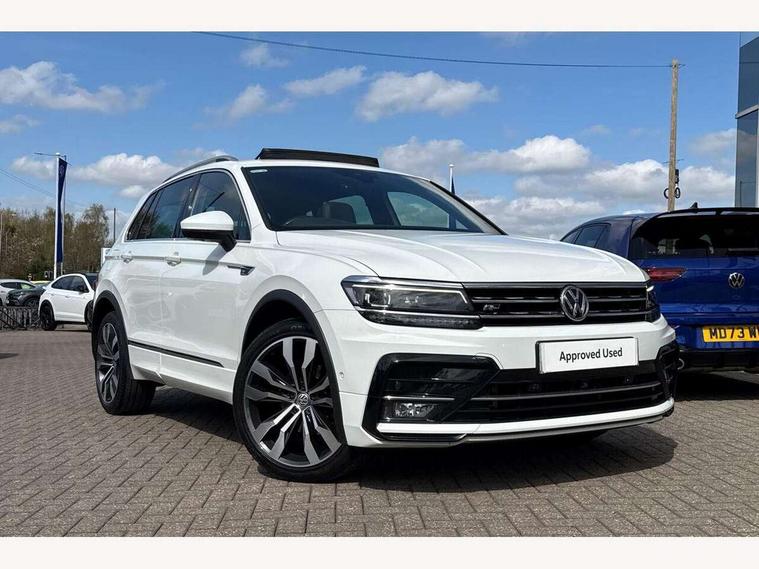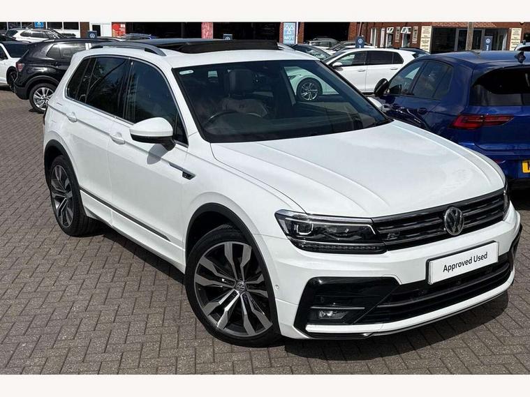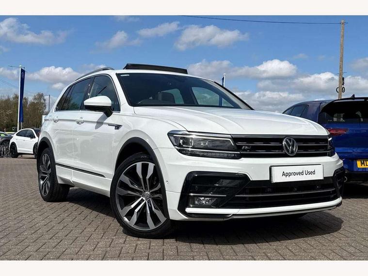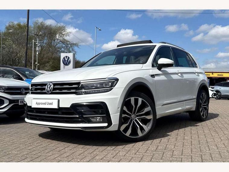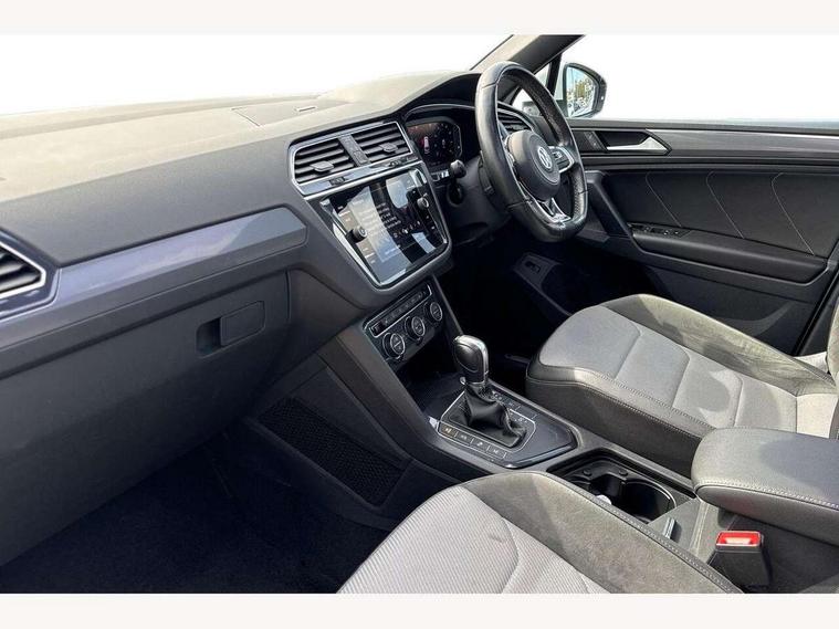Active information display, Adaptive cruise control, App-Connect, Bluetooth phone integration system, Distance control assist, Driver profile selection, Fatigue detection system, Front assist, radar sensor controlled distance monitor, city emergency braking + predictive pedestrian protection, Instrument cluster, Lane assist, Low washer fluid warning light, Multifunction colour display, Outside temperature display, Progressive power assisted steering, Service interval indicator, Speed limiter, Warning lights, XDS electronic differential lock, 2x USB sockets in front, DAB Digital radio, MP3 compatible single CD player, SD card slot, 3D effect LED rear lights, Auto dimming interior mirror, Automatic activation of hazard warning lights, Body colour door handles, Body colour door mirrors, Body colour rear spoiler, Body colour side skirt, Body coloured bumpers, Chrome side window surrounds, Chrome trimmed radiator grille, Coming/leaving home lighting function, Dusk sensor + auto driving lights, Electric folding door mirrors, Electric heated + adjustable door mirrors, Electric panoramic sunroof with sunblind, Front and rear electric windows, Heated rear window, LED headlights with dynamic light assist daytime running lights and cornering front fog lights, LED rear lights, Piano black rear diffuser, R Line body kit, R Line side sills, Rain sensor windscreen wipers, Rear windscreen washer and wiper with interval delay, Side skirts and rear bumper with chrome insert, Silver roof rails, Silver under body guard, Tinted windows (B pillar backwards), Windscreen wipers/ intermittent wipe + 4 position delay, 12V Accessory socket in centre console, 3 rear headrests, 3 zone climate control, 4 load lashing points, 40:20:40 split folding rear seats, Bag hook in luggage compartment, Black headlining, Driver + front passenger lumbar support, Foldable passenger seatback, Front + rear carpet mats, Front centre armrest with 12v socket, Front centre armrest with storage + rear 2 air vents + cupholders, Front seatback folding tables, Height/reach adjust steering wheel, Illuminated driver/passenger vanity mirrors, Illuminated scuff plates, Instrument lighting white adjustable panel illumination, Interior light with delay, Isofix Preparation 2 Rear child seats, Leather gear knob, Leather multifunction steering wheel with tiptronic control, Load through provision with 2 cupholders when folded, Lockable cooled glovebox, Luggage compartment lighting, Luggage compartment side storage, Map pockets on front seats, Passenger seat height adjuster, Rear cupholders, Removable luggage cover, Sliding/reclining rear seats, Stainless steel pedals, Storage compartment in driver's door, Storage compartment in passenger's door, Storage compartment in rear doors, Storage tray on dashboard, Sunglasses storage, Unique R Line door sill protectors, Variable boot floor, Ambient lighting pack - Tiguan, 3 rear 3 point seatbelts, ABS+EBD+Brake assist, Active bonnet, Active pedestrian safety system, Curtain airbags, Driver/Front Passenger airbags, Driver/Passenger whiplash optimised head restraints, Drivers knee airbag, DTC - Drag torque control, Electronic parking brake with auto hold, ESP with EDL + ASR, First aid kit, Front and rear brake disc, Front assist including city emergency braking, Front side airbags, Front ventilated brake discs, Head airbag system, Height adjustable front 3 point seatbelts + pretensioners, Hill hold control, Passenger airbag deactivate switch, Passenger knee airbag, Pre crash system, Rear side airbags, Seatbelt warning lamp and buzzer, Two tone horn, Warning triangle, Alarm with interior protection, Electronic engine immobiliser, Remote central locking with 2 remote folding keys, Aluminium decorative inserts, Chrome door trim inserts, 20" Suzuka alloy wheels + anti theft wheel bolts, Steel space saver spare wheel,