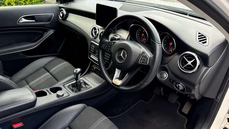 8" colour display screen, Attention assist, Coolant level warning indicator, Cruise control + speed limiter, DYNAMIC SELECT with a choice of driving modes (ECO, Comfort, Sport, Sport+ and Individual), Instrument cluster, Low fuel level warning light, Mercedes connect me, Multi function trip computer, Oil level warning, Outside temperature gauge, Reversing camera, Service indicator (ASSYST), Smartphone integration with Apple CarPlay, Speed sensitive power steering, Stop/start system, Washer fluid reminder, Comfort suspension, 6 speakers, Bluetooth connectivity including audio streaming, Media interface, Mercedes Audio 20 radio/single CD, SD card slot, USB port, Adaptive brake lights, Automatic headlamp activation, Body colour door handles, Electric front windows, Electric heated + adjustable door mirrors, Front fog lights, Gloss black bumper inserts, Heated rear window with timer, Heated windscreen wash system, High gloss black front splitter, High gloss black rear apron, High gloss black roof rails, LED Headlights, LED tail lights, LED third brake light, Radiator grille with 2 louvres in Silver with chrome trim, Rain sensor windscreen wipers, Rear privacy glass, Rear windscreen wiper with auto activation when reversing, Roof mounted radio aerial, Roof spoiler, Twin chrome exhaust tailpipes, 1/3 to 2/3 split folding rear seats, 12V power socket in centre console, 12V socket in luggage compartment, 3 spoke multifunction nappa leather steering wheel, Air conditioning, Ambient lighting in front headrests, Artico man-made leather upholstery, Auto Mercedes-Benz child seat recognition sensor, Centre console storage, Centre console with cupholders, Courtesy light in boot, Footwell lights, Front centre armrest with storage compartment, Front seat cushion length adjustment, Grey headlining, Height adjustable front seats, Height/reach adjustable steering column, Illuminated door sills, Illuminated glovebox, Integrated head restraints, Interior door handle illumination, Isofix rear child seat preparation, Luggage compartment cover, Luggage compartment lighting, Rear Reading Lamps, Sports seats, Sunvisors with illuminated vanity mirrors, 3 rear 3 point seatbelts, ABS with Brake Assist, Active bonnet, Adaptive brake system, Black seat belts, Child proof door locks, Crash responsive emergency lighting, Drivers knee airbag, Electronic parking brake, ESP with ASR, Front and rear seatbelt reminder, Front passenger seat occupancy sensor, Front side airbags, Hill start assist, Tyre pressure monitoring system, Warning triangle and first aid kit, Window airbags, Alarm system/interior protection/immobiliser, Chrome surround in electric key, Keyless start, Remote central locking, Chrome air vent surrounds, Sail pattern dash trim, 18" 5 twin spoke alloy wheels in high sheen finish, Tirefit sealant with electric air pump,