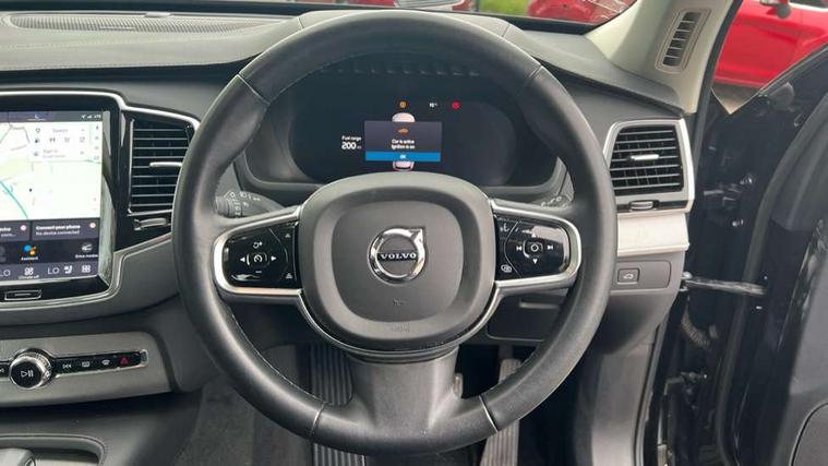 12.3" Progressive Driver Display, 360 degree surround view parking camera with side proximity sensors, 9" centre console portrait touch screen, Adjustable steering wheel force, Bluetooth hands free telephone connection, Driver alert control with lane keeping aid, Driver assistance (pilot assist and adaptive cruise control), Driver awareness - Blind spot information system with steer assist, cross traffic alert with autobrake and rear collision warning and mitigation, Emergency call service, Front and rear park assist, Google Automotive Services - Navigation with Voice recoginition and google assistant, Handsfree power tailgate opening and closing, Oncoming Lane Mitigation, Power operated tailgate, Service interval indicator, Speed limiter, Speed sensitive steering, Trip computer, Volvo on call, Wireless Mobile Phone Charger, 8 speed automatic transmission with start/stop + manual change functions, Touring chassis, DAB Radio (Digital Audio Broadcasting), Premium Sound by Harman Kardon, dirac unison, dolby pro logic II surround sound, 13 speakers/600W output and fresh air subwoofer, Steering wheel remote infotainment controls, Active bending headlights with adaptive shadow technology, Adaptive brake lights with high level LED brake lights, Auto dimming interior + exterior mirrors, Auto folding and heated power door mirrors, Automatic headlight levelling system, Automatic LED Headlights + Active high beam incorporating daytime running lights, Body colour bumpers, Front and rear power windows, Headlight cleaning system, Heated front windscreen, High gloss black door mirrors and window surround, High gloss black front and rear bumper deco, High gloss black mesh front grille with surround, Home safe and approach lighting, Integrated roof rails in high gloss black, LED front fog lights with cornering light function, Power glass tilt and slide panoramic sunroof with sun curtain, Puddle lights, Rain sensor with automatic windscreen wiper activation, Rear side wing doors, Rear wash/wipe with intermittent wipe setting, Roof antenna, Roof spoiler, Visible VIN plate, 12V socket front tunnel console, rear passenger compartment and cargo area, 2 seat bench in 3rd row, 2nd Row centre armrest with and cupholders, 3 seat bench in 2nd row, 4 zone electronic climate control with Clean zone air quality system + pollen filter, A-pillar parking ticket holder, Advanced interior air cleaner PM2.5, Air conditioning for 3rd row of seats, Ambient door and instrument panel lighting, B Pillar ventilation, Bright metal luggage threshold, Centre console cupholders and storage, Floor mats, Front and rear door pocket and front cupholder illumination, Front and rear reading lights, Theatre lighting and centre armrest storage illumination, Front footwell and side step illumination, Front headrests, Front seat cushion extensions, Heated front seats, Heated rear seats, Heated steering wheel, Height/reach adjustable steering column, Illuminated front and rear tread plates, Illuminated luggage compartment, Illuminated tailgate, Illuminated vanity mirrors + ticket holder, Illumination lockable glovebox compartment, Integrated sun curtains in rear doors, Isofix outer rear child seat preparation in 2nd row, Load protection net, Luggage compartment divider with grocery bag holder, Outboard armrest with cupholder and storage for third row passengers, Power driver seat with multi directional lumbar support and memory for seat and exterior mirrors, Power folding 2nd row headrests, Power passenger seat with multi directional lumbar support and memory, Rear footwell and side step illumination, Rear headrests, Semi automatic load cover, Single front passenger seat, Underfloor luggage compartment storage, 7 three point seatbelts, City safety with steering support includes pedestrian, cyclist and large animal detection and front collision warning with full auto brake, Drivers knee airbag, Dual stage driver/passenger airbags, First aid kit, Front seats SIPS airbags, Hill descent control - off drive mode, Hill start assist, IC (Inflatable Curtains) - Full Length, Passenger airbag cut-off switch, Power child locks on rear doors, Power parking brake with auto hold function, Road sign information display, Run off Road Mitigation, Run off Road Protection, Seatbelt reminder and pretensioners for all seats, SIPS (Side Impact Protection System), Slippery road and hazard light alert, Stability and Traction Control with Spin control, Engine Drag Control and Corner Traction Control, Tyre pressure monitoring system, Vehicle deceleration control with Anti-lock Brake System, Electronic Brake Distribution and Emergency Brake Assist, Warning triangle, WHIPS whiplash protection system - front, Anti-theft alarm including immobiliser/volume sensor + level sensor, Care key with user defined top speed, Key integrated remote control central locking + fuel flap with deadlocking system and auto open/close power windows, Keyless drive includes keyless entry and keyless start, Locking wheel nuts, Private locking for glovebox and tailgate, Tailored Instrument Panel and Door Tops with Contrast Stitching, Tempa spare wheel and jack,