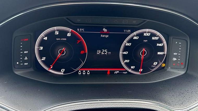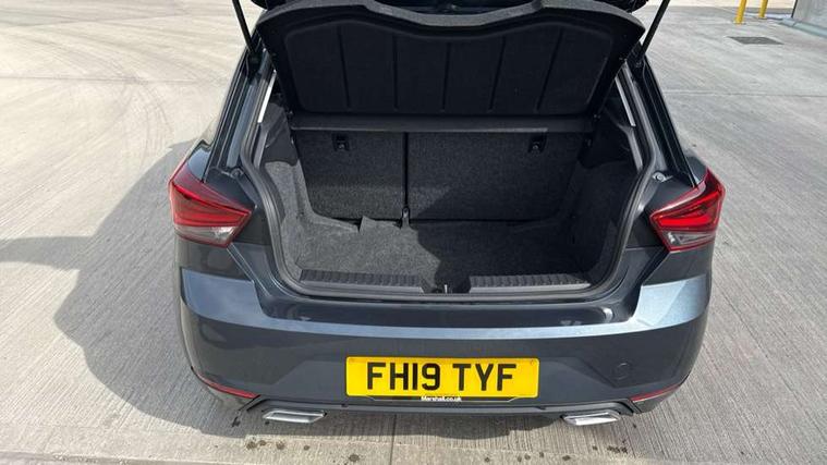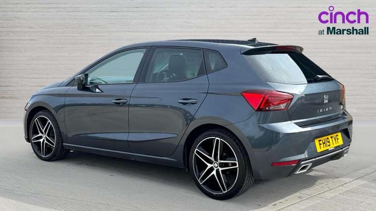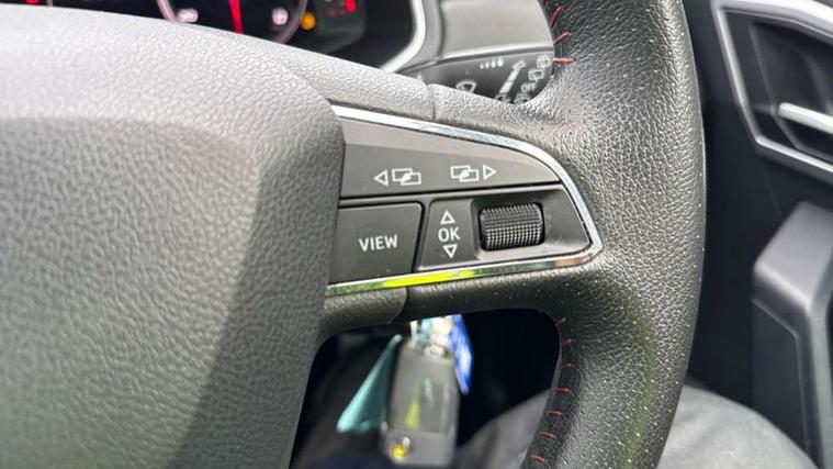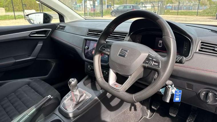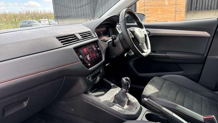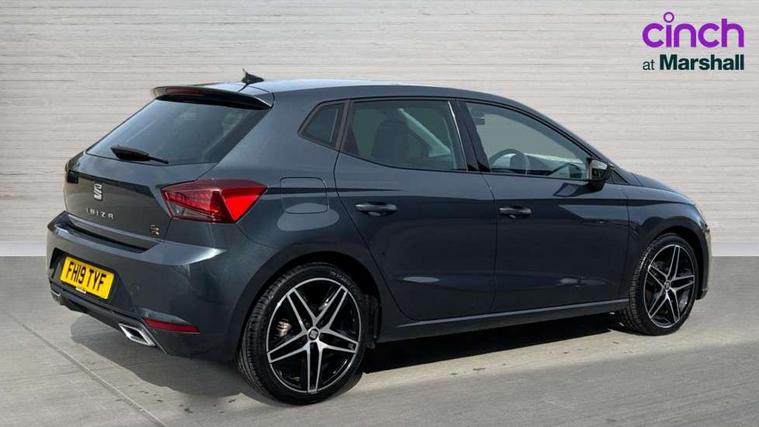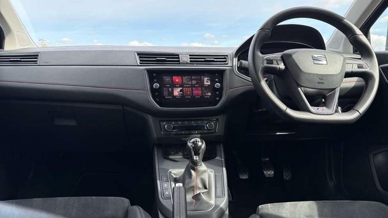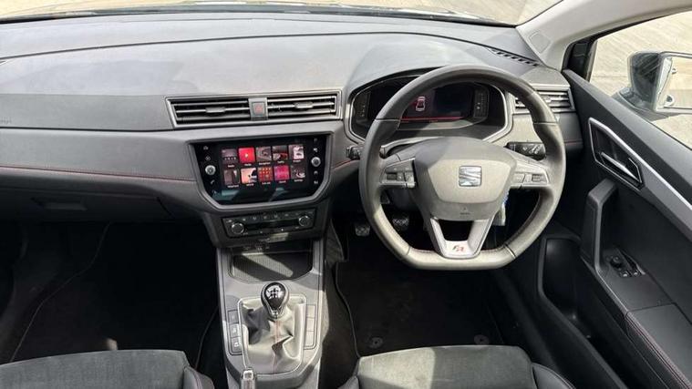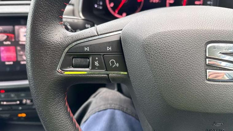 'Lights On' Reminder warning buzzer, Bluetooth Handsfree Phone Connection, Cruise control, Digital clock, Digital cockpit, Full Link Smartphone Integration with Mirror Link, Apple Car Play, Google Android Auto, Low fuel warning light, Outside temperature gauge, Satellite navigation system with 3D mapping, 8" touch screen, voice control and additional USB port, SEAT Drive profile, SEAT logo boot release, Speed sensitive power steering, Trip computer, Sports suspension, 6 speakers, Auxiliary input socket, CD player, Digital Audio Broadcast (DAB) Tuner, Radio/MP3 player, SD card slot, SEAT USB media cable, Steering wheel mounted controls, USB port, Anti theft roof antenna, Auto dimming rear view mirror, Automatic headlights, Automatic rain sensing wipers, Body colour bumpers, Body colour door handles, Brilliant black door mirrors, Chrome front grille frame, Chrome grille, Coming/leaving home lighting function, Cornering front fog lights, Dark tinted rear windows, Electric folding door mirrors, Electric front windows, Electric headlight adjustment, Electrically adjustable and heated door mirrors, Exclusive FR rear bumper, Full LED headlights, Ice metal door side panels, LED daytime running lights, LED tail lights, Rear fog lights, Twin exhaust pipes, 3 rear headrests, 60/40 split folding rear seat, Door and steering wheel ice metal decorative inserts, Driver's sunvisor with ticket holder/vanity mirror, Dual zone climate control, Dust/pollen filter, Flat bottomed perforated leather steering wheel with red stitching and FR logo, Front courtesy lights, Front cupholders x 2, Front reading lights, Gear shift indicator, Glovebox, Height adjustable driver's seat, Height adjustable front/rear head restraints, Height adjustable passenger seat, Height/reach adjust steering wheel, Illuminated boot, Instrument lighting with brightness control, Leather handbrake, Leather steering wheel and gear knob, Leather trim on side panels, Microsuede cloth upholstery, Multi-colour ambient interior lighting, Passenger sunvisor, Rear top tether child seat ISOFIX attachment, Sports seats, Full LED headlight pack - Ibiza, 3 point seatbelts on all 3 rear seats, ABS, Active front headrests, Child locks on rear doors, Curtain airbags, Driver/Front Passenger airbags, ESP+EBA, Front assist (AEB), Front passenger airbag deactivation, Front side airbags, Hill hold control, Multi-Collision braking, Rear disc brakes, Seatbelt warning, Tiredness recognition system, Tyre pressure monitoring system, 2 folding remote keys with window open/close function, Electronic engine immobiliser, Locking wheel bolts, Remote central locking + deadlocks, Volumetric alarm with back up horn, Leather dashboard, 18" Performance machined bi-colour alloy wheels,