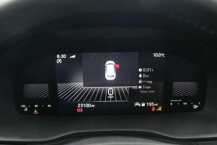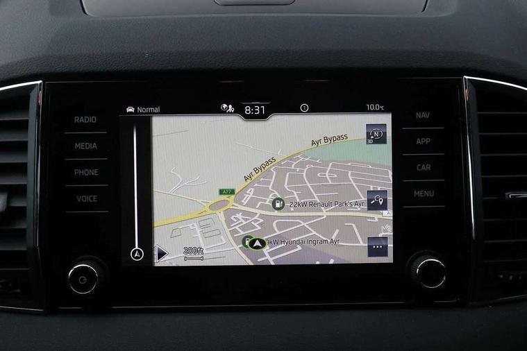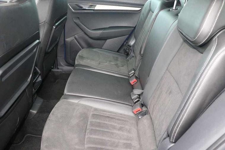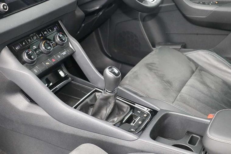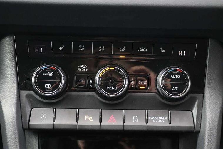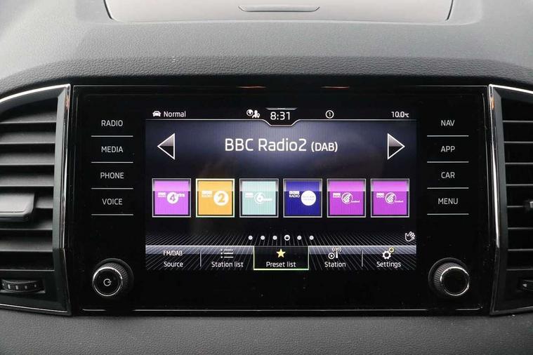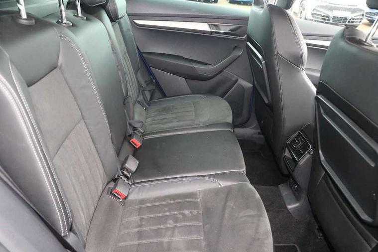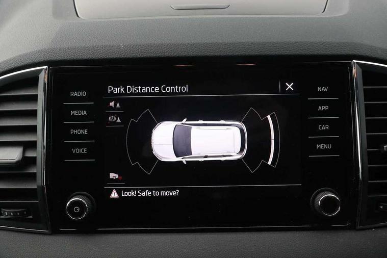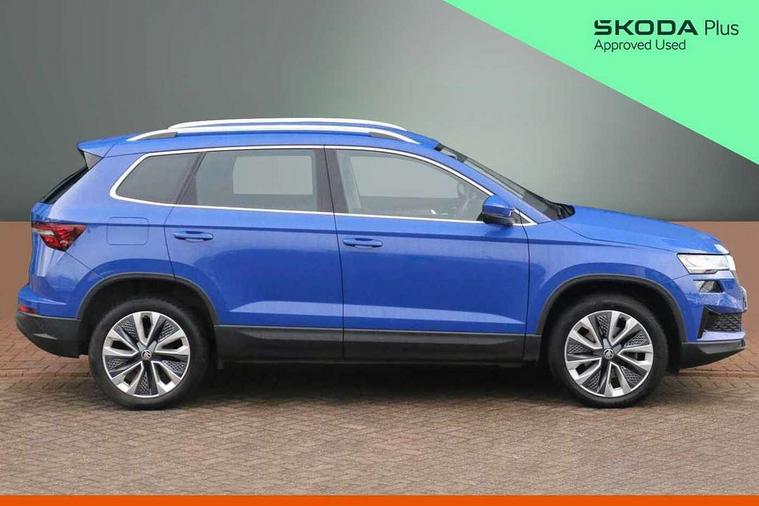 8" Digital display, Care connect, Drive mode selector, Driver fatigue sensor, Electro-mechanical PAS, Emergency services call system, Outside temperature gauge, Service interval indicator, SmartLink wireless for Apple and wired for Android, Start/stop system with regenerative braking, USB C Port x 2 in front centre console, Diesel particulate filter, 8 Speakers, DAB radio with Bluetooth, USB connection, Acoustic glass, Aero front windscreen wipers with intermittent function, Auto dimming rear view mirror with light and rain sensors, Black electric window control buttons, Body colour door mirrors and handles, Dynamic headlight range control with cornering light function, Electric front and rear windows with child proof lock, Heated rear windscreen, LED daytime running lights, LED rear lights with high functionality welcome effect and dynamic indicators, Light assistant (coming/leaving home/tunnel light), Plastic scuff plates, Privacy glass, Rear side wing doors, Rear spoiler, Rear window wiper with washer system and intermittent control, Safety reflectors on front doors, Third brake light, 1.5 litre bottle holders in driver and front passenger door panels, 12V socket in boot, 12v socket in front centre armrest with storage compartment and rear air vents, 2 spoke leather heated multifunction steering wheel, 2 x Tablet holder, 3 rear height adjustable headrests, 3 seat bench in 2nd row, 4 foldable roof handles with rear coat hooks, Black floor carpet, Chrome inner door handles, Decorative door sills with KAROQ badging, Double sided boot floor, Foldable hooks in the boot, Front head restraints, Height adjustable front three point seats belts with tensioners, Height/reach adjust steering wheel, Ice scraper, Illuminated glovebox, Illuminated luggage compartment, Interior noise suppression, Isofix child seat preparation for front passenger seat, Isofix child seat preparation outer rear, Manual lumbar support for front seats, Pen holder, Pollen filter, Rear boot cover, Rear reading lights, Rubbish bin door, Safety vest holder, Single front passenger seat, Storage box in upper central dashboard closed, Sunvisors with illuminated vanity mirrors, Textile floor mats, Ticket holder, VarioFlex seats with standard rear seat release, Boot pack - Karoq, Chrome roof rails + chrome pack - Karoq, Parking pack - Karoq, Automatic door unlocking in case of crash, Automatic fuel cut off in case of crash, Child locks on rear doors, Driver airbag, Electronic parking brake with auto hold function, Emergency rear braking signal, ESC including ABS, MSR, ASR, EDS, HBA, DSR, RBS, MKB and traction control, Front side airbags, Hill hold control, Knee airbags, Passenger airbag with switch-off function, Pedestrian monitor, Seatbelt reminder signalisation and pretensioner for all seats, Three point seatbelts rear, Two tone horn, Tyre pressure display, Tyre pressure monitor, Alarm with interior monitoring, back up horn and tilt sensor with safe function, Electronic engine immobiliser, Keyless entry and start/stop, Remote central locking with 2 remote folding keys, Chrome framed air vents, 18" Miran alloy wheels in black, Anti-theft wheel bolts protection, Storage on wheel cover, Tool kit,
