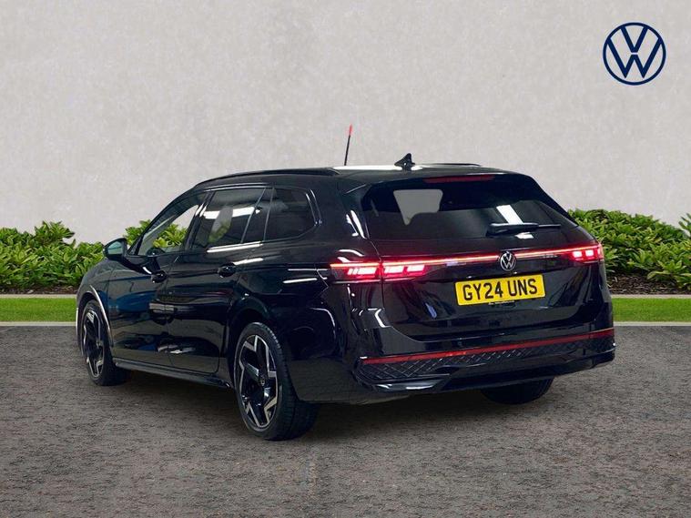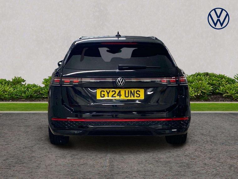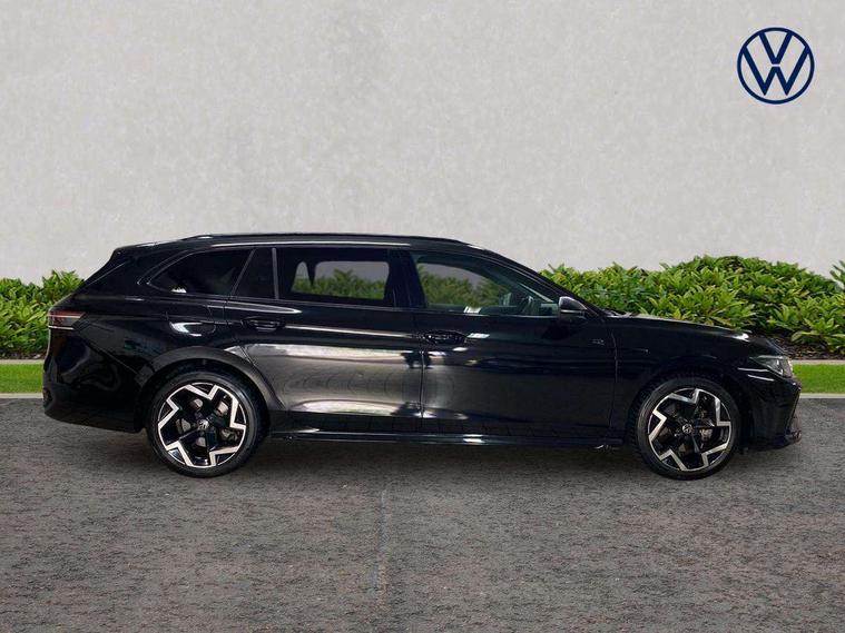 2 x Front USB-C ports, 2 x USB-C charging sockets on the centre console in the rear, charging capacity up to 45W, Adaptive cruise control, Advanced driver attention and drowsiness monitor, Digital cockpit pro 10.25" high resolution, Discover media navigation system includes streaming and internet, Dynamic road sign display, E-Sim card for online connectivity, eCall emergency call service, Full electric tailgate operation, Inductive smartphone charging without external antenna connection, Memory feature for park assist, Oncoming vehicle braking when turning including swerve support, Park assist with park distance control, Predictive speed limiter, Preparation for We connect and We connect plus, Wireless app connect, Battery 380 A (59 Ah) EFB+, Front wheel drive, Petrol Particulate Filter, Auto dimming interior rear view mirror, Automatic headlights, Body colour bumpers, Body colour door handles, Heated windscreen washer jets, LED third brake light, Rain sensor, Rear side wing doors, Rear wiper, Welcome light with surround lighting, 3 seat bench in 2nd row, 3 zone air care climatronic with rear air conditioning control panel, 30 colours options interior ambient lighting, Brushed stainless steel pedals, Front + rear carpet mats, Front head restraints, Front sports seats, Isofix child seat preparation, easy-fit (for two outer rear seats, and front passenger seat), compatible with I-size, Luggage compartment cover, power operated, Rear centre armrest, Single front passenger seat, Sun visors with illuminated vanity mirrors for driver and front passenger, Sunblind for rear side windows, Three rear head restraints, Unsplit rear seat bench, split folding backrest, Acoustics pack - Passat Estate, LED High matrix headlamps pack - Passat, 3x3 point rear seat belts, ABS (Anti locking brake system) includes BAS (Brake assist) and EBD (Electronic brake pressure distribution), Autonomous emergency braking front assist with pedestrian and cyclist monitoring, Disc brakes in front, Driver/Front Passenger airbags, Drivers knee airbag, Electronic parking brake with auto hold, ESC (Electronic stability control) + EDL (Electronic Differential lock) and ASR (Traction control), EDTC (Engine drag torque control), Extended safety system with proactive passenger protection system, Front passenger airbag deactivation switch, Hill hold function, Tyre pressure loss indicator, Warning triangle and first aid kit, Alarm with interior protection, Electronic engine immobiliser, Keyless locking and starting system keyless access with safelock, Tool kit for tyre mobility set, Trims for alloy wheels,