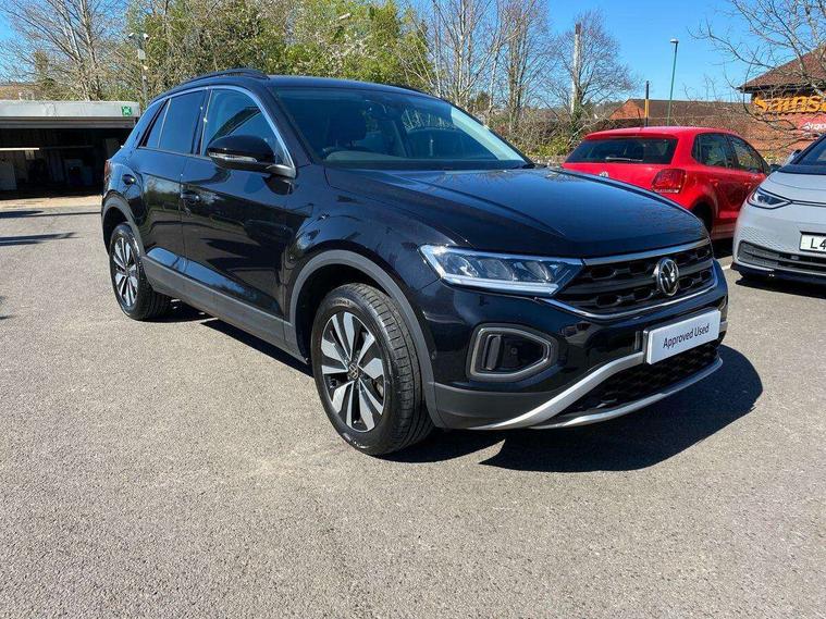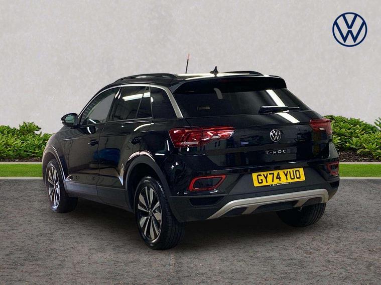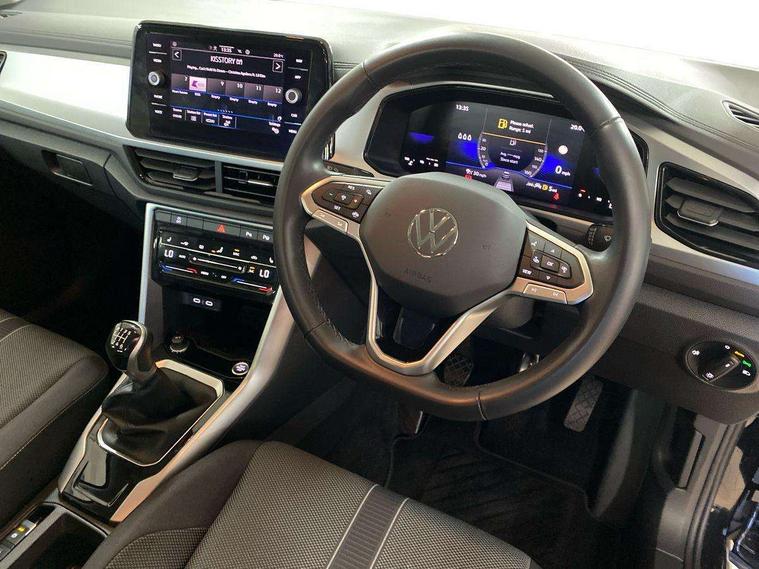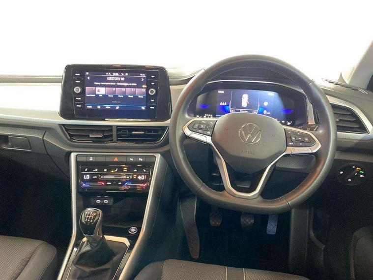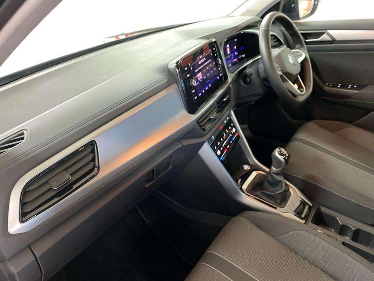 Advanced driver attention and drowsiness monitor, Dynamic road sign display, Emergency call service, Lane keeping system Lane Assist, Mobile phone interface, Modified key software - reduce switch off time for key status change to Long no motion, Online services, Park assist including front and rear parking sensors, Power assisted speed sensitive steering, Rear view camera, Service interval indicator, Tailgate/trunk lid release from outside, Think blue trainer driver tips and journey analysis, Warning sound and light for front seatbelts unfastened, Wireless app connect, Battery regeneration during braking, Front shock absorption, Rear shock absorption chassis with increased ride height, Start/stop function with battery regeneration, DAB Digital radio, Diversity antenna for FM reception, Front and rear 6 speakers, Music playback - MP3, WMA and AAC files, Premium USB cable in choice of either Apple or Android smartphone compatibility, SD card slot, Simultaneous pairing of 2 compatible mobile devices, Title and cover art display, We Connect and We Connect Plus functionality, Auto dimming interior rear view mirror, Automatic hazard lights activation under emergency braking, Automatic headlight control with LED separate daytime running lights with coming/leaving home function, Black roof rails, Body coloured bumpers and radiator grille with chrome trim and front fog lamps with chrome bezel, Body coloured exterior mirror housings and door handles, Electrically adjustable and heated door mirrors, Extended roof spoiler, Exterior mirrors aspherical on driver side, convex on front passenger side, External USB type C socket and charging sockets, Front windscreen wiper with intermittent wipe and 4 position delay, Heated rear window, LED 3rd brake light, LED rear combination lamps, LED rear number plate lights, Power windows with comfort operation and circuit breaker, Privacy glass for rear side windows and rear window, Rain sensor, Rear exhaust tailpipe, Rear fog light on one side and reversing lights on both sides, Rear side wing doors, Rear wash/wipe with intermittent wipe setting, Remote electrically foldable door mirrors, puddle lights and reverse activated passenger's door mirror, 12V power socket in centre console, 3 rear head restraints, 3 seat bench in 2nd row, 4 load lashing points in luggage compartment, Air care climatronic air conditoning system with active combination filter and 2-zone temperature control, Black stitching for floor mats, Ceramique roof liner, Cloth upholstery, Door and side trim panel in cloth, Drawer under drivers seat, Driver/front passenger seat height adjustment, Front centre armrest, Front comfort sports seats, Front cupholders x 2, Front reading light, Front seat back storage pockets, Glove compartment door with light, Instrument lighting, white adjustable panel illumination, Interior ambient lighting and surround lighting, Interior light delay, Isofix child seat preparation, Leather gearshift handle, Load-through provision with cup holder when folded down ('Unsplit rear seat bench, split folding backrest, with centre armrest), Luggage compartment lighting, Lumbar support for driver's and front passengers seat, Non-folding front passenger seat backrest, Single front passenger seat, Storage compartment in left and right luggage area, Storage compartment in rear doors, Storage compartments in driver and front passenger doors, Sunvisors with illuminated vanity mirrors, Variable boot floor, height adjustable and removable, Driver assistance pack without proactive passenger protection - T-Roc Life/Match, 3 point height adj front seatbelts + pretensioners, 3 point seatbelts in outer rear with ECE label, ABS, Child locks on rear doors, City emergency braking and pedestrian monitoring, Driver and front passenger airbag with front passenger airbag deactivation, Driver and front passenger safety-optimised head restraints, Drivers seatbelt reminder, Electronic parking brake, Electronic Stability Control (ESC) inc EDL (Electronic Differential Lock) and ASR (Traction Control), Front and rear passengers curtain airbag system including front side airbags, Front disc brakes, Hill start assist, Predictive pedestrian protection, Rear disc brakes, Two tone horn, Tyre pressure loss indicator, Volkswagen roadside assistance, Alarm with interior protection, Keyless locking and starting system keyless access with safelock, Pewter matt decorative inserts for intrument panel, centre console and door panels at the front, Trims for alloy wheels,