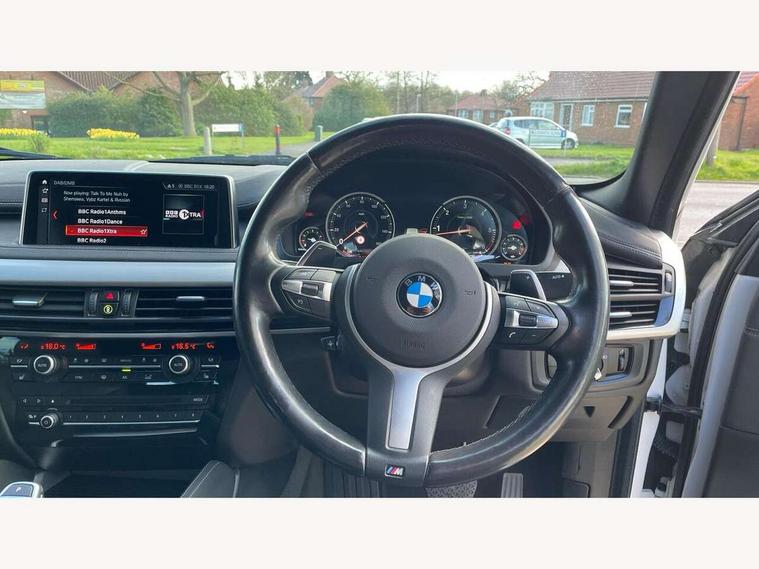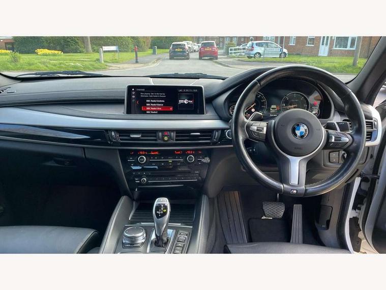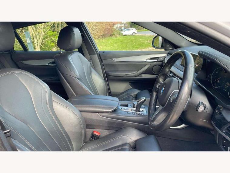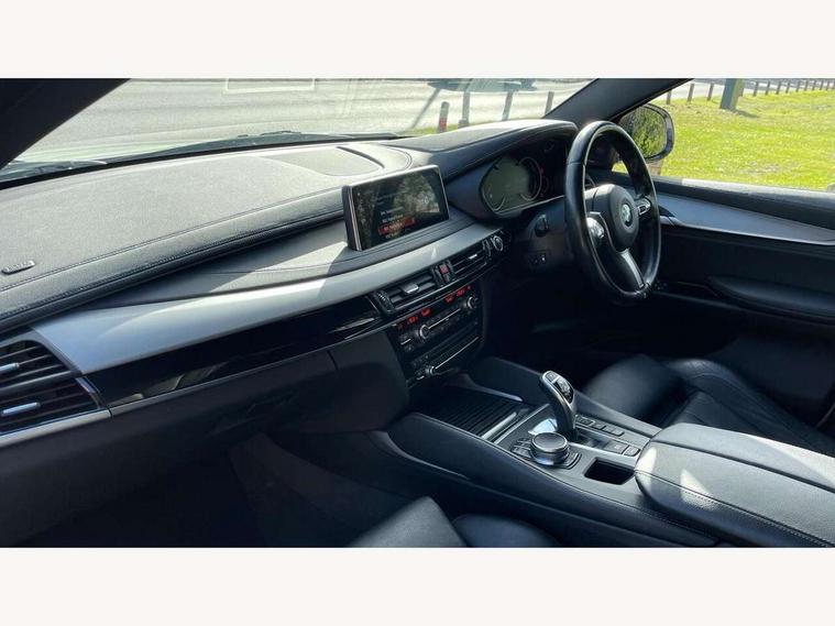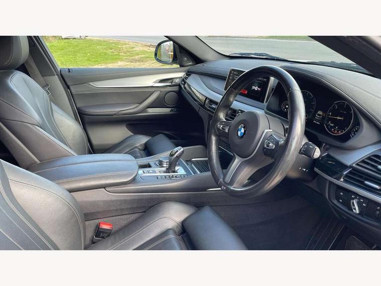 20GB Hard drive, 6.5" colour display screen, BMW apps interface, BMW information plus, BMW remote services, BMW Teleservices, Brake force display, Check control system, Electric tailgate release, Front/rear park distance control, Lights on warning, On board computer, Outside temperature gauge, Personal Profile, Professional multimedia navigation system, Service interval indicator, Servotronic PAS, Stop/start button, Voice control system, Adaptive M suspension, Diesel particulate filter, Auxiliary point for auxiliary devices, BMW professional twin tuner radio with single CD player and MP3 CD playback facility, DAB Digital radio, Auto dimming and folding door mirrors, Auto dimming rear view mirror, Body colour bumpers, Body colour door handles, Body colour door mirrors, Chrome exhaust tailpipes, Clear indicator lenses, Door mirror integrated indicators, Double kidney grille with high gloss black surround and black slats, Downlights in exterior door handles, Electric + heated aspheric door mirrors, Electric front/rear windows with anti-trap, Electric headlight adjustment, Follow me home headlights, Green tinted glass, Headlight washer jets, Heat insulated glass, Heated washer nozzles, High gloss black air breather, M aerodynamic body kit, Rain sensor with auto light activation system, Stainless steel sill finishers, Xenon headlights, 12V accessory power point in centre console, 12v socket in front centre armrest storage compartment, 12V socket in luggage compartment, 2 x 12V socket in rear centre console, 3 spoke sports leather multi-function steering wheel with gear shift paddles, 40:20:40 split folding rear seats, Ambient interior lighting, Anthracite Velour floor mats, Boot lashing points, Door sills with M logo, Driver and passenger knee pads, Electric front seats + driver memory, Front and rear cupholders, Front armrest with storage bin, Front reading lights, Front/rear courtesy lights with soft on/off dimming, Full black panel display, Heated front seats, Height adj rear head restraints, Illuminated glovebox with lock, Isofix child seat preparation, LED footwell lights, Luggage compartment cover, removable, Reach + rake adjustable steering column, Storage bins on all doors, Sunvisors with illuminated vanity mirrors, Tilt/height adjustable front head restraints, Toolkit located in luggage compartment, Extended storage pack - X6, 3 rear 3 point seatbelts, ABS, ADB - Automatic Differential Brake, Automatic Stability Control (ASC), BMW emergency call, Brake energy regeneration, Child locks on rear doors, Cornering brake control (CBC), Crash Sensor - activates hazard/interior lighting + unlocks doors, Driver/Front Passenger airbags, DSC+, Dynamic brake control, Dynamic Traction Control - DTC, Electronic brake force distribution, Electronic parking brake, Front and rear head airbags, Front passenger airbag deactivation, Front passenger seat occupancy sensor, Front side airbags, Height adjustable front seatbelts, Hill descent control, Hill start assist, Pyrotechnically pre-tensioned front seatbelts, Seat belt force limiter, Side impact protection, Tyre pressure monitor, Warning triangle and first aid kit, Locking wheel nuts, Remote central locking, Thatcham cat 1 remote alarm/immobiliser, Run flat tyres,