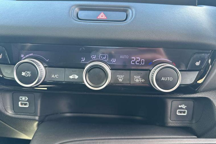 7" TFT instrument cluster, Adaptive cruise control, Adjustable speed limiter, Agile handling assist, Bluetooth hands free telephone connection, Drive modes select (Eco, normal and sport), eCall emergency system, Electric power steering, Emergency stop signalling system, Forward collision warning, Front parking sensors, Honda CONNECT with navigation, 9" touchscreen, AM/FM/DAB/Apple Carplay and android auto, Idle stop, Intelligent speed limiter, Lane departure warning, Lane keep assist, Low speed following, Multi info display, Power meter, Rear parking sensors and rear view camera, Road departure mitigation, Tachometer, Tailgate, Traffic sign recognition, WiFi connectivity, Vehicle stability assist, 'Shark fin' mobile antenna, 2x USB Front socket (1 data & 1 charge), 4 speakers, Steering wheel mounted remote controls, Auto folding door mirrors, Auto high beam, Automatic coming home lighting, Automatic headlights, Automatic rain sensing wipers, Body colour bumpers, Body colour tailgate spoiler, Body coloured door handles, Electric front and rear windows, Electrically adjustable and heated door mirrors, Exclusive styling in lower bumper non painting black, Fog garnish non paint gloss black, lower door garnish bumper skid garnish non paint silver, Front sequential turn, Headlight washers, Heated front windscreen, Heated rear window, High level third brake light, LED daytime running lights, LED headlamps, Low gloss window garnish, Manual headlight levelling, Rear side wing doors, Rear wiper, Red and clean lens LED rear lights, Variable front intermittent wipers, Windscreen shadeband, 3 rear headrests, 3 seat bench in 2nd row, 60/40 split folding rear seat, Ambient interior lighting, Automatic air conditioning, Cargo net hooks, Courtesy lights, Driver's seat height adjustment, Driver/passenger sunvisors with illuminated vanity mirrors, Front and rear map reading lights, Front head restraints, Front seat armrests, Heated front seats, Isofix points, Luggage area under floor storage box, Magic seat flexibility system, Manual height/reach adjust steering wheel, Meter illumination light, Paddle shift controls, Passenger seat back pocket, Rear centre armrest, Rear ventilation, Silver interior door handles, Single front passenger seat, Tonneau cover, Trunk light, 3x3 point rear seatbelts, ABS+EBD+Brake assist, Anti-whiplash front headrests, Auto hold function, Collision mitigation braking system, Collision mitigation throttle control, Deflation detection system, Dual front SRS airbags, Electric child locks, Electronic parking brake, Front and rear curtain airbags, Front and rear safety belts with Emergency Locking Retractor, Front side airbags, Hill descent control, Hill start assist, Low speed safety system, Paddle deceleration control, Passenger SRS airbag cut-off device, Regenerative braking system, Door deadlocks, Honda super locks, Immobiliser, Keyless smart entry with push button start, Remote central locking with 2 remote folding keys, Security alarm, Windows key fob operation, Tyre repair kit,