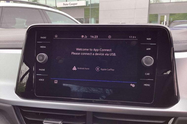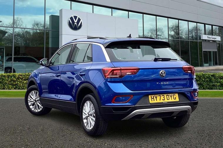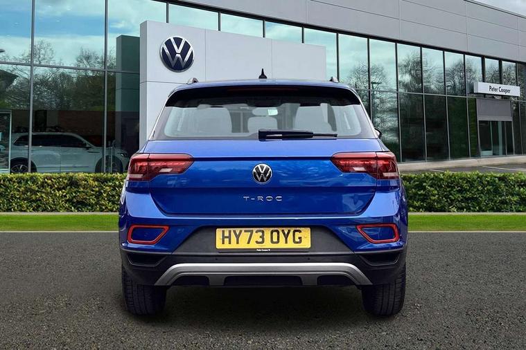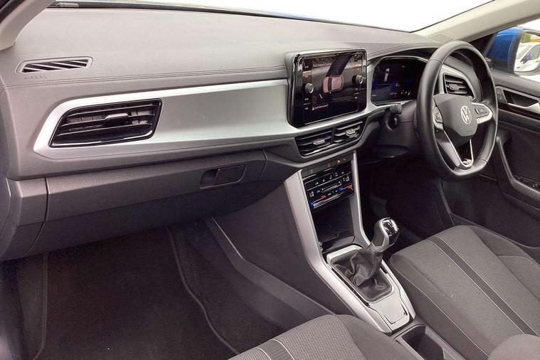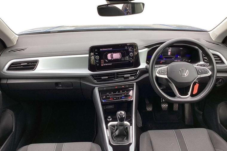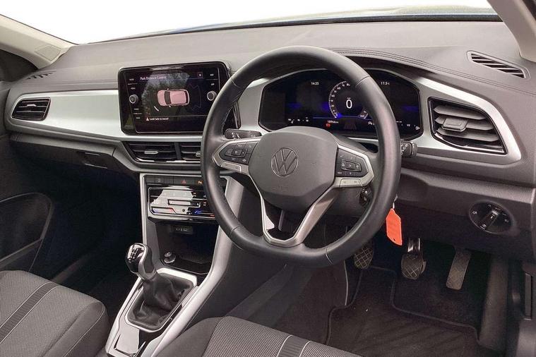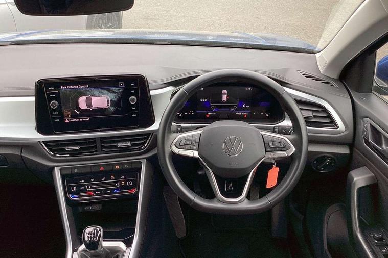 Bluetooth mobile phone interface, Driver alert system with fatigue detection, Driver tips and journey analysis, Emergency call service, Lane keeping system Lane Assist, Modified key software - reduce switch off time for key status change to Long no motion, Online services, Park assist including front and rear parking sensors, Power assisted speed sensitive steering, Service interval indicator, Tailgate/trunk lid release from outside, Think blue trainer driver tips and journey analysis, Warning sound and light for front seatbelts unfastened, Wireless app connect, Battery regeneration during braking, Front shock absorption, Rear shock absorption chassis with increased ride height, Start/stop function with battery regeneration, DAB Digital radio, Diversity antenna for FM reception, Music playback - MP3, WMA and AAC files, Premium USB cable in choice of either Apple or Android smartphone compatibility, SD card slot, Simultaneous pairing of 2 compatible mobile devices, Title and cover art display, We Connect and We Connect Plus functionality, 3rd brake light, Auto dimming interior rear view mirror, Automatic hazard lights activation under emergency braking, Automatic headlight control with LED separate daytime running lights with coming/leaving home function, Black roof rails, Body coloured bumpers and radiator grille with chrome trim and front fog lamps with chrome bezel, Body coloured exterior mirror housings and door handles, Extended roof spoiler, Exterior mirrors aspherical on driver side, convex on front passenger side, External USB type C socket and charging sockets, Front windscreen wiper with intermittent wipe and 4 position delay, Heated rear window, LED rear combination lamps, LED rear number plate lights, LED tail lamp rear comination lamps, Power windows with comfort operation and circuit breaker, Rain sensor, Rear exhaust tailpipe, Rear fog light on one side and reversing lights on both sides, Rear side wing doors, Rear wash/wipe with intermittent wipe setting, Remote electrically foldable door mirrors, puddle lights and reverse activated passenger's door mirror, 12V power socket in centre console, 3 rear head restraints, 3 seat bench in 2nd row, 4 load lashing points in luggage compartment, Air care climatronic air conditoning system with active combination filter and 2-zone temperature control, Ambient lighting with mirror logo projection, Cloth upholstery, Door and side trim panel in cloth, Drawer under drivers seat, Driver/front passenger seat height adjustment, Front centre armrest, Front comfort sports seats, Front cupholders x 2, Front reading light, Instrument lighting, white adjustable panel illumination, Interior light delay, Isofix child seat preparation, Leather gearshift handle, Load-through provision with cup holder when folded down ('Unsplit rear seat bench, split folding backrest, with centre armrest), Luggage compartment lighting, Lumbar support for driver's and front passengers seat, Non-folding front passenger seat backrest, Single front passenger seat, Storage compartment in left and right luggage area, Storage compartment in rear doors, Storage compartments in driver and front passenger doors, Sunvisors with illuminated vanity mirrors, Variable boot floor, height adjustable and removable, Driver assistance pack without proactive passenger protection - T-Roc, 3 point height adj front seatbelts + pretensioners, 3 point seatbelts in outer rear with ECE label, ABS, Child locks on rear doors, Driver and front passenger airbag with front passenger airbag deactivation, Driver and front passenger safety-optimised head restraints, Drivers seatbelt reminder, Electronic parking brake, Electronic Stability Control (ESC) inc EDL (Electronic Differential Lock) and ASR (Traction Control), Front and rear passengers curtain airbag system including front side airbags, Front assist with city emergency braking and pedestrian monitoring, Front disc brakes, Front seat side impact airbags, Hill start assist, Predictive pedestrian protection, Rear disc brakes, Single tone horn, Tyre pressure loss indicator, Volkswagen roadside assistance, Alarm with interior protection, Anti-theft alarm system with interior monitoring, backup horn, and towing protection, Remote central locking with SAFELOCK, radio remote control with 2 remote control folding keys, Pewter matt decorative inserts for intrument panel, centre console and door panels at the front, Trims for alloy wheels,