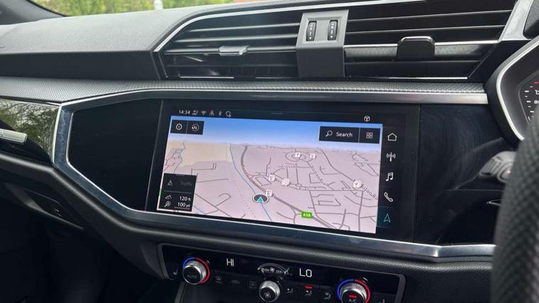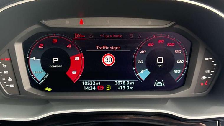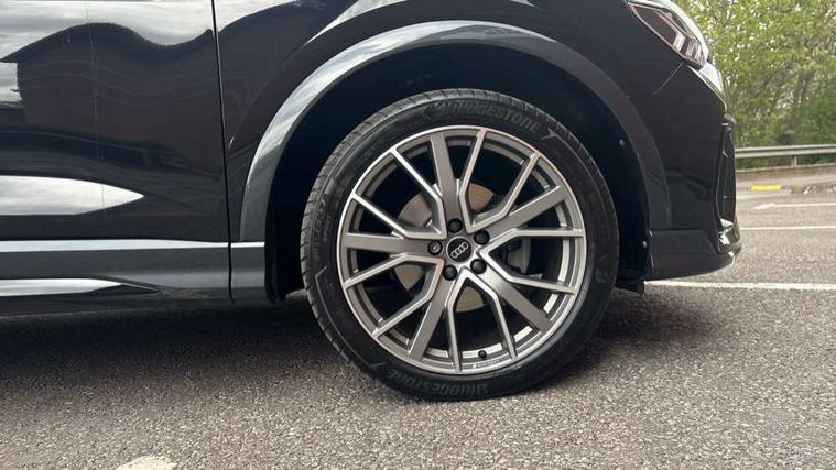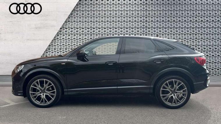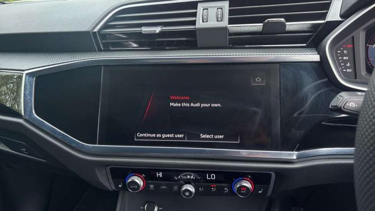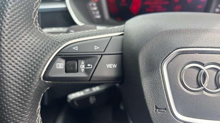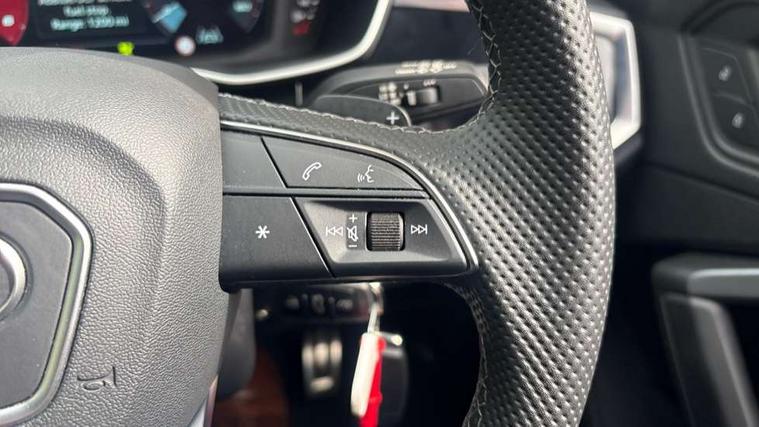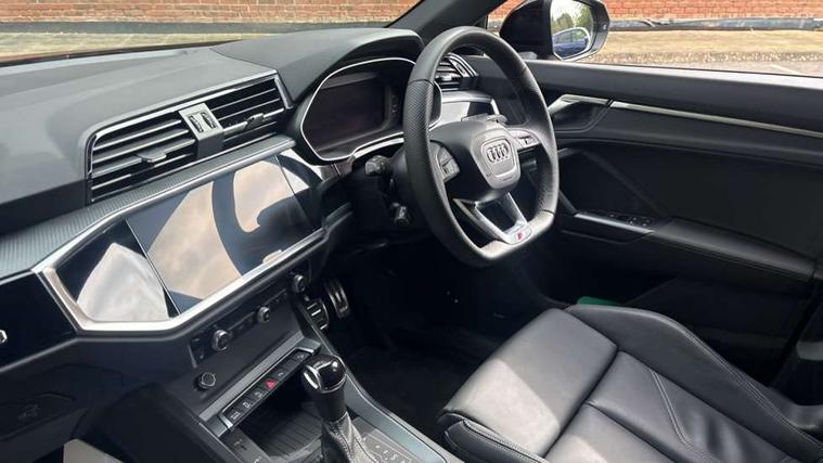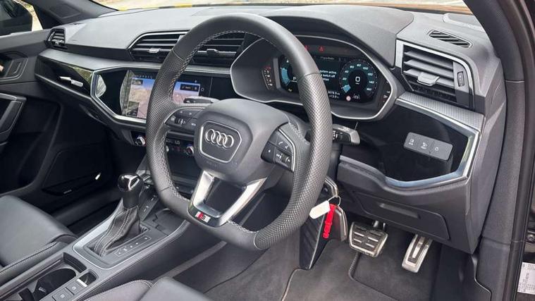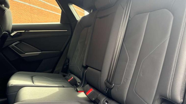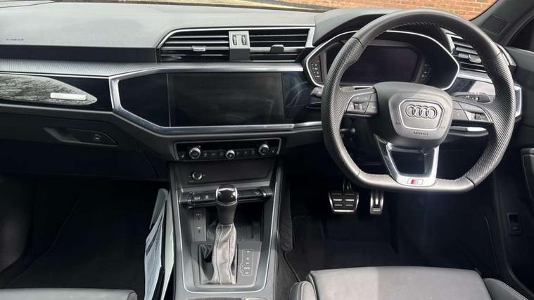 Audi connect safety and service, Audi drive select, Audi lane departure warning, Audi Virtual Cockpit - 10.25" display, Bluetooth interface, Camera based traffic sign recognition, Distraction and Fatigue warning, Legal emergency call, MMI Navigation Plus with high resolution 10.1 inch touchscreen colour display, Power operated tailgate, Progressive steering, Service interval indicator, Smartphone interface includes wireless Apple carplay/Android Auto, Start stop system with recuperation, Voice control system with natural language interaction, Diesel particulate filter, Sports suspension, 2 USB-C ports with charge and data functions, 6 passive loudspeakers, DAB digital radio module, Acoustic windscreen, Audi Beam uses LEDs to project the Audi logo onto the ground as you exit your Q3, Auto dimming door mirrors, Auto dimming frameless rear view mirror, Electrically folding, adjustable and heated door mirrors with integrated LED side indicators and kerb view function for passenger side, Front and rear electric windows, Front fog lights, Front underbody protection in manhattan grey paint finish, High gloss black finish B and C pillars, Honeycomb design radiator grille in matt anthracite black, LED Dynamic rear indicators, LED headlights with LED daytime running lights, LED rear lights, LED third brake light, Privacy glass dark tinted rear and rear-side windows (from B-pillar backwards), Rain and light sensors, Rear diffuser grille in grained matt black, Rear diffuser strip in matt anthracite black, Rear side wing doors, Rear underbody protection in matt black, Rear wiper, S line front and rear bumpers and side skirts in contrasting Manhattan grey paint finish, Variable front intermittent wipers, 12V socket in rear centre console, 3 seat bench in 2nd row, 40:20:40 folding with manual adjustment for 60:40 forwards/backwards position and backrest angle, Adjustable rear seat bench/backrest with centre armrest and cupholder, Black carpet mats, Black cloth headlining, Dual zone electronic climate control, Electric lumbar support, Front and rear black floor mats with contrast stitching in rock grey, Front and rear headrests, Front centre armrest, Height and reach adjustable steering wheel, Illuminated door sill trims with S logo, ISOFIX child seat mounting for front passenger with airbag deactivation and outer rear seat including top tether attachment point for outer rear seats, Luggage compartment sill protection in stainless steel, Manual front seats with height adjustment, Perforated leather gearknob, Single front passenger seat, Stainless steel pedals, Twin leather upholstery with front sport seats + S embossing, Black styling pack - Q3, Non smoking pack - Q3, 3x3 point rear seatbelts, 6 airbags - Driver, front passenger, curtain and side windows, Audi pre-sense front with pedestrain and cyclist recognition, Electrically operated child locks on rear doors, Electromechanical parking brake, Electronic stabilisation control including ABS, ASR and EDL, Front seatbelt reminder, Hill descent control, Hill hold assist, Pre sense basic, Seatbelt monitoring, Tyre pressure warning, Warning triangle and first aid kit, Anti theft wheel bolts, Immobiliser, Remote central locking, Thatcham approved category 1 anti theft alarm, Aluminium look interior elements, Detail dashboard around MMI touch colour display in glass look, black with surround in aluminium look, Leatherette door armrest, Piano black inlay,