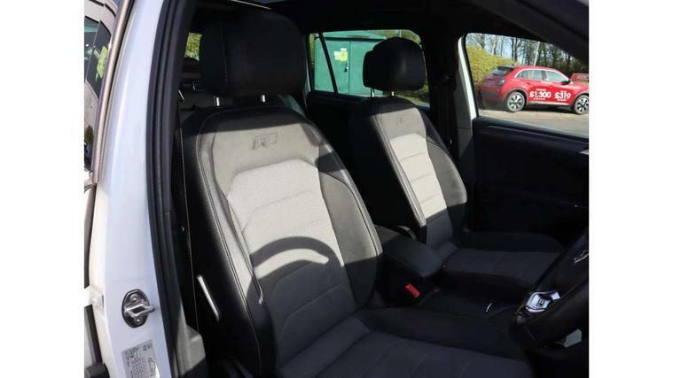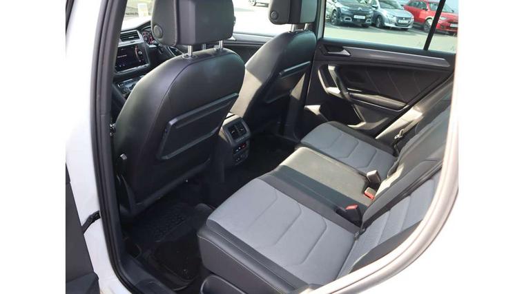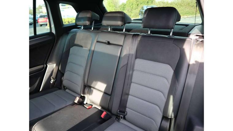 Active information display, Adaptive cruise control, App-Connect, Bluetooth phone integration system, Distance control assist, Driver profile selection, Fatigue detection system, Instrument cluster, Lane assist, Low washer fluid warning light, Outside temperature display, Progressive power assisted steering, Service interval indicator, Speed limiter, Warning lights, Diesel particulate filter, XDS electronic differential lock, 2x USB sockets in front, Aux-in socket, DAB Digital radio, MP3 compatible single CD player, SD card slot, Auto dimming interior mirror, Automatic activation of hazard warning lights, Body colour door handles, Body colour door mirrors, Body colour rear spoiler, Body colour side skirt, Body coloured bumpers, Chrome side window surrounds, Chrome trimmed radiator grille, Coming/leaving home lighting function, Dusk sensor + auto driving lights, Electric folding door mirrors, Electric heated + adjustable door mirrors, Electric panoramic sunroof with sunblind, Front and rear electric windows, Heated rear window, LED headlights with dynamic light assist daytime running lights and cornering front fog lights, LED rear lights, Piano black rear diffuser, R Line body kit, Rain sensor windscreen wipers, Rear windscreen washer and wiper with interval delay, Silver roof rails, Silver under body guard, Tinted windows (B pillar backwards), Windscreen wipers/ intermittent wipe + 4 position delay, 12V Accessory socket in centre console, 3 rear headrests, 3 zone climate control, 4 load lashing points, 40:20:40 split folding rear seats, Bag hook in luggage compartment, Black headlining, Driver + front passenger lumbar support, Foldable passenger seatback, Front + rear carpet mats, Front centre armrest with 12v socket, Front centre armrest with storage + rear 2 air vents + cupholders, Front seatback folding tables, Height/reach adjust steering wheel, Illuminated driver/passenger vanity mirrors, Illuminated scuff plates, Interior light with delay, Isofix Preparation 2 Rear child seats, Leather gear knob, Leather multifunction steering wheel with paddle shift, Load through provision with 2 cupholders when folded, Lockable cooled glovebox, Luggage compartment lighting, Luggage compartment side storage, Map pockets on front seats, Passenger seat height adjuster, Rear cupholders, Removable luggage cover, Sliding/reclining rear seats, Stainless steel pedals, Storage compartment in driver's door, Storage compartment in passenger's door, Storage compartment in rear doors, Storage tray on dashboard, Sunglasses storage, Variable boot floor, Ambient lighting pack - Tiguan, 3 rear 3 point seatbelts, ABS+EBD+Brake assist, Active bonnet, Active pedestrian safety system, Curtain airbags, Driver/Front Passenger airbags, Driver/Passenger whiplash optimised head restraints, Drivers knee airbag, DTC - Drag torque control, Electronic parking brake with auto hold, ESP with EDL + ASR, First aid kit, Front assist including city emergency braking, Front side airbags, Head airbag system, Height adjustable front 3 point seatbelts + pretensioners, Hill hold control, Passenger airbag deactivate switch, Passenger knee airbag, Pre crash system, Rear side airbags, Seatbelt warning lamp and buzzer, Two tone horn, Warning triangle, Alarm with interior protection, Electronic engine immobiliser, Remote central locking with 2 remote folding keys, Aluminium decorative inserts, Chrome door trim inserts, 20" Suzuka alloy wheels + anti theft wheel bolts, Steel space saver spare wheel,