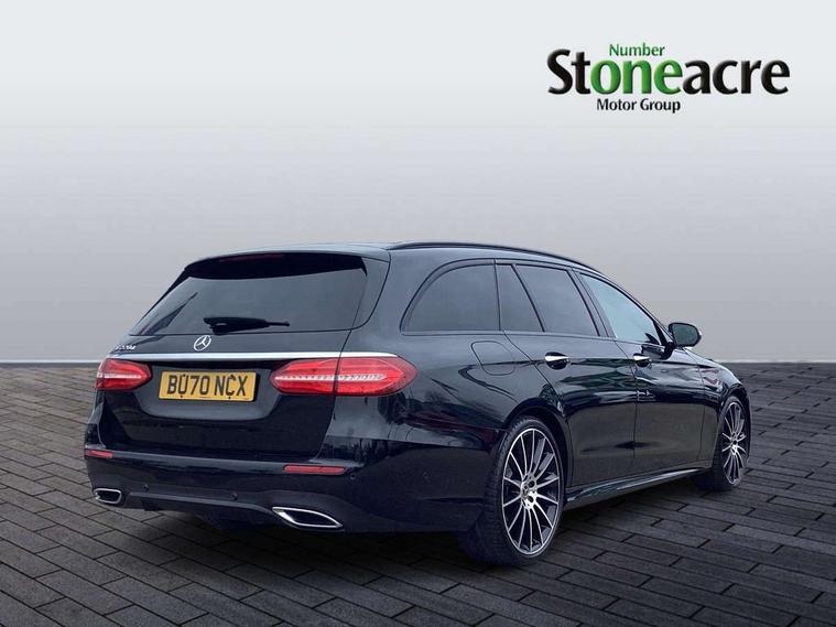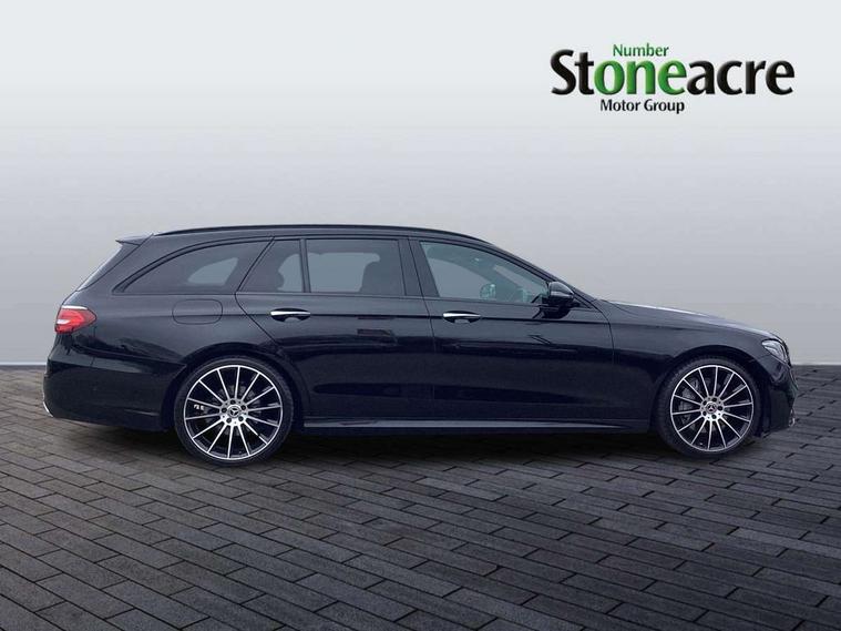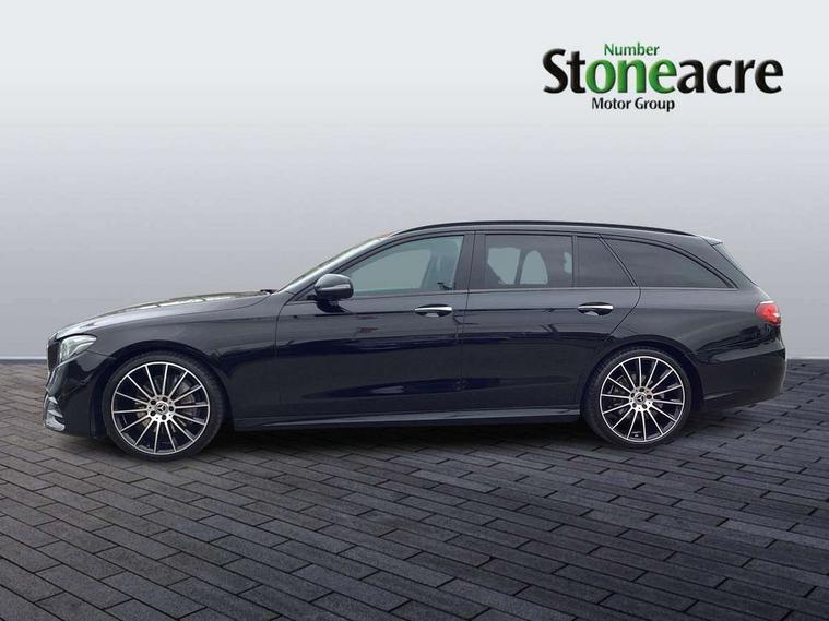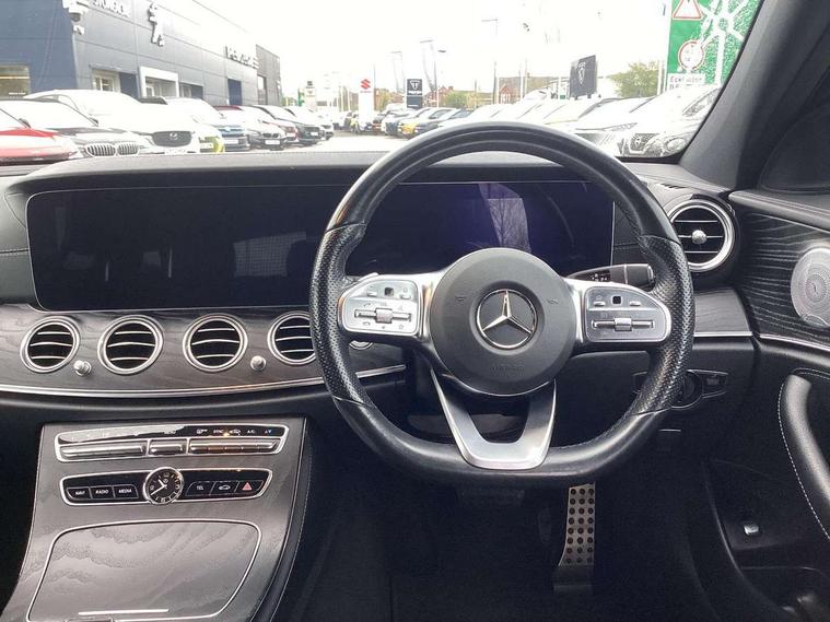 Active parking assist and 360 camera, Analogue clock, Attention assist, Blind spot assist, Boot release from drivers seat, Brake wear warning light, COMAND online HDD navigation with media interface with 12.3 inch colour display, WLAN/Wi-Fi hotspot, Car-to-X Communication, Direct steer speed sensitive steering, DYNAMIC SELECT with a choice of driving modes (ECO, Comfort, Sport, Sport+ and Individual), Easy-pack tailgate - Powered opening/closing automatically, Mercedes connect me, Multi function trip computer, Outside temperature display, Remote boot release, Service indicator (ASSYST), Smartphone integration via Android Auto/Apple CarPlay, Media Interface, USB and Bluetooth interface, Status display for rear seat belts in instrument cluster, Stop/start system, Touchpad with control wheel, Traffic sign assist, Wireless charging, 25 litre AdBlue tank, 66 litre fuel tank, Agility control sports suspension with selective damping system and lowered by 15mm, Diesel particulate filter, Incorrect fuelling protection, Rear air suspension with level control, 2 USB ports in centre console, 2 USB ports in the rear, Burmester surround sound system with 13 speakers, DAB Digital radio, Adaptive brake lights, Aerial integrated in rear window, AMG bodystyling front and rear aprons and side skirts in polished aluminium, Body colour door handles, Chrome roof rails, Chrome trim on the front bumper and high gloss black trim on the rear bumper, Electric panoramic glass sunroof, Electric windows with one touch opening/closing and obstruction sensors, Electrically adjustable and heated door mirrors, Front apron in high gloss black, Front LED fog lights with cornering function, High gloss black door mirrors, LED High Performance headlamps including integral LED daytime running lamps, LED rear lights, MULTIBEAM Intelligent Light System with Adaptive Highbeam Assist, Privacy glass (rear side windows and rear screen), Radiator grille with integral star and 2 louvres in high gloss black, Rain sensor windscreen wipers, Rear wiper, Top surround of side windows in polished aluminium, Visible twin exhaust tailpipe in bumper, Waistline trim strip in high gloss black, 3 spoke flat bottom AMG steering wheel with trimmed in black nappa leather, 40:20:40 split folding rear bench seat, Artico man-made leather/Microfibre Dinamica upholstery, Auto dual-zone climate control system, Auto Mercedes-Benz child seat recognition sensor, Black roof lining, Chrome door pins, Courtesy lights in rear grab handles with reading light functionality, Electric height/reach adjustable steering column, Floor mats with AMG lettering, Folding shopping box, Four way partially front electric seat adjustment, Front and rear door pockets, Front centre armrest with storage compartment, Front door sills with illuminated Mercedes lettering, Glasses compartment in overhead control panel, Head restraints for driver and front passenger (four-way adjustability) and in rear (two-way), Heated front seats, Interior lighting - 64 colour Ambient lighting, Interior rear light/integral reading lights, ISOFIX child seat attachment points two outer rear seats, Lockable/illuminated air conditioned glovebox, Sports pedals in brushed stainless steel with black rubber studs, Steering column electrically adjustable for height and reach, Steering wheel multifunction with gearshift paddles, Steering wheel touch control buttons for audio and onboard settings, Storage compartment with 12V socket in centre console, Sunvisors with illuminated vanity mirrors, Keyless Go comfort pack - E Class, Memory pack - E Class, Mirror pack - E Class, Parking package including 360 degree camera - E Class, Seat comfort pack - E Class, Stowage pack - E Class Estate, 3x3 point rear seatbelts, Active bonnet, Active brake assist, Adaptive brake system with HOLD function and brake drying in the wet, Anti-lock braking system (ABS), Black seat belts, Childproof locks manually operated for rear doors and electrically operated for rear power windows, Driver and passenger side/thorax airbags, Driver/front passenger airbag, Drivers knee airbag, Electronic parking brake, Electronic Stability Programme, Hill hold assist, Hill start assist, Perforated front brake discs with "Mercedes-Benz" lettering, Pre-Safe anticipatory safety system, Seat occupancy sensor, Seatbelt warning, Tyre pressure monitoring system, Warning triangle and first aid kit, Window airbags, Alarm system/interior protection/immobiliser, Central locking with interior switch, automatic locking and crash sensor with emergency opening function, Chrome surround electric key, Black open pore ash wood dashboard and door trim + Centre console in black open pored ash wood, Contrast stitching, 20" AMG multi spoke light alloy wheels painted in high gloss black sheen finish - RVR, Run flat tyres,