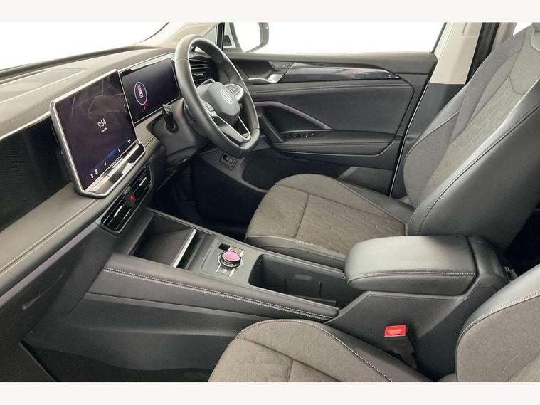 Adaptive cruise control (ACC), Advanced driver attention and drowsiness monitor, Bluetooth mobile phone interface, Car2X technology, Digital Cockpit Pro - 10.25" high resolution dash display screen with customisable menus and information, Dynamic road sign display, E-Sim card for online connectivity, eCall emergency call service, Front Assist - Autonomous emergency braking with pedestrian and cyclist monitoring, Lane change system, Side assist, Rear traffic alert and Exit warning system, Lane keeping system Lane Assist, Multifunction front facing camera, Oncoming vehicle braking when turning including swerve support, Park assistance plus with front and rear parking sensors, Power assisted steering with speed sensitive, Start/stop system with regenerative braking, Warning signal and warning light for front and rear seatbelts not fastened, Wireless App-Connect, Front wheel drive, Digital radio reception (DAB), Diversity antenna for FM reception, Ambient lighting with logo projection, Auto dimming interior rear view mirror, Automatic headlight control system, Body coloured bumpers and air intake with chrome trim, Body coloured door handles, Body-coloured exterior mirror housings, Coming/leaving home lighting function, Heat insulating glass in side and rear windows, Heat insulating windshield, Heated rear window, High level 3rd brake light, Illuminated door handle recesses, Illuminated lightline between headlamps, Rain sensor windscreen wipers, Rear fog light on one side, reversing light on both sides, Rear side wing doors, Rear wiper, 12V outlet in center console rear and in luggage compartment, 12V socket in centre console, 3 bench rear seats in 2nd row, Air care climatronic 3 zone air conditioning system with rear air conditioning control panel, Carpet mats, front and rear, Centre console with illuminated storage compartment with sliding cover and two drinks holders, Ceramique headlining, Door and side trim panel in foam film and woven fabric, Front centre armrest, ISOFIX anchors for child seats on outer rear seats and front passenger seat compatible with i-Size, Mechanical rear seat release, Power adjustable lumbar support in front, Rear bench seat, split folding, longitudinally movable and folding with load-through hatch and centre armrest, Safety optimised front head restraints, Single front passenger seat, Sun visors with illuminated vanity mirrors, Three rear head restraints, Variable luggage compartment floor, Comfort package with park assist plus and Safelock - Tiguan, Design package - Tiguan, 3 point seat belt for centre rear seats, 3 Point seat belts in front with pretensioners, 3 point seatbelts in outer rear with ECE label, Driver and front passenger airbag with front passenger airbag deactivation, Electronic parking brake with auto hold, Front and rear curtain airbags, Front and rear side airbags, Front centre airbag, Front disc brakes, Manual child proof rear door locks, Rear disc brakes, Two tone horn, Warning triangle, Anti theft wheel bolts, Soul instrument panel,