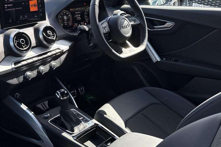 3D map display, Audi connect navigation and infotainment includes innovative services, Audi connect remote and control connects your vehicle to your smartphone, Audi drive select: S tronic - power steering assistance + engine + gearshift (modes: comfort, auto, dynamic, efficiency, individual), Audi smartphone interface - Apple carplay/Android Auto, USB connect, 2xSDXC card readers, voice control for navi, telephone, music and 3rd party apps, Audi virtual cockpit, Automatic start/stop system with recuperation, Bluetooth interface includes bluetooth audio streaming, Camera based traffic sign recognition, Cruise control, Distraction and Fatigue warning, E-call, Jukebox hard drive memory for music (10GB), Lane departure warning, MMI navigation plus with 8.8" touchscreen, Natural voice recognition, Power operated tailgate, Progressive steering, Rear parking sensors, Sport suspension, 6 passive loudspeakers, DAB Digital radio, USB type C port, Audi beam, Auto dimming rear view mirror, Black window trims, Bumper in full body colour paint finish, Electrically adjustable, folding, auto dimming and heated door mirrors with integrated LED side indicators, Front windscreen with grey tinted sunband, LED daytime running lights, LED headlights with dipped beam, high beam, position lights, indicators, LED rear lights, LED third brake light, Privacy glass - dark tinted rear and rear side windows from B-pillar backwards, Rear side wing doors, Rear wiper, Variable front intermittent wipers, Wheel arch trims in manhattan grey, 12V socket in front, 3 seat bench in 2nd row, 3 spoke flat bottomed multi-function leather sport steering wheel with gear shift paddles with S logo, 4-way electric lumbar support for front seats including manual seat height adjustment for both front seats, 60/40 split folding rear seat bench, Black carpets, Black cloth headlining, Front and rear head restraints, Front centre armrest, Front sport seats, Front/rear floor mats, Height/reach adjust steering wheel, Illuminated door sill trims with S logo, ISOFIX child seat mounting in front passenger and rear outer seats, Manual air conditioning, Single front passenger seat, Stainless steel pedals, Black styling pack - Q2, 3x3 point rear seatbelts, 6 airbags - Front, curtain and front side airbags, Electromechanical parking brake, Electronic stabilisation control including ABS, ASR and EDL, Front passenger airbag deactivation, Hill hold assist, Pre-sense front with pedestrian recognition, Seatbelt monitoring, Tyre pressure warning light with visual and acoustic warning, Warning triangle and first aid kit, Anti theft wheel bolts, Electronically operated child locks, Remote central door locking, Thatcham category 1 alarm, Aluminium interior element, Black dashboard, Gloss black centre console, Matt brushed aluminium trim inlays, Tool kit,