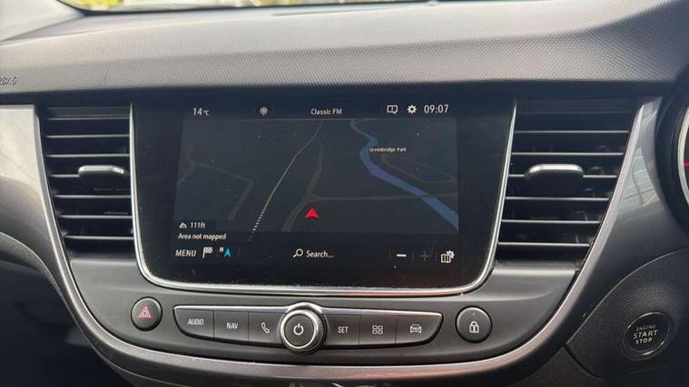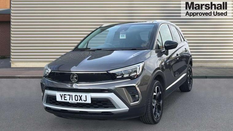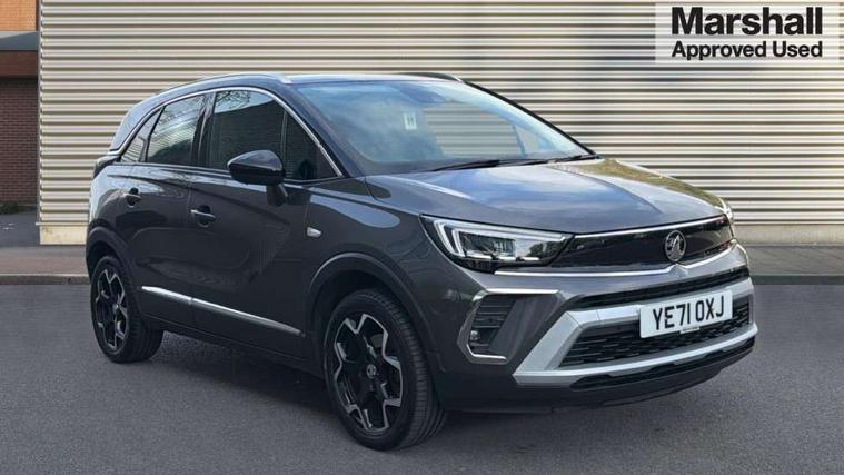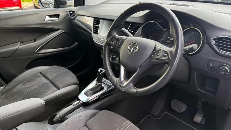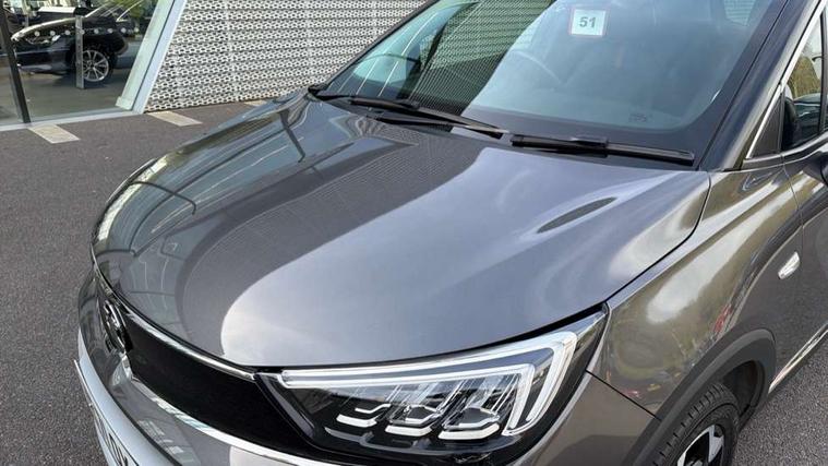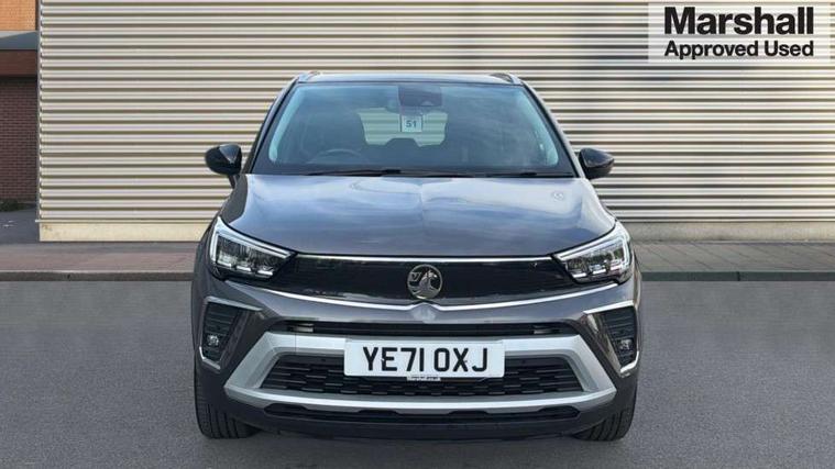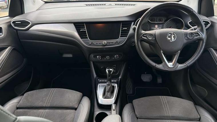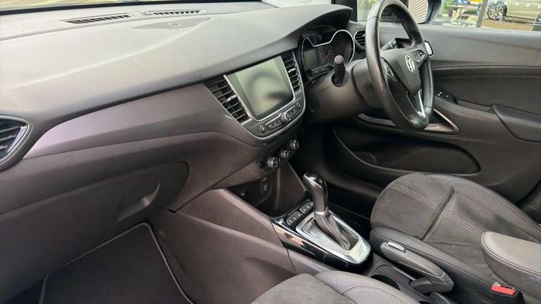 3.5" monochrome instrument colour display, Audible lights on warning, Bluetooth connectivity, Cruise control + speed limiter, Digital clock with automatic RDS time adjustment, eCall emergency call system, Instrumentation - Speedometer, rev counter, low fuel gauge warning light + water temperature gauge warning light, shift up/down indicate light, Lane departure warning system, Multi function trip computer, Multimedia sat nav pro with 8" colour touchscreen, AM/FM, Bluetooth streaming, Bluetooth mobile phone portal, apple CarPlay/Android Auto + 6 speakers, Outside temperature display with ice warning, Refridgerant low indicator, Service interval indicator, Speed sensitive power steering, Speed sign recognition, Without wireless charger, Front wheel drive, 2 x USB connections, DAB Digital radio, Steering wheel mounted audio/phone/cruise controls, 2 speed wipers/wash wipe/intermittent wipe, 3rd brake light, Alloy effect front and rear skid plates, Automatic anti dazzle rear view mirror, Automatic headlamp levelling system, Automatic high beam control with cornering light, Automatic lighting control, Black radiator grille with chrome bar, Body colour door handles, Body colour front and rear bumpers, Chrome effect upper window moulding, Dark tinted rear side windows + tailgate window, Electrically adjustable and heated door mirrors, Front power windows with express up/down and anti-pinch function, Hazard warning lights, Headlamps for left side traffic, Heated rear window, Integrated tailgate spoiler, Intermittent rear wash/wipe, LED daytime running lights, LED front fog lights, LED Headlights, LED side repeat indicators, Rain sensitive windscreen wipers, Rear fog lights, Rear power windows with express up/down and anti-pinch function, Rear side wing doors, Rear wing door, Reversing light, Side window demist vents, Silver effect side door mouldings, Silver roof rails, Silver skid plates - painted, Solar heat absorbing windscreen and windows, Two tone molding rocker with door side inserts in chroms, Welcome lighting, Windscreen demist vents, Without LED rear lights, 12v power outlet - front, 12V power outlets on rear seat, 2 way front passive headrests, 3 seat bench in 2nd row, 3 spoke flat bottomed leather covered steering wheel with bezel decoration, 4 way electrically adjustable lumbar support for drivers seat, 4 way electrically adjustable lumbar support for front passenger seat, Adjustable rear seat backrest, Air recirculation facility, Alcantara suede/vinyl upholstery, Ambient lighting, Anti submarining ramps in front seats, Cabin particulate filter - removes dust, airborne particles and pollen, Driver and front passenger illuminated vanity mirrors with flip up covers, Dual zone electronic climate control, Ergonomic active front seats with 8 way manual adjustable driver and front passenger seats with height, reach, and backrest, Fade up/fade down on interior lighting, Four adjustable facia vents, Front door pockets with bottle holders, Front map reading lights, Front passenger seat, Fully carpeted luggage area, Glovebox with lid, Height adjustable front/rear head restraints, Illuminated load area, Interior courtesy light operated by all doors, Isofix system on outer rear seats, Jet black premium leather side bolsters, Luggage compartment cover, Multi-speed fan with Illuminated control, Open storage compartment in centre console, Passenger assist handles, Reach + rake adjustable steering column, Rear door pockets with bottle holders, Rear floor ventilation ducts, Rear reading lights, Satin chrome effect bezel on steering wheel, Seat cushion extension, Sliding 60/40 rear seat with centre rear seat armrest, Storage pockets on front seat backs, Two drinks holders in centre console, Uplevel centre console front centre armrest with storage, Rear view camera plus pack - Crossland, Versatility pack - Crossland, Winter pack - Crossland, 3x3 point rear seatbelts, 6 airbags - Driver and co-driver front, front side, head curtain roof airbags, front and rear row coverage airbags, ABS, Child locks on rear doors, CSC - Cornering stability control, Deactivate switch for side impact airbags, Deformation zones front and rear, Dual seatbelt pretensioners on front seats, EBD - Electronic brakeforce distribution, Energy absorbing steering column, Engine drag torque control, ESP + traction control, Front and rear seatbelt unfastened audible warning and warning light, Front side impact airbag, HBA (Hydraulic Brake Assist), Hill start assist, Hydraulic brake boost, Inertia reel lap and diagonal seatbelts for all seats, Passenger airbag deactivate switch, Rear seat belt pretensioners, Reinforced passenger safety cell, Seatbelt load limiter, Side impact protection beams, Smart seatbelt reminder for front and rear seats, Tyre pressure monitoring system, 2 remote folding keys, Electronically protected audio equipment, Engine immobiliser, Keyless entry and start, Locking wheel nuts, Remote central deadlocking, Remote control central locking activation switch on driver door, Remote control central locking operates on doors, tailgate and fuel filler flap, Remote security alarm system, Visible vehicle identification number, Black facia with silver trim insert, Black trim inserts on front doors, Cluster black with chrome rings, 17" five twin spoke diamond bi colour alloy wheels,