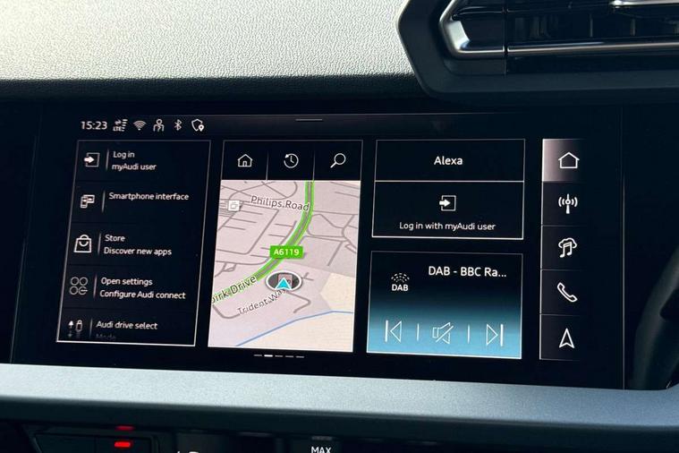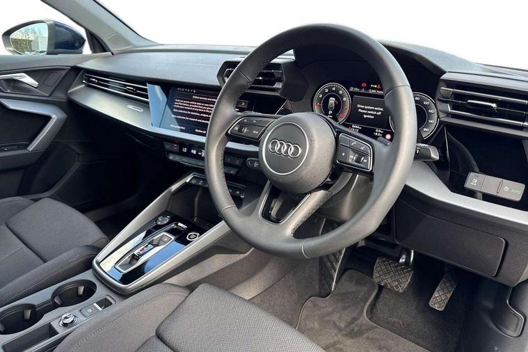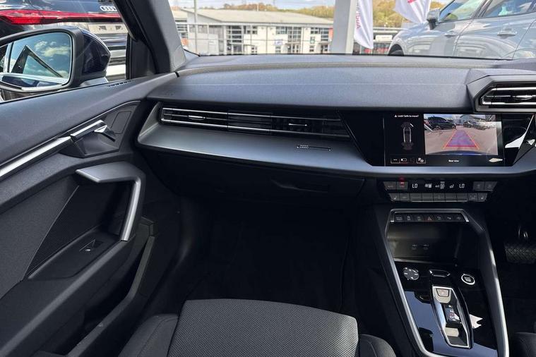 Adaptive cruise control (ACC), Adjustable speed limiter, Audi drive select (Auto, Comfort, Dynamic, Efficiency and Individual), Audi virtual cockpit plus - 12.3" full HD resolution dynamic digital instrument cluster, Automatic start/stop system with recuperation, Bluetooth interface, Camera based traffic sign recognition, Collision avoidance assistant, Driver attention and fatigue detection, e-Call (emergency call), Electromechanical power speed sensitive steering, Emergency assist, Intersection assist, Lane departure warning system, MMI Navigation Plus with high resolution 10.1" colour touch screen display, Park Assist with parking system Plus, Reversing camera, Service indicator, Smartphone interface with app store includes wireless Apple carplay, Android auto and Amazon alexa integration, Trip computer, Voice control system with natural language interaction, Standard suspension, Audi Phonebox light with wireless charging, Audi sound system - 10 loudspeakers including centre loudspeaker and subwoofer, DAB Digital radio, USB ports with charging function in the rear, 3rd brake light, Acoustic glass windscreen, Aluminium window trim, Auto dimming frameless rear view mirror, Body colour exterior mirrors, Body colour roof spoiler, Electrically adjustable/heated/folding/auto dimming door mirrors with integrated LED indications + kerb view function for passenger side, Exterior model badging, Front electric windows, Front radiator grill in high gloss dark chrome, Front side air inlets in grained matt black with silver frame, Heat insulating glass windscreen, LED daytime running lights, LED headlights and halogen rear lights, Light and rain sensors, Rear diffuser and grill in grained matt black with silver frame, Rear electric windows, Rear side wing doors, Rear window, rear door windows and rear side windows in clear glass, Rear wiper, 12V socket and storage compartment in front centre console, 3 seat bench in 2nd row, 3 spoke leather multifunction steering wheel with gear shift paddles, 3-zone deluxe automatic air conditioning, 4 way electrically adjustable lumbar support for driver and front passenger, 60/40 split folding rear seat bench, Black front and rear floor mats, Front and rear headrests, Front centre armrest, Front door sill trims with aluminium inlay, Heated front seats, Height and reach adjustable steering wheel, i-Size child seat mounting on the front passenger side and outer rear seats, i-Size and top tether on the outer rear seats, Manual boot compartment lid, Manually adjustable front seats, Routine cloth upholstery with front sports seats, Seat side bolsters, Single front passenger seat, Steel grey cloth headlining, Aluminium interior elements pack - A3, LED interior lighting pack -A3, 3x3 point rear seat belts, Driver and front passenger airbag with passenger airbag deactivation, Electronic Stabilisation Control (ESC) including ABS, ASR and EDL, First aid kit with warning triangle and 2 safety vests, Front side airbags with head airbags and interaction airbag, Hill hold assist, Pre-sense front with pedestrian and cyclist detection, Seatbelt monitoring, Tyre pressure loss indicator, Anti theft alarm, Anti-theft wheel bolts, Electronically operated child locks, Immobiliser, Black dashboard, Inlays in volcano grey fine paint finish,