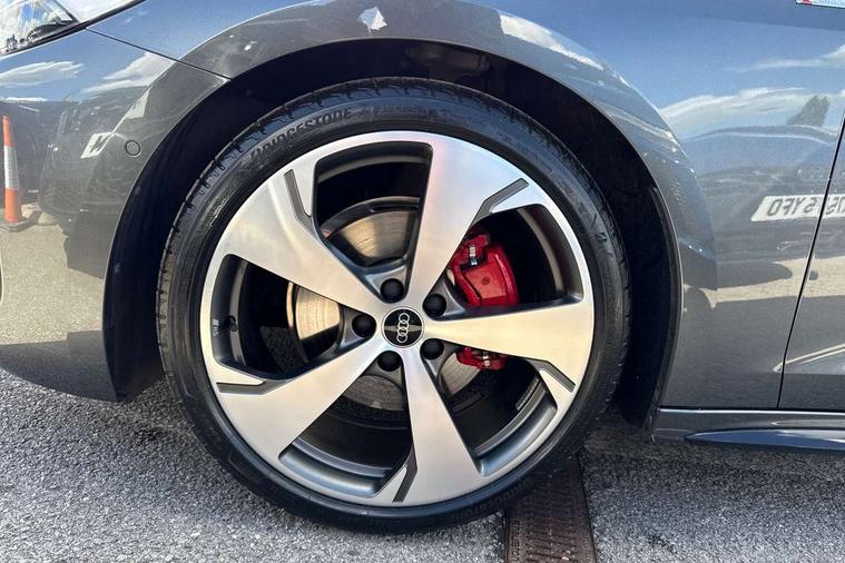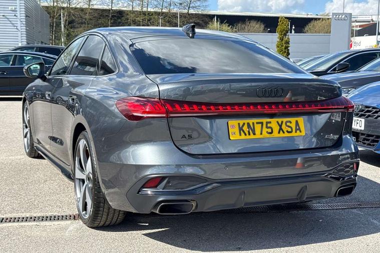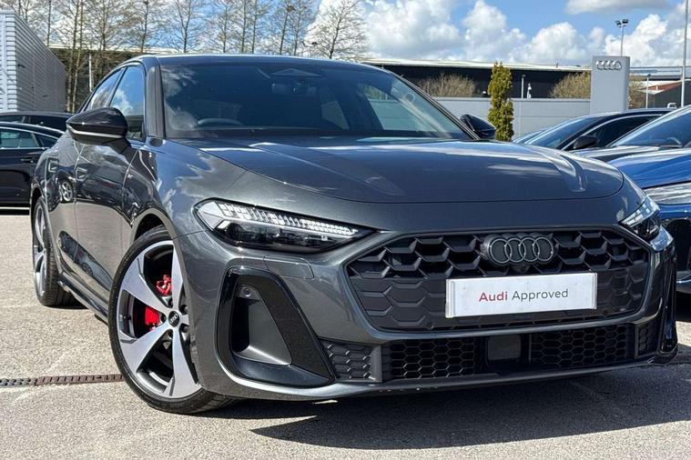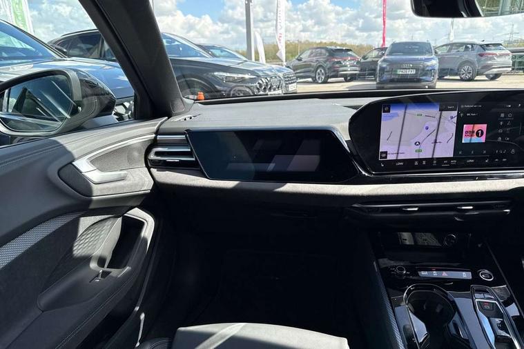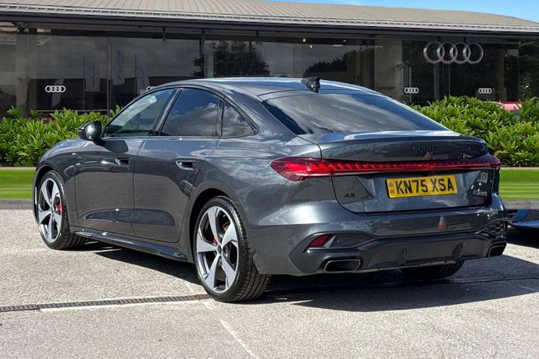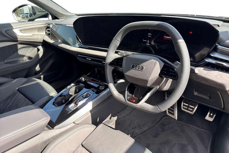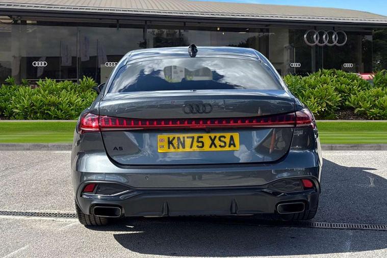 Adaptive cruise control, Advanced driver attention and fatigue montior, Audi application store, Audi assistant, Audi connect emergency call and service, Audi drive select, Audi virtual cockpit plus with 11.9" OLED colour display, Automatic start/stop system with coasting functionality, Camera based traffic sign recognition, Intersection assist, Lane change assistant with exit warning system, rear cross traffic alert and rear turn assist, Lane departure warning with emergency assist, MMI 10.9" front passenger touch display, MMI navigation plus with high resolution 14.5" OLED touchscreen colour display, Park assist plus, Parking system plus with 360 display, Progressive steering with servotronic, Smartphone interface, Swerve assist and turn assist, Top view camera, Traffic sign based speed limiter, Sports suspension lowered by 20mm, 2 USB-C ports in both the front and rear, Audi sound system impressive sound with 8 loudspeakers including centre speaker and subwoofer, 6-channel amplifier with a total output of 180 watts, DAB digital radio reception, Smartphone compartment with wireless charging, Aluminium window trims, Auto dimming rear view mirror, Black door handles, Dark chrome-plated tailpipe trims, Door mirrors - electrically adjustable, heated, folding and auto dimming on both sides, Front and rear electric windows, Front door sill trims with aluminium inlays, illuminated with 'S' logo, Headlight cleaning system, High beam assist, LED daytime running lights, LED rear lights pro incl. dynamic rear indicators and illuminated light strip with animated coming and leaving home function, LED third brake light, Matrix LED headlights with eight light signatures selectable via the MMI or the myAudi app, Privacy glass, Rear and side windows with heat insulating glass, Rear boot, Rear side wing doors, S Line badges on the front wings, S line bumpers, radiator grille and diffuser in phantom black and diffuser insert in matt anthracite, White rhombus logo projection light in exterior mirrors, Windscreen with acoustic glazing, 3 rear headrests, 3 seat rear bench, 3 spoke leather steering wheel with multi-function buttons with touch control, flattened on top and bottom, with S badging and contrast stitching, 3-zone automatic climate control, 40:20:40 split folding rear seat bench with centre armrest and cup holders, Comfort front centre armrest, Electrically adjustable front seats, Front and rear floor mats, Front sport seats with integrated headrest and S embossed logo, Headlining in black cloth, Heated front seats, i-Size child seat mounting on the front passenger side and outer rear seats, i-Size and top tether on the outer rear seats, Luggage compartment lid, electrically opening and closing, Manual steering column height and depth adjustment, Memory function for driver seat, Single front passenger seat, Stainless steel pedals and footrest, Steering wheel grips in perforated leather and shift paddles, Ambient lighting package plus - A5, Black styling package plus - A5, 3x3 point rear seat belts, Acoustic vehicle alerting system, Convenience key with safelock, Driver airbag, Electric child safety locks, First aid kit with warning triangle and vests, Front emergency brake assist, Front passenger airbag, Front passenger airbag deactivation, Hill hold assist, Occupant detection in rear seat area, Proactive passenger protection system for front, sides and rear, Red brake calipers, Seat belt monitoring with rear seat occupant reminder, Side airbags in front and rear with head airbag system and front interaction airbag, Tyre pressure loss indicator, Anti theft alarm, Anti-theft wheel bolts, Keyless Go, Accent surfaces and control buttons in gloss black, Black dashboard with contrast stitching, Softwrap in Dinamica with contrast stitching, Upper and lower interior elements in dinamica microfiber, 20" 5 arm fold design Audi sport alloy wheels in silk matt grey and gloss turned finish, Tyre repair kit,