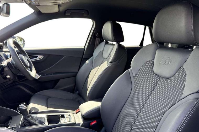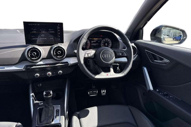 3D map display, Audi connect navigation and infotainment includes innovative services, Audi connect remote and control connects your vehicle to your smartphone, Audi drive select: S tronic - power steering assistance + engine + gearshift (modes: comfort, auto, dynamic, efficiency, individual), Audi smartphone interface - Apple carplay/Android Auto, USB connect, 2xSDXC card readers, voice control for navi, telephone, music and 3rd party apps, Audi virtual cockpit, Automatic start/stop system with recuperation, Bluetooth interface includes bluetooth audio streaming, Camera based traffic sign recognition, Cruise control, Distraction and Fatigue warning, E-call, Jukebox hard drive memory for music (10GB), Lane departure warning, MMI navigation plus with 8.8" touchscreen, Natural voice recognition, Power operated tailgate, Progressive steering, Rear parking sensors, Sport suspension, 6 passive loudspeakers, DAB Digital radio, USB type C port, Audi beam, Auto dimming rear view mirror, Black window trims, Bumper in full body colour paint finish, Electrically adjustable, folding, auto dimming and heated door mirrors with integrated LED side indicators, Front windscreen with grey tinted sunband, LED daytime running lights, LED headlights with dipped beam, high beam, position lights, indicators, LED rear lights, LED third brake light, Privacy glass - dark tinted rear and rear side windows from B-pillar backwards, Rear side wing doors, Rear wiper, Variable front intermittent wipers, Wheel arch trims in manhattan grey, 12V socket in front, 3 seat bench in 2nd row, 3 spoke flat bottomed multi-function leather sport steering wheel with gear shift paddles, 4-way electric lumbar support for front seats including manual seat height adjustment for both front seats, 60/40 split folding rear seat bench, Black carpets, Black cloth headlining, Front and rear head restraints, Front centre armrest, Front sport seats, Front/rear floor mats, Height/reach adjust steering wheel, Illuminated door sill trims with S logo, ISOFIX child seat mounting in front passenger and rear outer seats, Manual air conditioning, Single front passenger seat, Stainless steel pedals, Black styling pack - Q2, 3x3 point rear seatbelts, 6 airbags - Front, curtain and front side airbags, Electromechanical parking brake, Electronic stabilisation control including ABS, ASR and EDL, Front passenger airbag deactivation, Hill hold assist, Pre-sense front with pedestrian recognition, Seatbelt monitoring, Tyre pressure warning light with visual and acoustic warning, Warning triangle and first aid kit, Anti theft wheel bolts, Electronically operated child locks, Remote central door locking, Thatcham category 1 alarm, Aluminium interior element, Black dashboard, Gloss black centre console, Matt brushed aluminium trim inlays, Tool kit,
