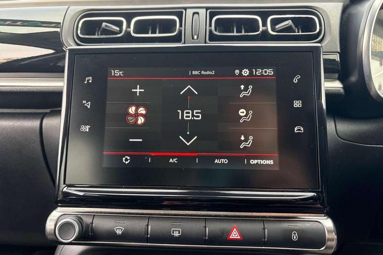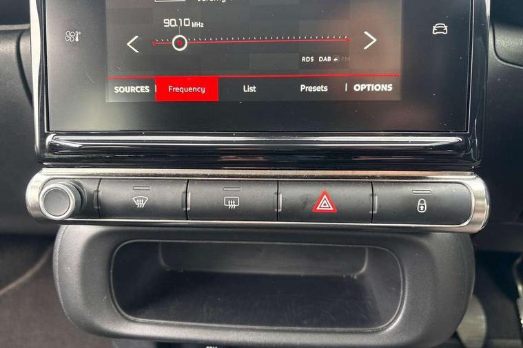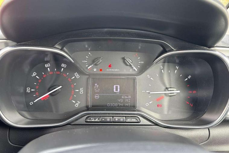 7" colour touch screen, Citroen connected CAM with automatic lights and wipers, electrochrome rear view mirror, Coffee Break Alert, Cruise control + speed limiter, Exterior temperature display, Gear efficiency indicator, Lane departure warning system, Mirror screen with mirror link, apple carplay and android auto, Multi function on board trip computer, Rear parking sensor, Rev counter, Reversing camera, Speed limit recognition and speed warning, Traffic sign recognition, Variable assistance power steering, Auxiliary input socket, Bluetooth hands free and media streaming, Citroen connected DAB radio with 6 speakers, Steering wheel mounted audio controls, Airbump coloured highlight, Body colour bumpers, Dark tinted rear windows, Electric adjustable/heated/folding door mirrors, Electric front windows + one touch + anti-pinch, Electric rear windows + anti-pinch, Front fog lights, Height adjustable halogen headlights, LED daytime running lights, Rear wiper, Roof colour fog light surround, Wheel arch extensions, 12 volt socket in cabin, 2 rear isofix mounting points (outside seats) with top tether, Automatic air conditioning, Boot light, Driver and passenger's sun visor with courtesy mirror, Front courtesy reading lights, Front cupholders x 2, Front seat and rear pockets, Height adjustable driver's seat, Height adjustable front headrests, Height/reach adjust steering wheel, Lashing eyelets in boot, Luggage style interior door handles, Rear cupholder, Soft-touch plastic gear knob, Split folding rear seats, Three height adjustable rear head restraints, ABS with Electronic brakeforce distribution and Emergency braking assistance, Airbags - Driver/front passenger, front lateral and curtain, Drivers/passengers and rear seats unfastened seat belt warning, Electric child locks, Electronic stability control, Five 3 point inertia reel seat belts, Front seatbelt pretensioner, Hill start assist function, Tyre pressure monitor, Alarm, Immobiliser, Locking wheel nuts, Remote central locking + deadlocks, Space saver spare wheel,