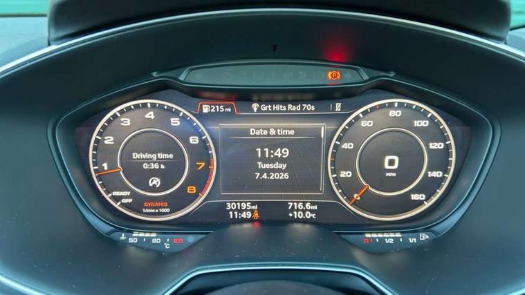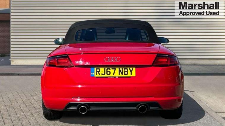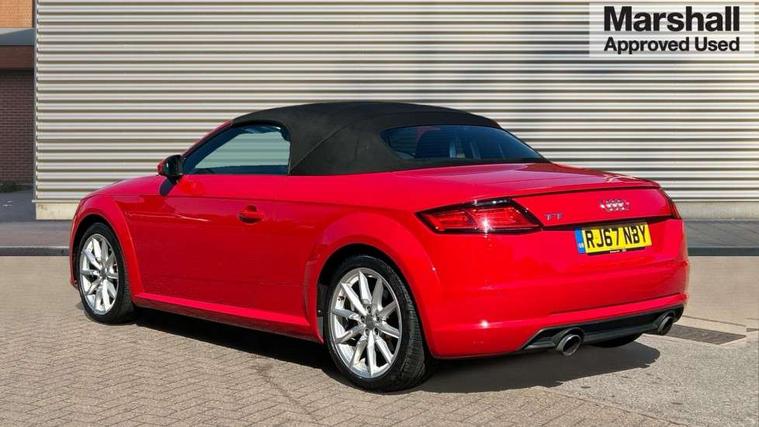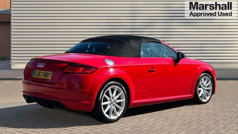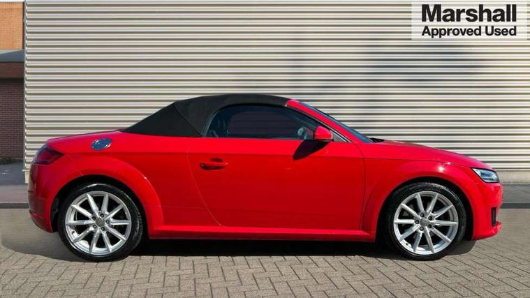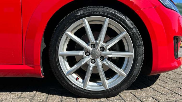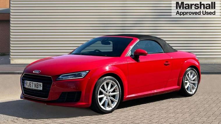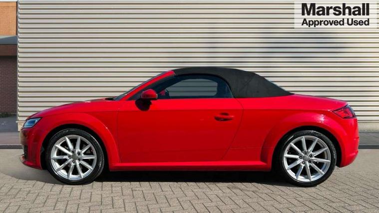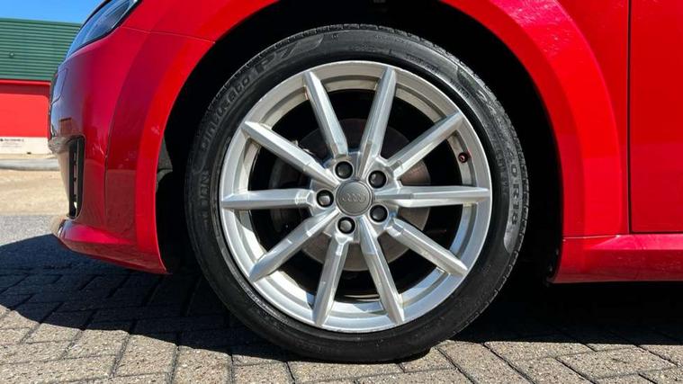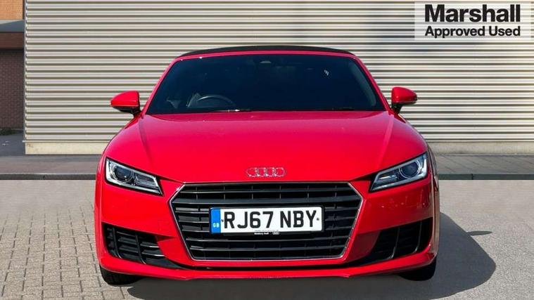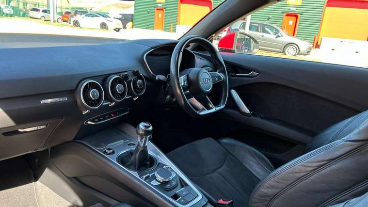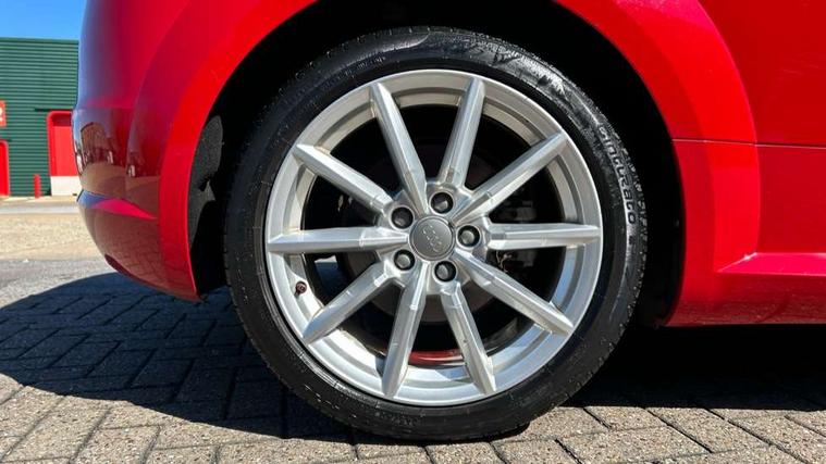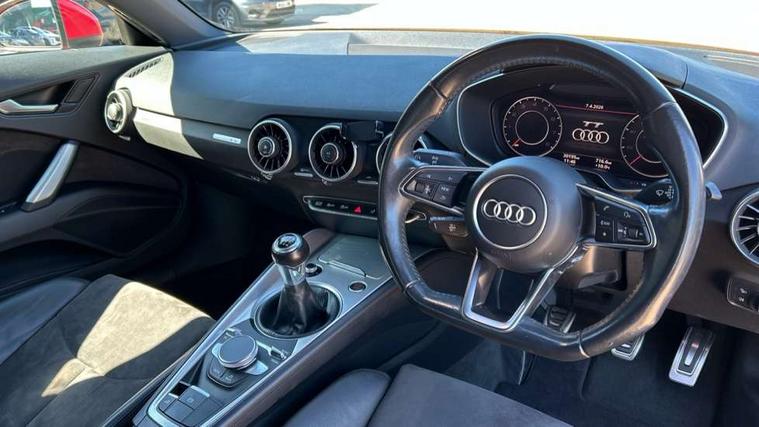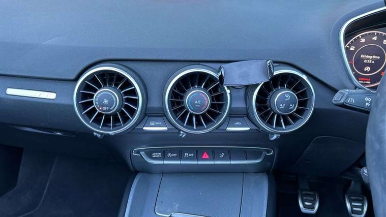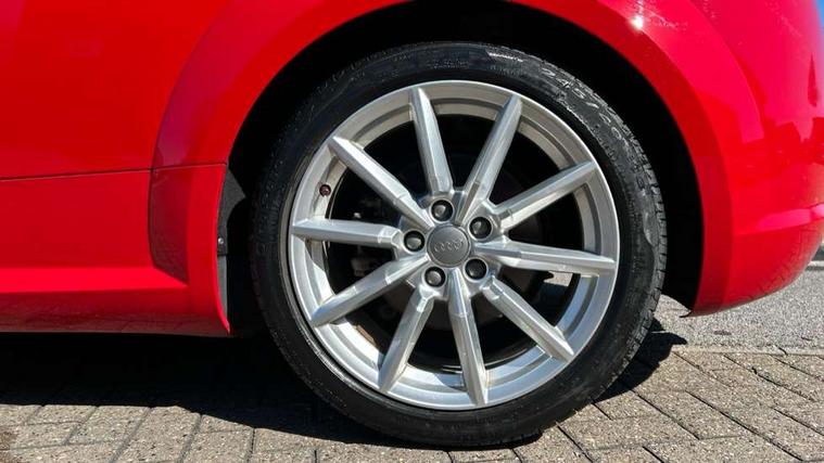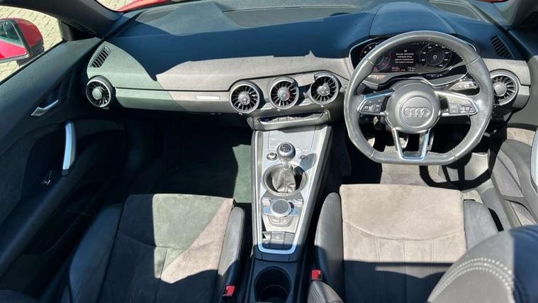 Audi drive select, Audi virtual cockpit - 12.3" high-resolution LCD display with fully customisable instrument cluster, Cruise control + speed limiter, MMI touch panel, Mobile phone preparation with bluetooth interface, Progressive power assisted steering, Seat belt microphone, Service interval indicator, Sports suspension, Audi music interface, Auxiliary input socket, Bluetooth audio streaming, DAB Digital radio, MMI Radio with CD player and SD/XC card slot, Auto headlight range control, Body colour bumpers, Body colour door mirrors, Electric front windows, Fabric hood - Black, Front fog lights, Fully automatic acoustic hood, Green tinted heat insulating glass, LED daytime running lights, LED rear lights, Retractable rear boot spoiler, Sunband for windscreen, 3 spoke leather multifunction sports steering wheel, Aluminium door sill trims, Black headlining, Extended aluminium look with stainless steel pedals, Front centre armrest, Front head restraints, Front passenger seat isofix location point, Height/reach adjust steering wheel, ISOFIX on outer rear seats, Reading lights, Top tether anchor plate for isofix child seat, Auto dimming rear view mirror with light and rain sensors pack - TT, Non smoking pack - TT/TT RS, 3 point front seat belts, ABS, ASR traction control, Curtain airbags, Driver/Front Passenger airbags, EDL traction control, Electromechanical parking brake, ESP, First aid kit, Front passenger airbag deactivation, Front side airbags, Head airbags, Roll over bars, Seatbelt warning, Tyre pressure warning, Warning triangle, Anti theft alarm, Immobiliser, Keyless start, Locking wheel bolts, Remote central locking, Aluminium interior trim, Tyre repair kit,