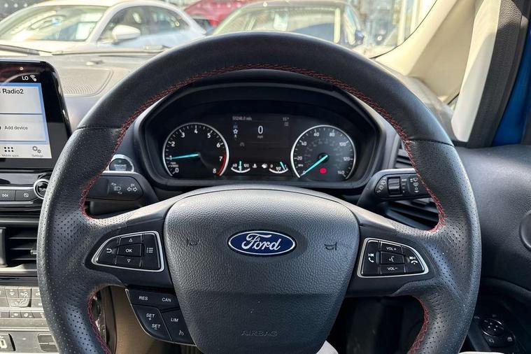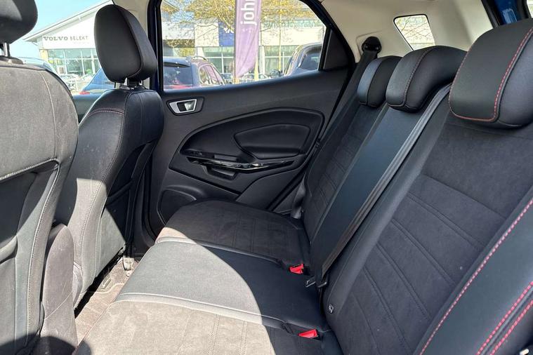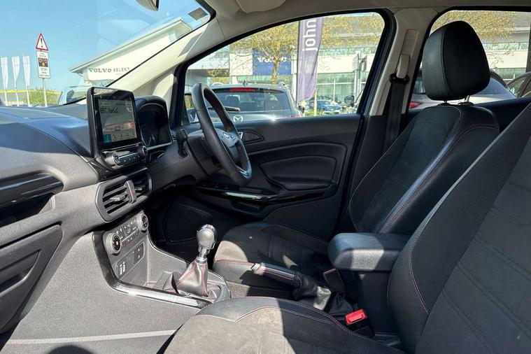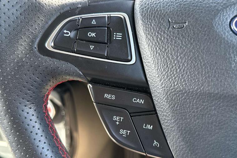 Cruise control, Easy fuel capless refuelling system, PAS, Rear parking sensors and rear view camera, SYNC 3 nav system with DAB radio, 8" touch screen, emergency assistance, Apple car play/Android auto, 2x USB sockets, Trip computer, Voice control system, Sports suspension, Steering wheel mounted audio controls, 'Quickclear' heated windscreen/heated washer jets, Auto dimming rear view mirror, Automatic headlights, Black roof rails, Body colour door handles, Body coloured bumpers, Body styling kit, Electric heated door mirrors, Front fog lights, Headlight levelling control, High gloss black front grille surround, Large rear spoiler, LED daytime running lights, Rain sensor windscreen wipers, Rear wiper, 12V socket in front and rear, 60/40 split rear seats, Ambient interior lighting, Ambient light, Centre console with sliding front armrest, Cooled glovebox, Courtesy lights with map reading light, Driver's side glovebox, Driver/passenger sunvisors and lidded vanity mirrors, EATC - Electronic Auto Temperature control, Folding grab handles, Footwell ambient lighting, Front head restraints, Front seat back map pockets, Front/rear floor mats, Height adjustable drivers seat with lumbar support, Illuminated glovebox, Illuminated luggage compartment, Isofix system on outer rear seats, Leather steering wheel/gearshift/handbrake lever with red stitching, Luggage compartment carpet, Overhead console with sunglasses holder, Part leather upholstery, Rake adjustable rear seats, Reach + rake adjustable steering column, Rear headrests, Stainless steel sports pedals, Steering wheel with chrome inserts, Storage drawers under front seats, Tie down hooks, Variable boot floor, 3x3 point rear seatbelts, ABS, Child locks on rear doors, Curtain airbags, Driver airbag, Drivers knee airbag, Electronic Stability Programme, Emergency brake assist, Front passenger airbag deactivation, Front side airbags, Hill launch assist, Passenger airbag, Seatbelt reminder for driver and front passenger, Traction control, Tyre pressure monitoring system, Immobiliser, MyKey system, Remote central locking, Thatcham 1 volume sensing alarm, Tyre repair kit,