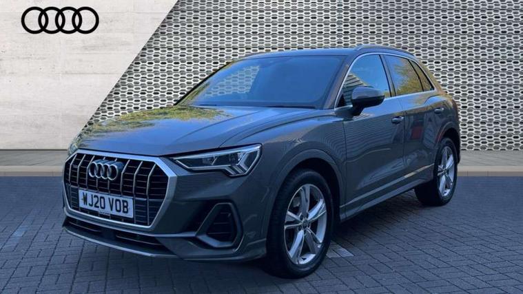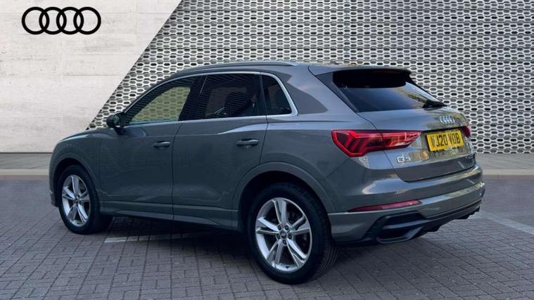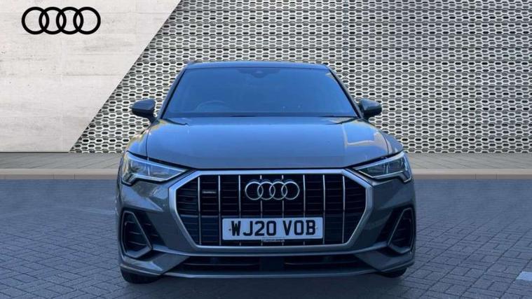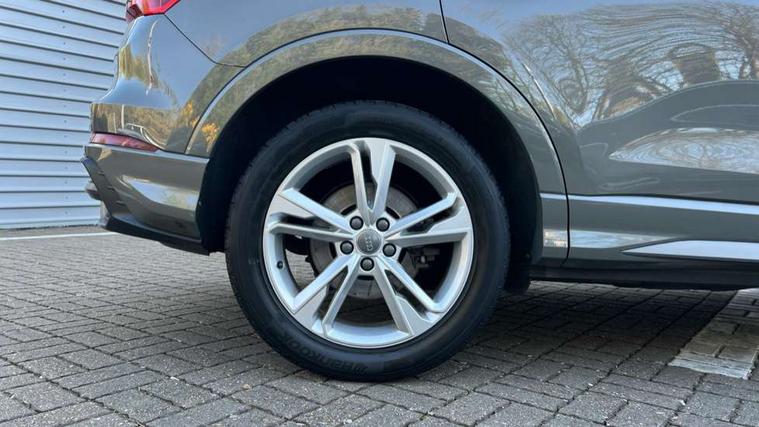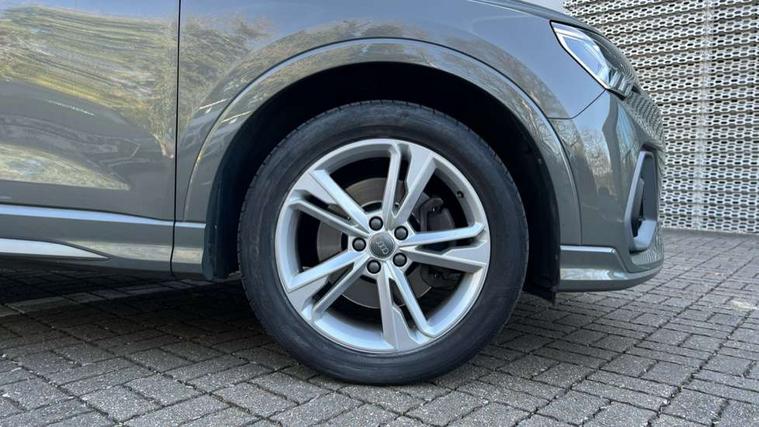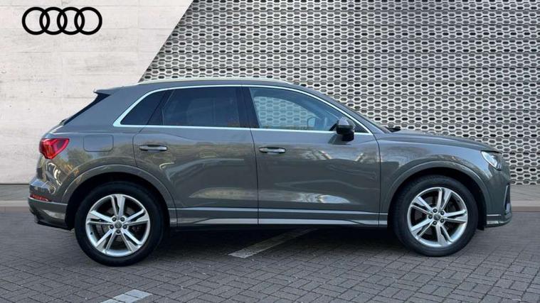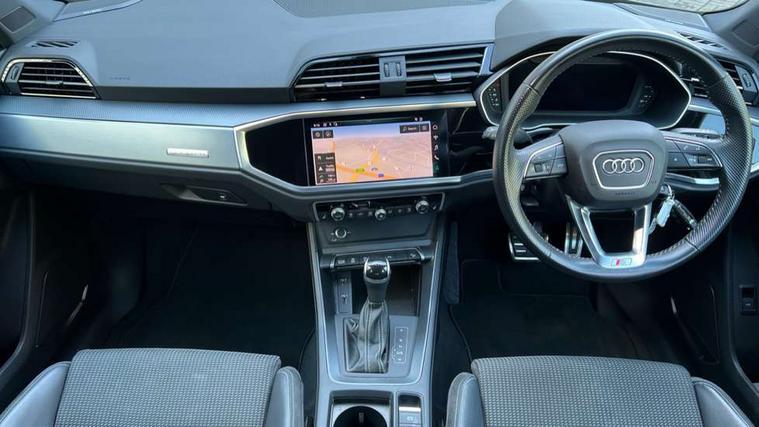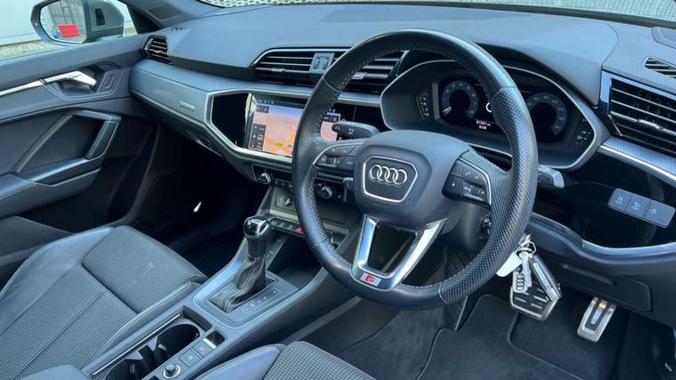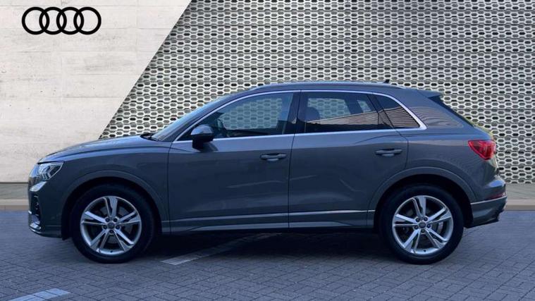 Apple CarPlay, Audi connect safety and service (e-call), Audi drive select, Audi lane departure warning, Audi side assist, Audi smartphone interface, Audi Virtual Cockpit - 10.25" display, Bluetooth interface, Camera based traffic sign recognition, MMI Navigation Plus with high resolution 10.1 inch touchscreen colour display, Power opening/closing tailgate, Progressive steering, Service interval indicator, Start stop system with recuperation, Voice control system with natural language interaction, Sports suspension, 1 x USB type C and 1 USB type A charging points, 6 speakers, DAB digital radio module, Acoustic windscreen, Aluminium roof rails, Aluminium window trim, Auto dimming frameless rear view mirror, Body coloured bumpers, Electrically folding, adjustable and heated door mirrors with integrated LED side indicators and kerb view function for passenger side, Front and rear electric windows, Front fog lights, Front side air inlets in matt platinum grey, Front spoiler blade in matt platinum grey, Grille vertical bars in aluminium silver/Matt, High gloss black finish B and C pillars, LED headlights with LED daytime running lights and dynamic rear indicator, LED rear lights, Privacy glass, Rain and light sensors, Rear diffuser strip in matt titanium black, S Line badge on wings, S Line front and rear bumpers, Side skirt insert in matt Platinium grey, Silver chrome grille surround, Titanium black radiator grille, 12V socket in rear centre console, 40:20:40 split folding rear bench seat, 60:40 forwards/backwards position and backrest angle, Adjustable rear seat bench/backrest with centre armrest and cupholder, Aluminium door sill trims, Black cloth headlining, Dual zone electronic climate control, Front and rear black floor mats with contrast stitching in rock grey, Front and rear headrests, Front and rear roof module including reading lights, Front centre armrest with storage compartment and angle adjustment, Glove compartment lighting, Height and reach adjustable steering wheel, Illuminated door sill trims with S logo, ISOFIX child seat mounting and Top Tether with front passenger airbag deactivation, Luggage compartment light, Manual front seats with height adjustment, Perforated leather gearknob, Stainless steel luggage compartment sill finisher, Stainless steel pedals, Non smoking pack - Q3, 3x3 point rear seatbelts, 6 airbags - Driver, front passenger, curtain and side windows, Electrically operated child locks on rear doors, Electromechanical parking brake, Electronic stabilisation control including ABS, ASR and EDL, Hill descent control, Hill hold assist, Pre sense basic, Seatbelt monitoring, Tyre pressure warning, Warning triangle and first aid kit, Anti theft alarm, Anti theft wheel bolts, Audi pre-sense front with pedestrain and cyclist recognition, Remote central locking, Dark matt brushed aluminium inlay, Leatherette door armrest, MMI touch colour display in gloss black with aluminium surround,