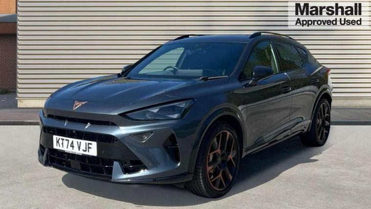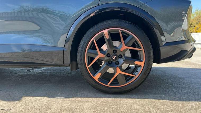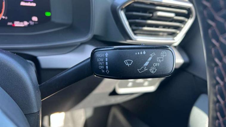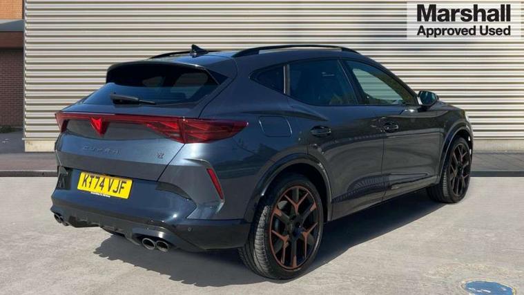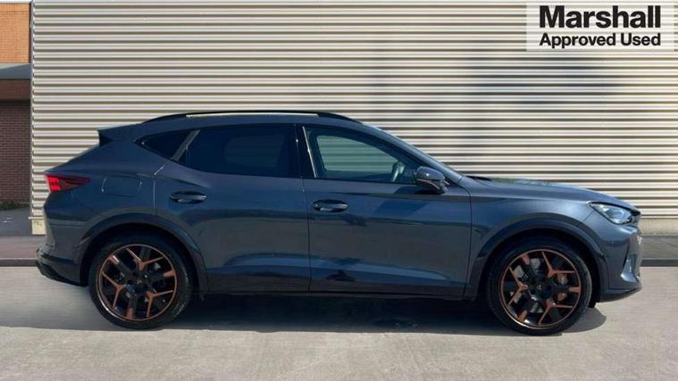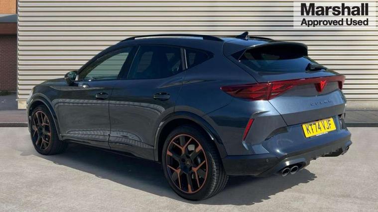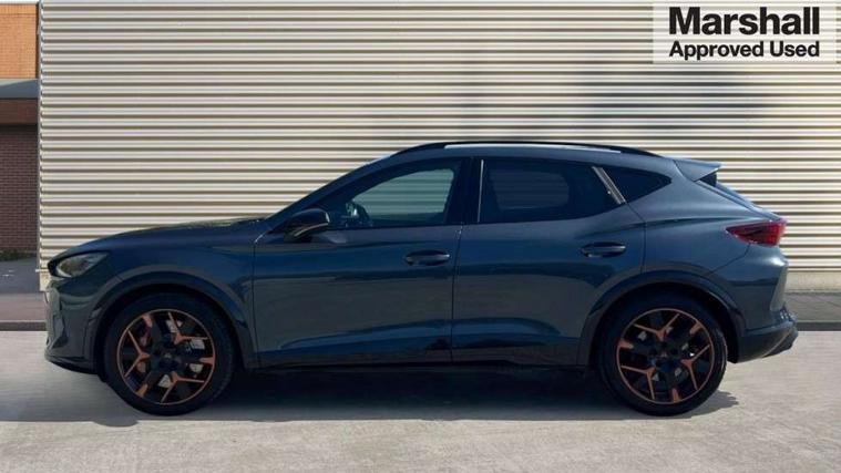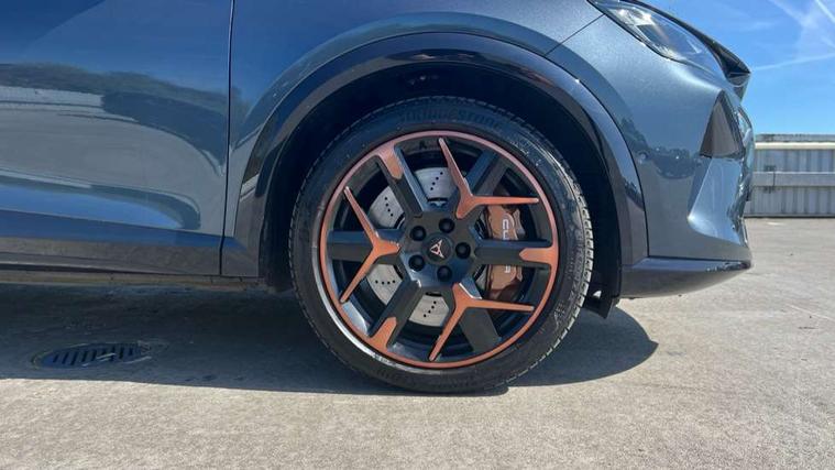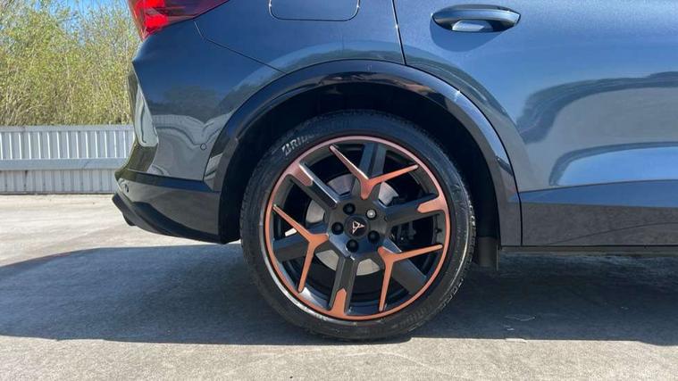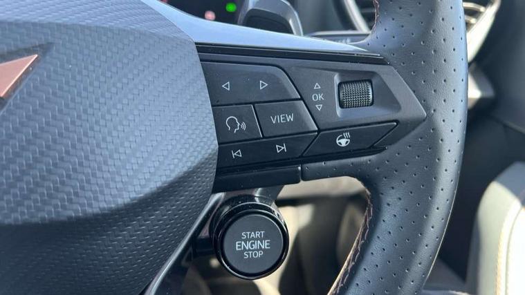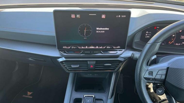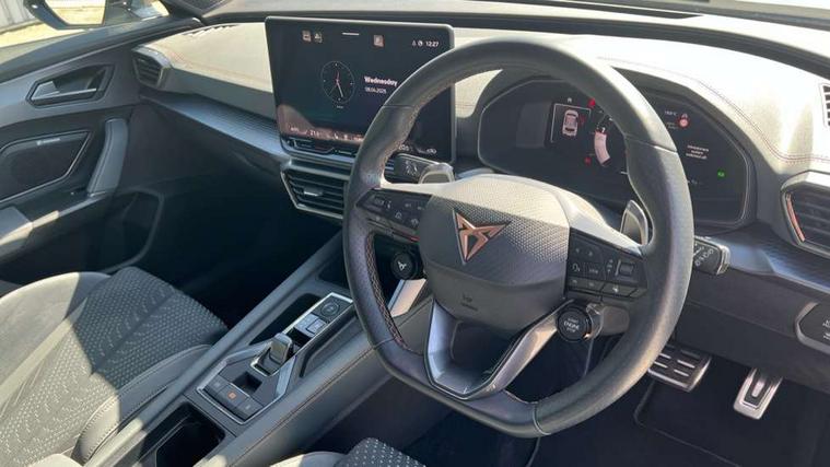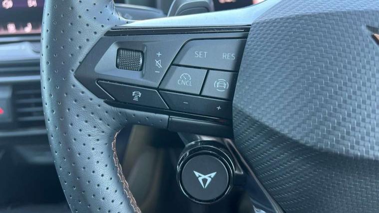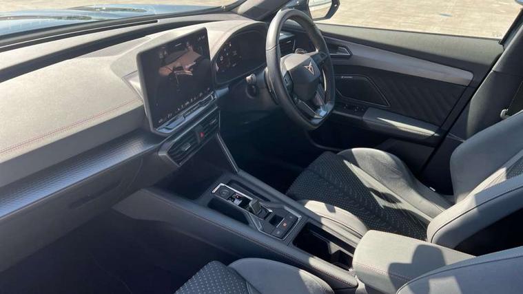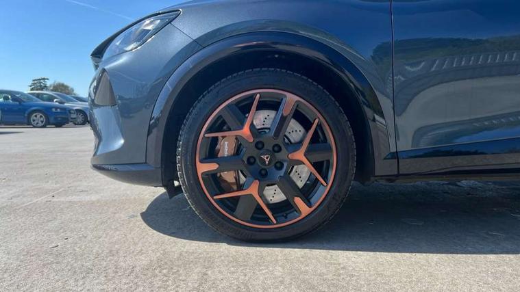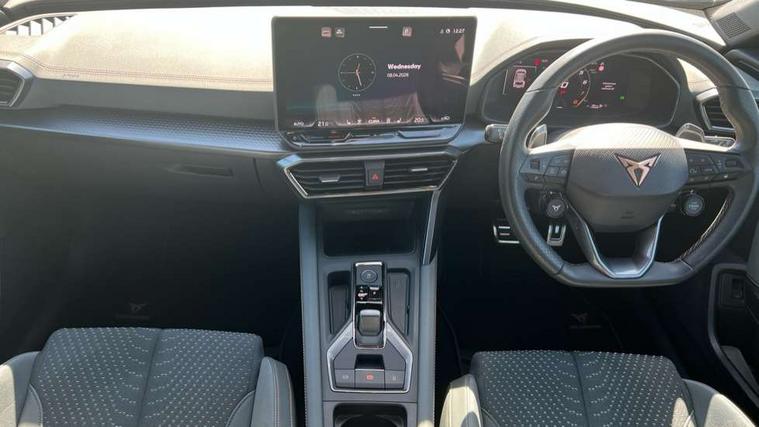 10.25" digital cockpit and configurable dashboard, Adaptive cruise control with follow-to-stop and speed limiter, Advanced driver alert system, Advanced lane assist with semi-automatic vehicle control in a medical emergency and traffic jam assist, Dynamic chassis control with driving profile selection (Comfort, Sport, CUPRA, Individual), Dynamic road sign display, Emergency steering support with turn assist, Forward collision warning with automatic braking, Full link phone integration, Intelligent park assist, RPM, trip computer, outside temp gauge, instrument light brightness, low fuel warning light, lights on reminder, gearshift indicator, Service interval indicator, Side and exit assist, Speed sensitive power steering, Start/stop system with regenerative braking, Top view camera, Virtual pedal and electric tailgate, Voice control system, Wired Android Auto, Wireless apple carplay, Wireless phone charger, Adaptive chassis control with continuous operation, CUPRA sport suspension, Electronic locking differential and dynamic traction support, 2 front and 2 rear USB type C sockets, Immersive by Sennheiser TM - 10 speakers, 1 central speaker, 1 subwoofer, Media system with navigation, 12.9" touchscreen display, voice control, DAB, steering wheel mounted controls, Auto dimming rear view mirror, Black roof spoiler, Body colour door handles, Body coloured bumpers, Dark grey wing mirror, Daytime running light with automatic headlight control and coming home feature, Door panel ambient lighting, Dynamic headlight range control, Electric front/rear windows, Electrically adjustable heated and folding door mirrors with memory function, Gloss black roof rails and window surrounds, High beam assist, LED 3rd brake light, LED front fog lamps with cornering function, LED Taillights with dynamic indicator, Matrix LED headlights with multifunction camera, Rain sensing wipers, Rear diffuser with twin exhaust pipe on each side, Rear fog lights, Rear side wing doors, Rear wash/wipe, Side skirts, Tinted rear windows, Welcome lights (within exterior mirror housing), 12V socket, 2 front and 2 rear reading lights, 3 seat bench in 2nd row, 60/40 split rear bench seat with armrest and mechanical seat release, Black headlining, Black interior roof lining, Cupra sports pedals, Dust/pollen filter, Electrically adjustable front seats with lumbar support and memory function, Front and rear head restraints, Front centre armrest, Heated front seats, Heated supersports multifunction leather steering wheel with satellite buttons and gear shift paddles, Height/reach adjust steering wheel, Illuminated aluminium doorsteps, Illuminated interior front door sills, Illuminated sunvisor with mirror, Isofix, Leather dashboard, door insert and side trim panel, LED smart wraparound lighting, PVC/Textile upholstery + cup bucket seats, Satellite steering wheel, Single front passenger seat, Three zone climate control with control panel in rear, Variable luggage/load compartment floor, 3 point seatbelts on all rear seats, ABS, Akebono brakes, Brake control system - ESC and brake booster, Child proof door locks, Driver and front passenger airbags with front passenger airbag de-activation, Driver and front passenger knee airbag, Electronic parking brake, Hill hold control, Performance brakes with front brembo calipers, Pre-crash front and rear seat belt tensioner, window closure and hazard lights, Public e-call, Seat belt reminder for front and rear seats, Side airbag for front and rear with curtain airbags, Tyre pressure monitoring system, Anti theft alarm system, KESSY Advanced - Keyless start, keyless entry with SAFELOCK, Locking wheel bolts, Copper and aluminium interior detailing, 19" Hailstorm forged machined R black and copper alloy wheels, Breakdown and tool kit,