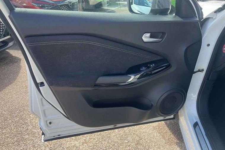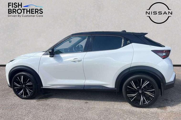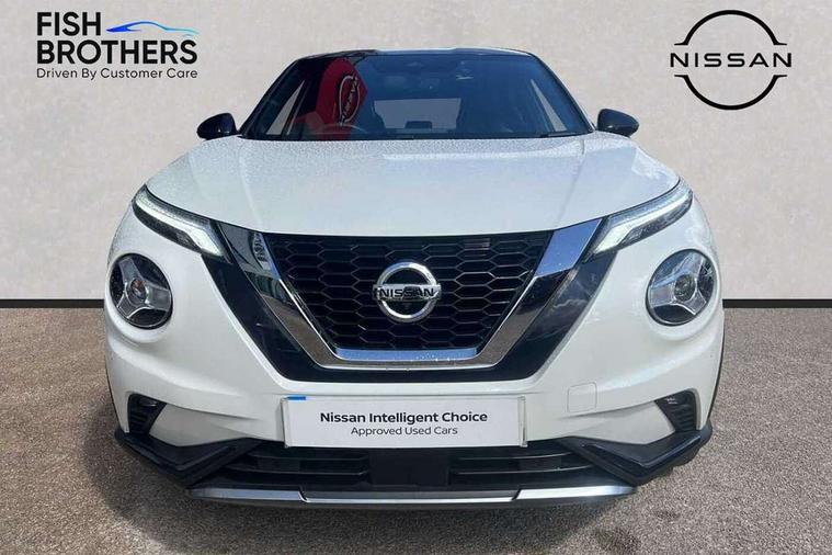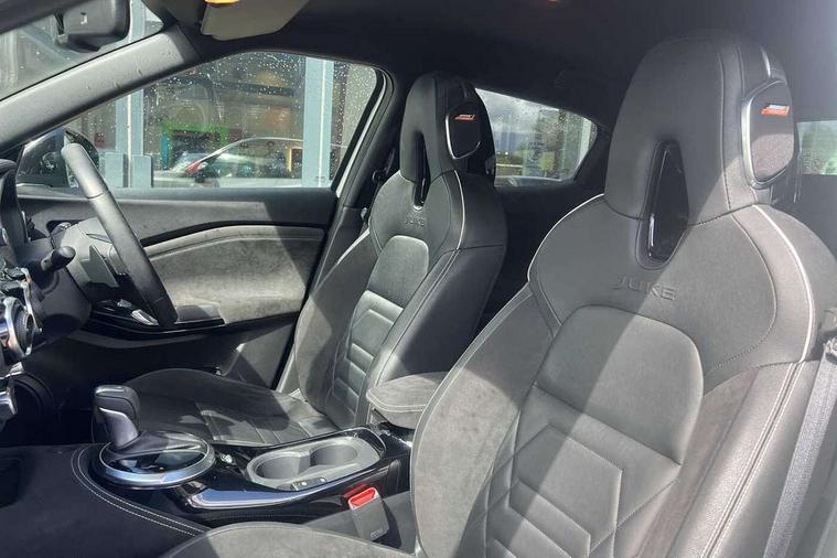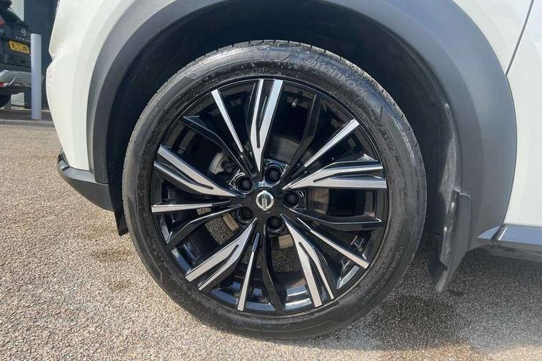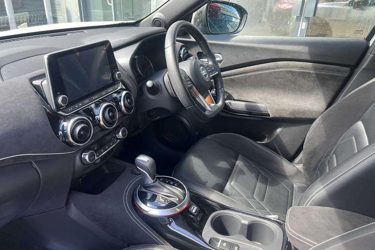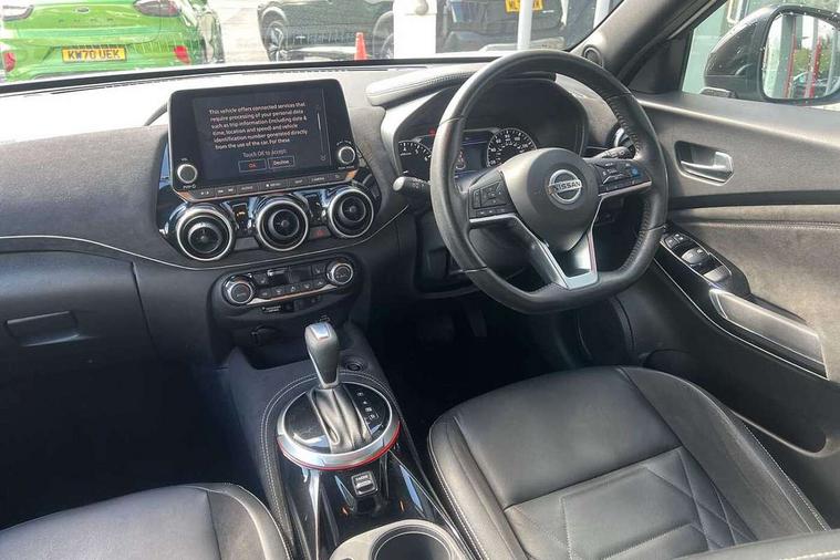 7" full colour TFT screen combimeter, 8" infotainment colour display with touch screen, Apple CarPlay and Google Android auto, Drive modes select (Eco, normal and sport), Emergency and breakdown call, Front parking sensor, Idle start/stop system, Intelligent lane intervention, Lane departure warning system, Nissan connect nav with TomTom traffic, Nissan connect services and Wifi connection, Outside temperature sensor, Power Steering, Rear parking sensor, Traffic sign recognition, Trip computer, Gasoline particulate filter, Bluetooth system, USB, Aux-in and 12V socket, Bose personal plus audio system with 8 speakers(4 speakers and 2 headrest speaker for driver and passenger seats), Bose personal sound stage control, DAB Digital radio, Front lower bumper painted in silver finisher, Rear console USB port, Auto dimming interior rear view mirror, Automatic hazard signal with emergency stop signal, Body colour bumpers, Body colour door handles, Electrically adjustable door mirrors with integrated indicators, Follow me home headlights, Front and rear electric window with one touch driver and passenger window, Heated and auto folding door mirrors, High beam assist, LED daytime running lights, LED front fog lights, LED headlamps, LED rear fog lamp, LED rear lamps, Rain sensor windscreen wipers, Rear privacy glass, Rear spoiler, Rear wiper, Thermaclear heated windscreen, Three blink turn signal, 3 height adjustable rear headrests, 60/40 split folding rear seat, Automatic climate control, Card holder on driver sunvisor, Door ambient lighting, Driver and passenger sliding and reclining seats, Driver seat back pocket, Driver side rear coat hanger, Driver/passenger sunvisors and illuminated vanity mirrors, Front and rear cabin lights, Front armrest, Front door pockets with bottle holders, Front head restraints, Front passenger isofix child seat anchorage point, Front/rear passenger grab handles, Gear console ambient circle lighting, Grey synthetic leather kneepad, Heated front seats, Height adjustable driver's seat, Height adjustable passenger seat, Internal chrome door handles, Leather gearshift knob, Leather steering wheel, Luggage board, Luggage space lighting, Monoform sporty seats, Multifunction steering wheel, Passenger seat back pocket, Rear door bottle holders, Steering wheel mounted gearshift paddles, Telescopic steering wheel adjustment, Two cupholders in front centre console, Two rear isofix child seat anchorage points with top tether, Voice recognition switch on steering wheel, Welcome light and console tray ambient lighting, ProPilot pack - Juke, ABS with EBD and brake assist, Active ride control, Active Trace Control, Driver and passenger airbags, Driver and passenger side airbags, Electric handbrake with auto hold function, Electronic Stability Programme (ESP), Front and rear curtain airbags, Height adjustable seatbelts, Hill start assist, Intelligent emergency braking with pedestrian and cyclist recognition, Seatbelt reminder for driver/front passenger and rear seats, Single tone horn, Three 3 point rear seatbelts, Traction control, Tyre pressure monitoring system, VDC Dynamic Vehicle Control, Ventilated rear brake discs, Alarm, Immobiliser, Intelligent Key with push button starter, Remote central locking, 19" Akari alloy wheels,