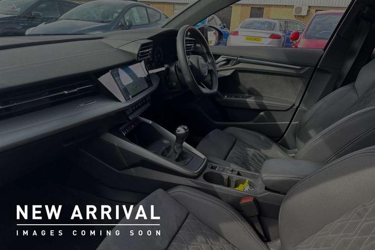 Audi connect emergency call and service, Audi drive select (Auto, Comfort, Dynamic, Efficiency and Individual), Audi smartphone interface, Audi virtual cockpit plus - 12.3" dynamic digital instrument cluster, Automatic start/stop system with recuperation, Bluetooth interface, Collision avoidance assistant, Cruise control + speed limiter, Electromechanical power speed sensitive steering, Lane departure warning system, MMI Navigation Plus with high resolution 10.1" colour touch screen display, Rear parking sensors, Service indicator, Voice control system with natural language interaction, Sports suspension, 2x USB Type C ports (for charging and data transfer), 6 passive loudspeakers, CD player, DAB Digital radio, 3rd brake light, Acoustic glass windscreen, Audi matrix LED headlights, LED rear lights, dynamic front and rear indicators and headlight cleaning system, Auto dimming frameless rear view mirror, Electrically adj heated/folding + automatically dimming exterior mirrors with memory + automatic kerb side function for passenger side exterior mirror, Front electric windows, Illuminated door sills with aluminium inserts at the front with S logo, Integrated LED indicators in door mirrors, LED daytime running lights, Light and rain sensors, Model and engine designation badges at rear, Privacy glass - dark tinted rear window, rear door and side windows, Rear boot, Rear electric windows, Rear side wing doors, S roof spoiler, 12V socket and storage compartment in front centre console, 3 seat bench in 2nd row, 3 spoke flat bottomed multifunction plus sports contour leather wrapped steering wheel, 4 way electrically adjustable lumbar support for driver and front passenger, 40/20/40 split folding rear seat bench with cupholder, Black cloth headlining, Dual zone electronic climate control, Electrically adjustable front seats with memory function for driver's side and exterior mirrors, Front and rear centre armrest in leather, Front and rear headrests, Front/rear floor mats, Heated front seats, Height and reach adjustable steering wheel, Illuminated vanity mirror, Interior lighting - glove compartment light and right hand side, Luggage compartment floor covering, Single front passenger seat, Stainless steel pedals and front footrest in black, Aluminium interior elements pack - A3, Dinamica microfibre/mono.pur 550 artificial leather pack - A3 Saloon, Extended ambient lighting pack - A3/S3 Saloon, LED interior lighting pack - A3 Saloon, 3x3 point rear seat belts, Driver and front passenger airbag with passenger airbag deactivation, Electronic Stabilisation Control (ESC) including ABS, ASR and EDL, First aid kit with warning triangle and 2 safety vests, Front side airbags with head airbags and interaction airbag, Hill hold assist, Pre-sense front with pedestrian and cyclist detection, Seatbelt monitoring, Tyre pressure loss indicator, Anti theft alarm, Anti-theft wheel bolts, Electronically operated child locks, Immobiliser, Remote control central locking, Aluminium air vent surrounds, Aluminium trim elements, Dark spectrum aluminium inlays, accent surfaces in the dashboard and centre console in platinum grey silk effect paint finish, 19" 5 arm trapezoid design alloy wheels in titanium matt grey with diamond cut finish,