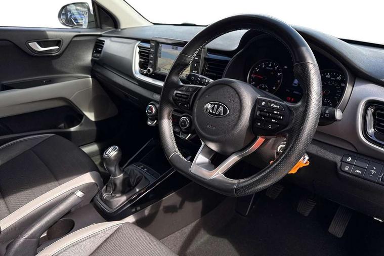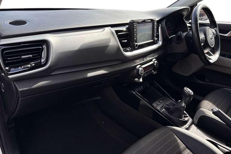 7" Touchscreen display with RDS and DAB and MP3 compatiblity, Apple car play/Android Auto, Bluetooth connectivity with voice control, Cruise control + speed limiter, Electric power steering, Emergency stop signalling system, Gear selection indicator, Instrument cluster- 3.5" Monochrome TFT Display, Kia connected services featuring TomTom live, Outside temperature display, Rear parking sensor, Reversing camera system with dynamic guidelines (Integrated into centre fascia screen), Trip computer, Windscreen washer level indicator, Intelligent Stop and Go, 'Shark fin' mobile antenna, 6 speakers, Bluetooth audio streaming, Rear USB port, Steering wheel mounted controls, USB and aux connection in front, Aero blade type windshield wipers, All round electric windows with drivers auto up/down function, Auto dimming rear view mirror, Automatic defog system, Automatic front rain sensing wipers, Automatic lighting control, Bi-function projection headlights with static bending, Black door garnish, Black side sills, Black wheel arch extensions, Black/body colour bumpers, Body colour door handles, Body colour door mirrors, Electric adjustable/heated/folding door mirrors with LED indicators lights, Follow me home headlights, Front skid plate - silver, Headlamp levelling, Heated rear window, High gloss black and satin radiator grille, High level brake light, LED daytime running lights, LED Indicators, LED rear combination lights, Matt black lower mirror housing, Projection front fog lights, Rear fog lights, Rear privacy glass, Rear skid plate - silver, Rear spoiler, Rear wash/wipe, Roof rails, Shark fin antenna, Speed sensitive front wipers, Visible VIN plate, Welcome home function, 12V power point front, 60/40 split/folding 2nd row of seats, Air filter, Automatic air conditioning, Centre console storage box/armrest, Centre console with cupholders, Cloth/faux leather upholstery, Dash illumination dimmer switch, Door pockets with bottle holder, Driver's seat height adjuster, Driver/passenger sunvisors and illuminated vanity mirrors, Front and centre cabin lights, Glovebox illumination, Height adjustable headrests, ISOFIX top tethers and lower anchor points, Leather trimmed gearshift, Luggage area lamp, Luggage area parcel shelf, Luggage net hooks, Overhead console lamp, Overhead console with sunglasses holder, Passenger front seatback pockets, Perforated leather trim D-cut steering wheel, Satin chrome interior door handles, Tilt/telescopic adjustable steering wheel, Advanced driver assistance pack - Stonic, 3 point front seat belts, 3x3 point rear seatbelts, ABS/EBD, Automatic unlocking of doors in case of impact, Dual curtain airbags, Dual front airbags, Dual front side airbags, ESC + BAS + VSM + HAC, Front seatbelt pretensioners + load limiters, Height adjustable front seatbelts, Passenger airbag deactivate switch, Seatbelt warning, Traction control, Tyre pressure monitoring system, Anti theft alarm, Deadlocking system, Engine immobiliser, Folding key, Locking wheel nuts, Remote central door locking, Speed sensitive auto door locking, High gloss black centre fascia, 17" alloy wheels, Tyre mobility system,
