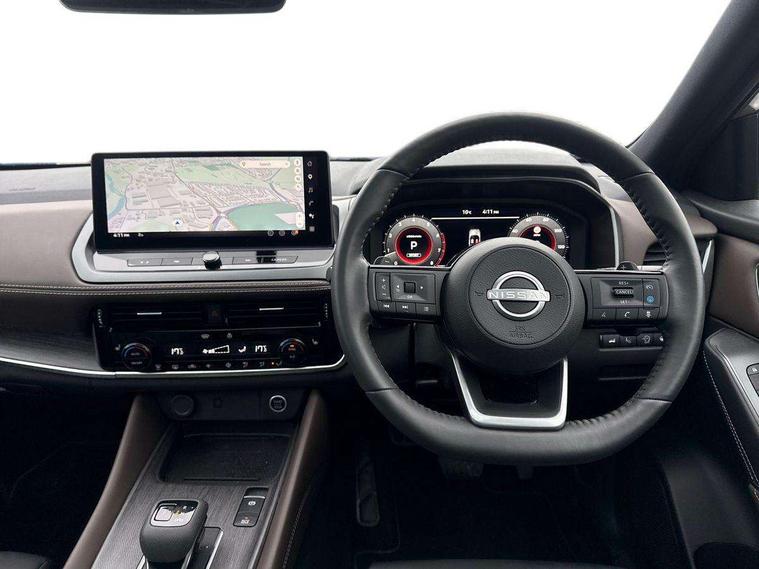 360 degree Intelligent around view monitor with moving object detection, Advanced windscreen head up display, Blind spot intervention, Blind spot warning, Drive assist custom mode, Drive modes (sport, normal, eco), Driver drowsiness and attention warning, Electric speed sensitive power steering, Emergency and breakdown call, Emergency lane keep assist, Emergency Stop Signal (ESS), Engine start/stop button, Event data recorder, Front and rear parking sensors, Full Digital 12.3" TFT Digital Combimeter, Google virtual personal assistance, Hands free power tailgate, Idle stop/start system, In-car WIFI hotspot, Intelligent Cruise control (ICC), Intelligent forward collision warning, Intelligent speed assist, Lane departure warning system, Nissan connect 12.3 inch touchscreen infotainment system, Nissan connect navigation with google maps, Nissan connect services 2.0 (Google Automotive System), Outside temperature sensor, Rear cross traffic alert, Reversing detection, Traffic jam pilot, Wireless Apple CarPlay/Android Auto, Wireless charging pad, Limited slip differential, 2 front USB-C ports, 2 rear USB-C ports, 6 speakers, AM/FM audio system with DAB, Bluetooth audio streaming, Auto dimming frameless rear view mirror, Auto rear wiper when reversing, Body colour mirror caps, Body coloured door handles, Bodyside mouldings, Chrome side window finisher, Electric auto folding door mirrors, Electrically adjustable and heated door mirrors with LED turn indicator, Follow me home headlights, Glossy black bumper inserts and fenders, High beam assist, Intelligent auto headlights, LED 3rd brake light, LED daytime running lights, LED headlights with adaptive driving beam, LED rear lights, LED sequential turn lights, One touch front and rear electric windows with remote opening and closing, One touch passenger window, Partially body coloured bumpers, Rear privacy glass, Rear roof spoiler, Rear side wing doors, Rear styling plate, Reverse tilting door mirrors, Shark fin antenna, Silver roof rails, Splash free rain sensing wipers, Super RED rear LED lights, Super UV and infrared cut glass, Thermaclear heated windscreen, 3 bench rear seats in 2nd row, 3 rear headrests, 60/40 split folding rear seat bench, Chrome interior door handles, Dark headlining, Driver seat back pocket, Dual zone automatic climate control with pollen filter, Fixed Glass roof with electric sunshade, Front door with bottle holders, Heated front seats, Heated steering wheel, Height adjustable front headrests, Luggage board system, Luggage space lighting, Multifunction steering wheel, Passenger seat back pocket, Quilted/PVC upholstery, Rear door bottle holders, RGB ambient light (Full area coverage), Single front passenger seat, Smooth leather steering wheel, Steering wheel gearshift paddles, Tilt/telescopic adjustable steering wheel, Two rear isofix child seat anchorage points with top tether, 3x3 point rear seatbelt pretensioners + load limiters, Autonomous emergency braking, Child locks on rear doors, Curtain and front side, far side airbags, Driver and passenger airbags, Driver, passenger and 2nd row rear seat belt reminder, Electric handbrake with auto hold function, Front seatbelt pretensioners + load limiters, Height adjustable front seatbelts, Hill start assist, intelligent front emergency braking, Rear automatic braking, Tyre pressure monitoring system, Vehicle dynamic control, Engine immobiliser, Intelligent key with walk away lock and approach unlock functions, Remote central door locking with deadlocking, Thatcham alarm, 19" Diamond cut alloy wheels, Tyre puncture repair kit,