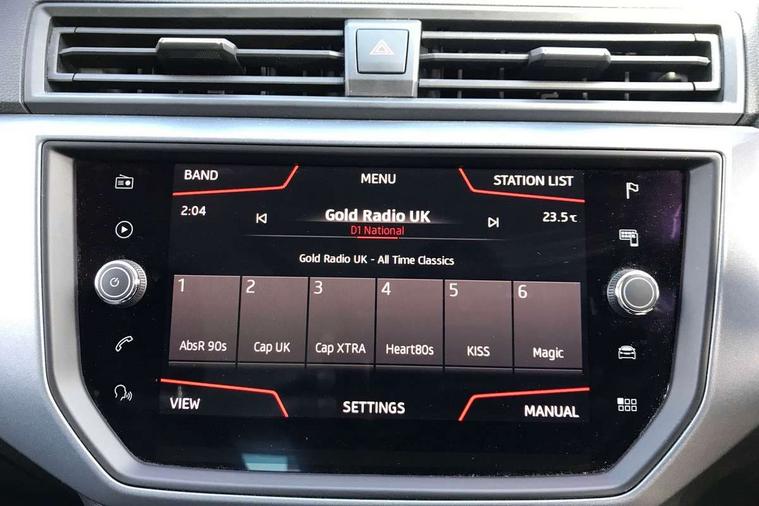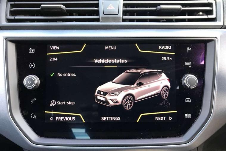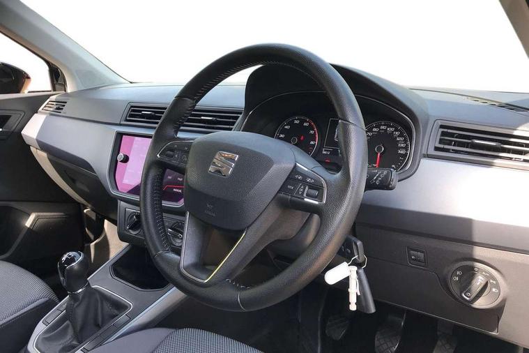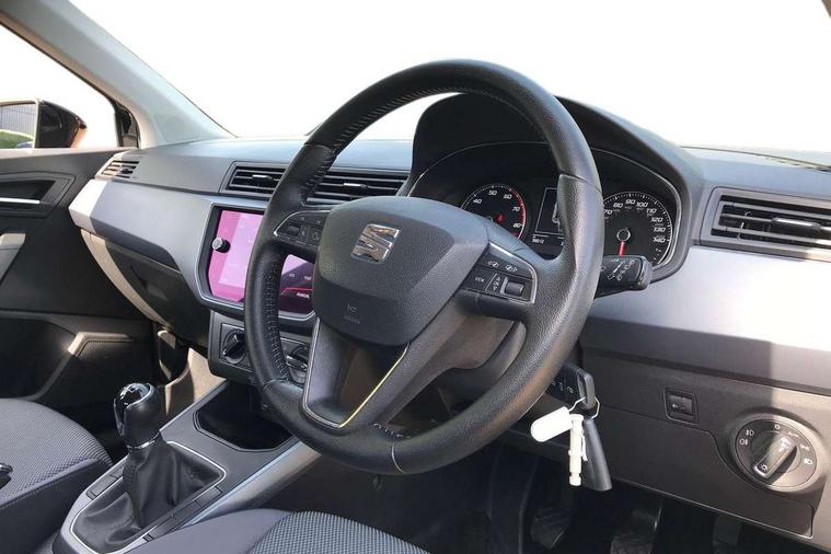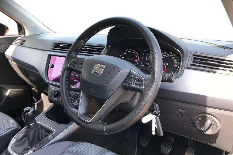 'Lights On' Reminder warning buzzer, Cruise control, Electric speed sensitive power steering, Front assistant collision mitigation, Outside temperature display, Rear parking sensor, Trip computer, Comfort suspension, 6 speakers, Bluetooth interface for hands free and audio streaming, DAB Digital radio, Steering wheel mounted audio controls, Automatic activation of hazard warning lights, Automatic headlights, Black roof rails, Black window surrounds, Body coloured bumpers, Body coloured door handle inserts, Chrome grille surround, Electric adjustable door mirrors, Electric front/rear windows with one touch/auto up/down, Electric headlight adjustment, Front fog lights with static cornering function, LED daytime running lights, Rear window wash/wipe, 2 cupholders, 3 rear height adjustable headrests, 60/40 split folding rear seat, Air conditioning, Ambient interior lighting, Cloth upholstery, Double boot floor, Driver and passenger sunvisors, Driver/front passenger seat height adjustment, Dust/pollen filter, Footwell ambient lighting, Front courtesy lights, Front reading light, Height/reach adjustable steering column, Illuminated boot, Isofix attachments on outer rear seats, Leather handbrake, Leather steering wheel and gear knob, Connectivity pack plus - Arona, 3 point seatbelts on all rear seats, ABS+EBA, Child locks on rear doors, Driver/Front Passenger airbags, Electronic stability control, Front and rear seatbelt reminder, Front side/curtain airbags, Height adjustable active front headrests, Hill hold control + Tyre Pressure monitor, Multi-Collision braking, Passenger airbag deactivate switch, Tiredness recognition system, Traction control, 2 folding remote keys with window open/close function, Immobiliser, Locking wheel bolts, Remote central locking + deadlocks, Interior chrome line trim, 17" Dynamic alloy wheels,