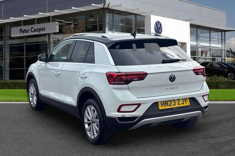 10.25" Digital cockpit pro, Bluetooth mobile phone interface, Driver alert system with fatigue detection, Driver tips and journey analysis, Emergency call service, Lane keeping system Lane Assist, Modified key software - reduce switch off time for key status change to Long no motion, Online services, Park assist including front and rear parking sensors, Service interval indicator, Tailgate/trunk lid release from outside, Think blue trainer driver tips and journey analysis, Warning sound and light for front seatbelts unfastened, Wireless app connect, Battery regeneration during braking, Start/stop function with battery regeneration, Diversity antenna for FM reception, Front and rear 6 speakers, Music playback - MP3, WMA and AAC files, Premium USB cable in choice of either Apple or Android smartphone compatibility, SD card slot, Simultaneous pairing of 2 compatible mobile devices, Title and cover art display, We Connect and We Connect Plus functionality, 3rd brake light, Auto dimming interior rear view mirror, Automatic hazard lights activation under emergency braking, Automatic headlight control with LED separate daytime running lights with coming/leaving home function, Body colour sports bumpers with silver metallic underbody fascia, Dynamic headlight range control with self adjusting whilst driving, Extended roof spoiler, Exterior mirrors aspherical on driver side, convex on front passenger side, External USB type C socket and charging sockets, Front windscreen wiper with intermittent wipe and 4 position delay, Heated rear window, LED Plus headlamps, LED rear combination lamps, LED rear number plate lights, LED tail lamp rear comination lamps, Light mode for poor weather, rain, fog or snow, Power windows with comfort operation and circuit breaker, Rain sensor, Rear exhaust tailpipe, Rear fog light on one side and reversing lights on both sides, Rear side wing doors, Rear wash/wipe with intermittent wipe setting, Remote electrically foldable door mirrors, puddle lights and reverse activated passenger's door mirror, 12V power socket in centre console, 3 rear head restraints, 3 seat bench in 2nd row, 4 load lashing points in luggage compartment, Air care climatronic air conditoning system with active combination filter and 2-zone temperature control, Chrome plated radiator grille inserts, air vent surrounds and light switch surrounds, Door and side trim panel with leatherette insert, Drawer under drivers seat, Front + rear carpet mats, Front centre armrest, Front comfort sports seats, Front cupholders x 2, Front footwell illumination, Instrument lighting, white adjustable panel illumination, Interior ambient lighting and surround lighting, Interior light delay, Isofix child seat preparation, Leather gearshift handle, LED interior light with switch off delay/dimmer and 2 front/rear LED reading lights, Load-through provision with cup holder when folded down ('Unsplit rear seat bench, split folding backrest, with centre armrest), Luggage compartment lighting, Non-folding front passenger seat backrest, Single front passenger seat, Storage compartment in left and right luggage area, Storage compartment in rear doors, Storage compartments in driver and front passenger doors, Sunvisors with illuminated vanity mirrors, Variable boot floor, height adjustable and removable, Driver assistance pack without proactive passenger protection - T-Roc, 3 point height adj front seatbelts + pretensioners, 3 point seatbelts in outer rear with ECE label, ABS, Child locks on rear doors, Driver and front passenger airbag with front passenger airbag deactivation, Driver and front passenger safety-optimised head restraints, Drivers seatbelt reminder, Electronic parking brake, Electronic Stability Control (ESC) inc EDL (Electronic Differential Lock) and ASR (Traction Control), Front and rear passengers curtain airbag system including front side airbags, Front assist with city emergency braking and pedestrian monitoring, Front seat side impact airbags, Predictive pedestrian protection, Rear disc brakes, Single tone horn, Tyre pressure loss indicator, Volkswagen roadside assistance, Alarm with interior protection, Anti-theft alarm system with interior monitoring, backup horn, and towing protection, Remote central locking with SAFELOCK, radio remote control with 2 remote control folding keys, Trims for alloy wheels,