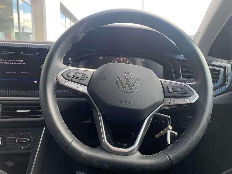 Adaptive cruise control with follow-to-stop and speed limiter, Bluetooth mobile phone interface, Driver alert system, Emergency call service, Front assist system, Power assisted speed sensitive steering, Preparation for We connect and We connect plus, Speedo and rev counter, electronic odometer, trip, service interval display and fuel gauge, Standard rear axle, Travel Assist - Lane keeping system and traffic jam assist, Travel assist including emergency assist, Trip computer, Warning signal and warning light for front and rear seatbelts not fastened, Washer fluid level indicator, Wireless app connect, Front wheel drive, Rear shock absorpion, Start-stop system with battery regeneration (recuperation - energy recovery during braking), DAB Digital radio, Diversity antenna for FM reception, Front and rear 6 speakers, Automatic dimming interior rear view mirror, Body colour bumpers, Body colour door handles, Body colour door mirrors, Electric front windows, Heat insulating darkened glass in side and rear windows, Heat insulating glass windscreen, Power folding adjustable/heated exterior mirrors and front passenger exterior mirror lowering function, Rain sensor, Rear electric windows, Rear fog light, Rear side wing doors, Rear windscreen washer and wiper with interval delay, Third brake light, 12V power socket in centre console, 2 front and 2 rear reading lights, 2 USB-C ports in the front, 2 USB-C charging sockets on the center console in the rear, 3 rear head restraints, 60/40 split folding rear seat and rear seat bench not split, Chrome plated radiator grille inserts, air vent surrounds and light switch surrounds, Door and side trim panel, Driver and front passenger seat height adjustment, Driver/passenger sunvisors with illuminated vanity mirrors, Front centre armrest, Front seat backrest storage pockets, Front standard seats, Handbrake lever handle in leather, Hartley/Thomas cloth upholstery, Headliner in recycled material, Isofix child seat preparation easy-fit (for two outer rear seats, and front passenger seat) compatible with I-size, Leather trimmed gear knob, Luggage compartment cover, Luggage compartment floor, Luggage compartment lighting, Single front passenger seat, Standard pedal cluster, Three spoke leather wrapped multifunction steering wheel with shifting paddles, Light and vision pack - Polo, 3 point height adj front seatbelts + pretensioners, 3x3 point rear seatbelts, ABS, Driver and front passenger airbag with front passenger airbag deactivation, Drivers and front passengers safety optimised head restraints, ESC (Electronic stability control) + EDL (Electronic Differntial lock) and ASR (Traction control), Extended and predictive pedestrian/ cyclist protection, Front curtain and side airbags with center airbag, Front disc brakes, Hill hold control, Manual child lock in rear doors, Rear drum brakes, Single tone horn, Tyre pressure loss indicator, Alarm with interior protection, Anti-theft alarm system with interior monitoring, backup horn, and towing protection, Anti-theft wheel bolts, Electronic engine immobiliser, Lava stone black gloss/matt decorative inserts in dash and front door panels, Low rolling resistance tyres,
